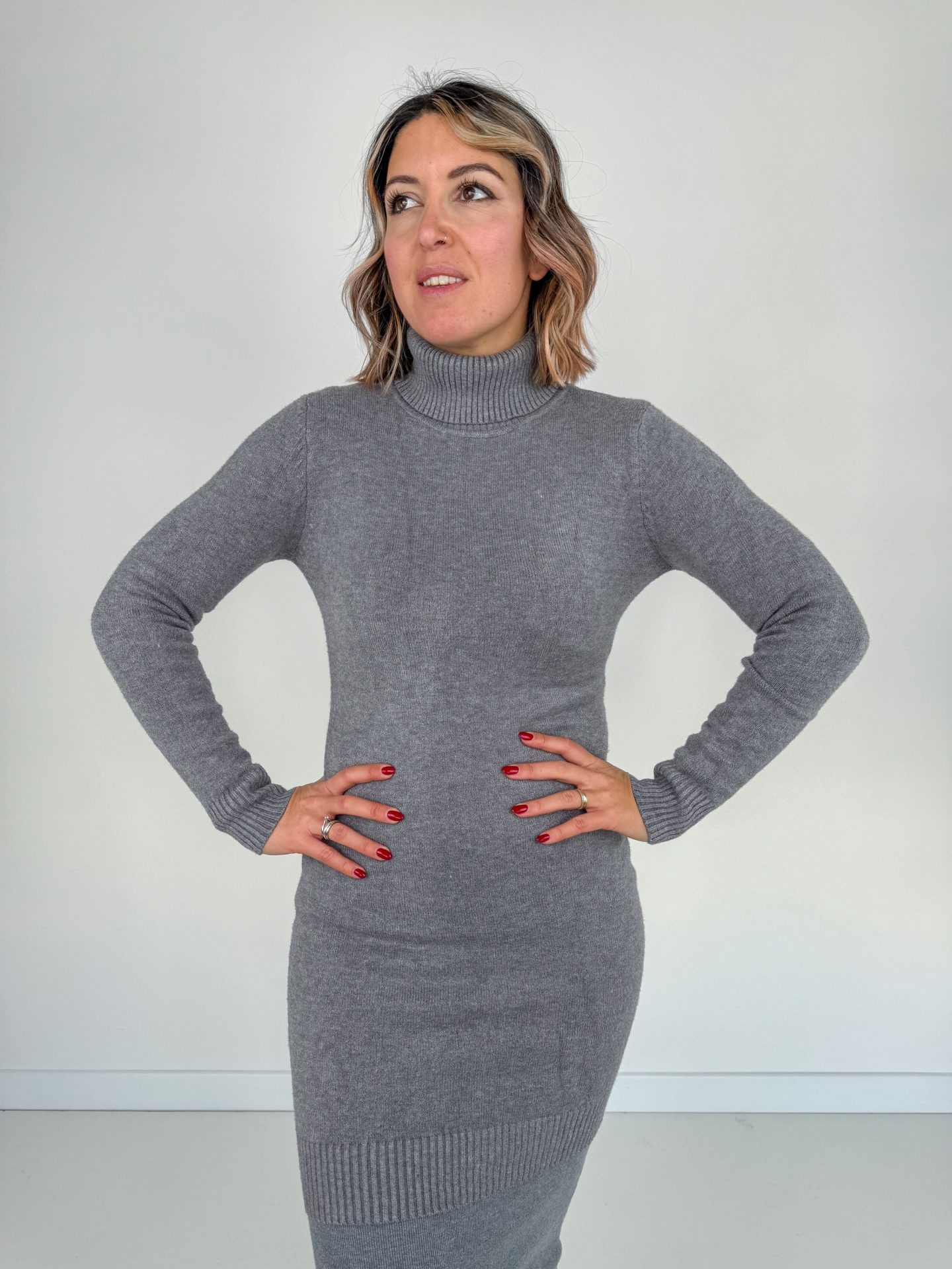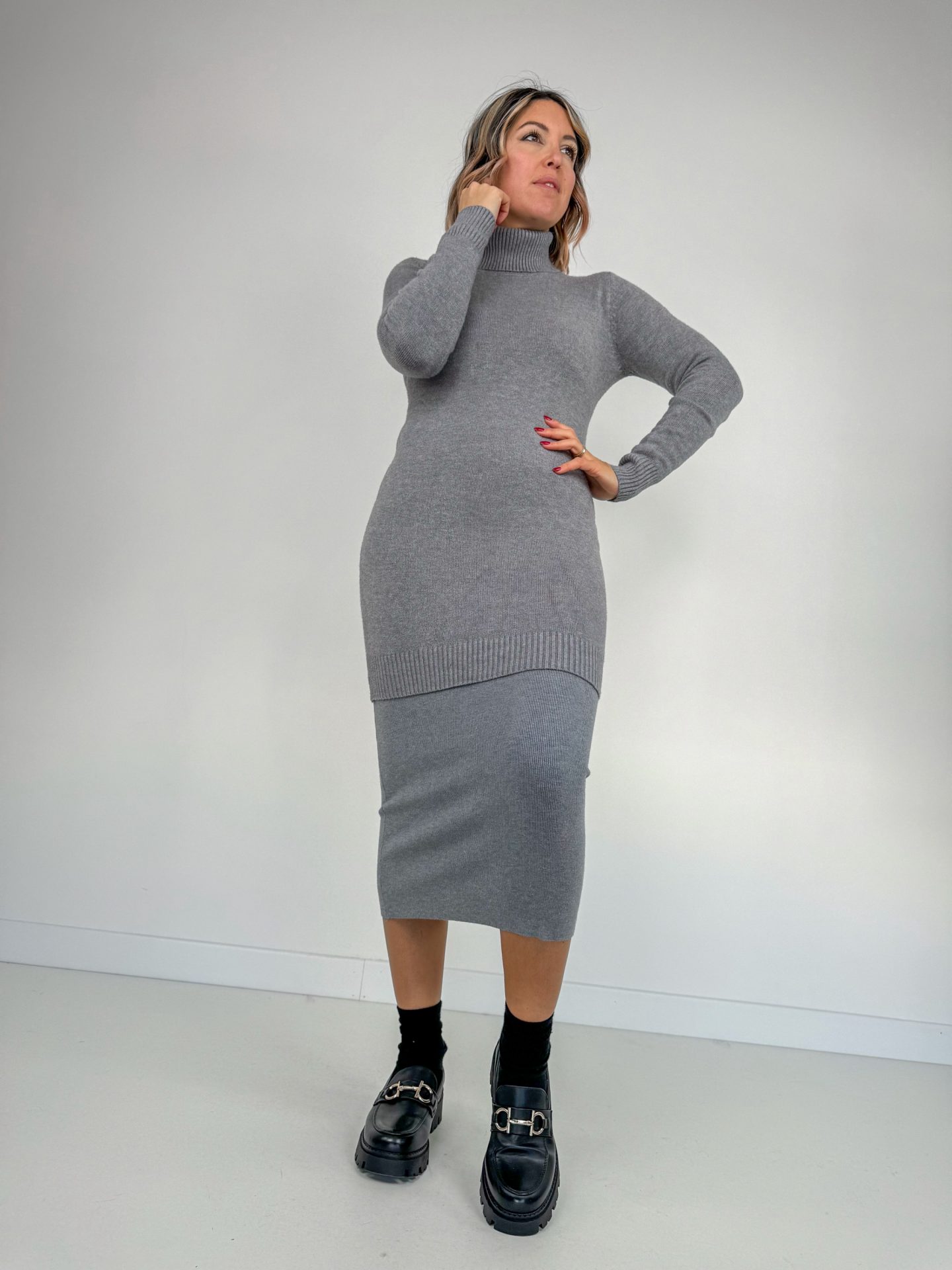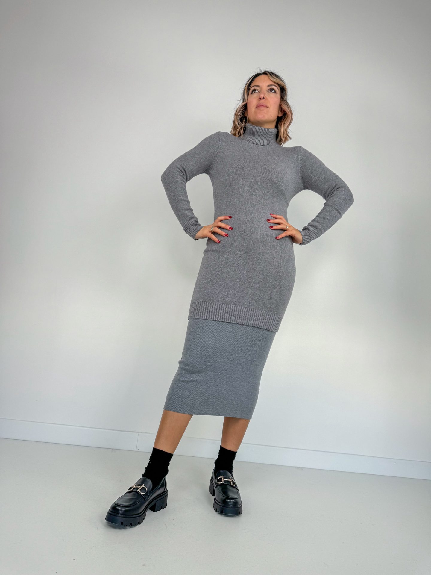 • Abito collo alto in calda viscosa.