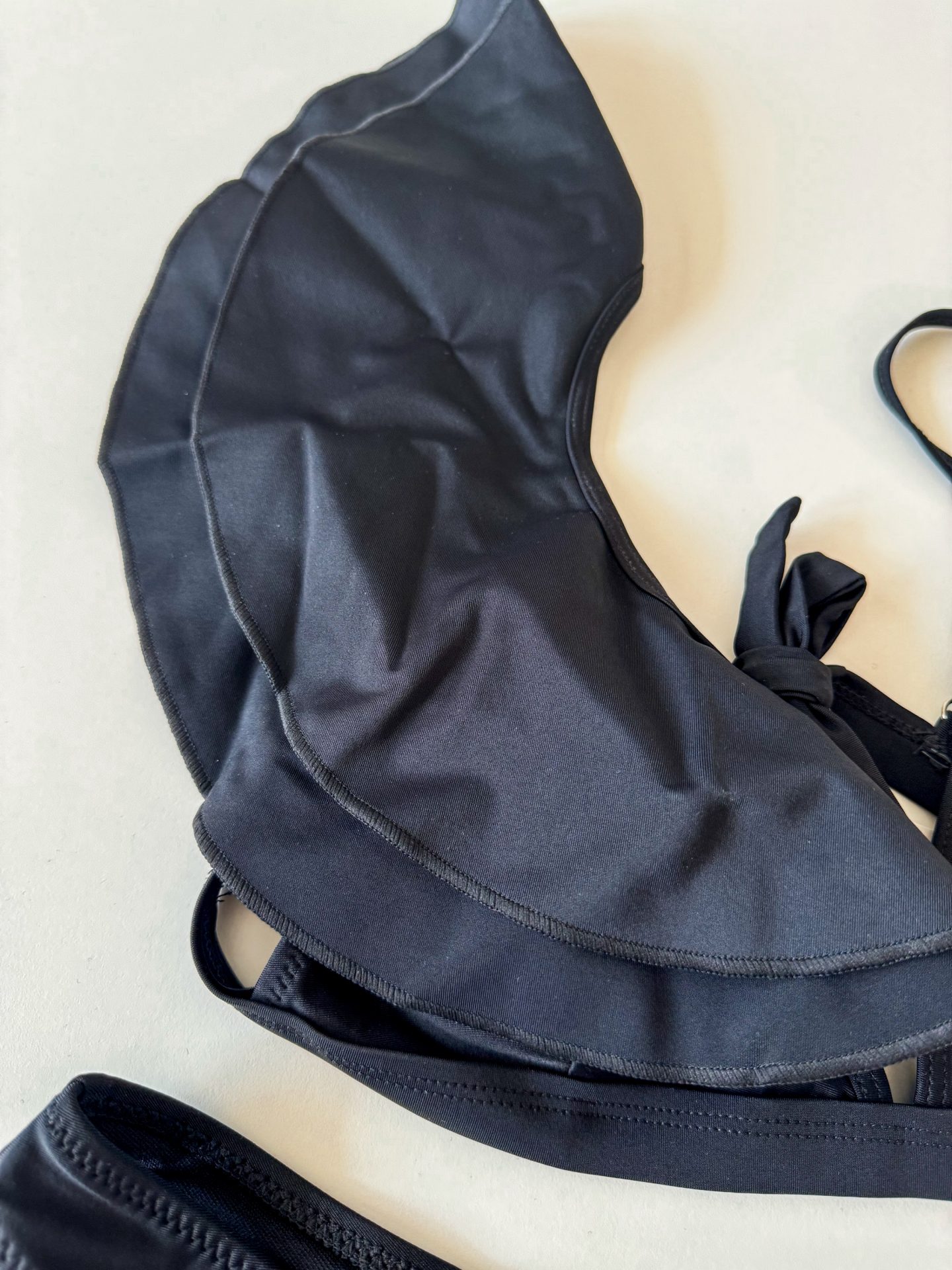 - Regiseno con bretelle regolabili e chiusura con laccio.