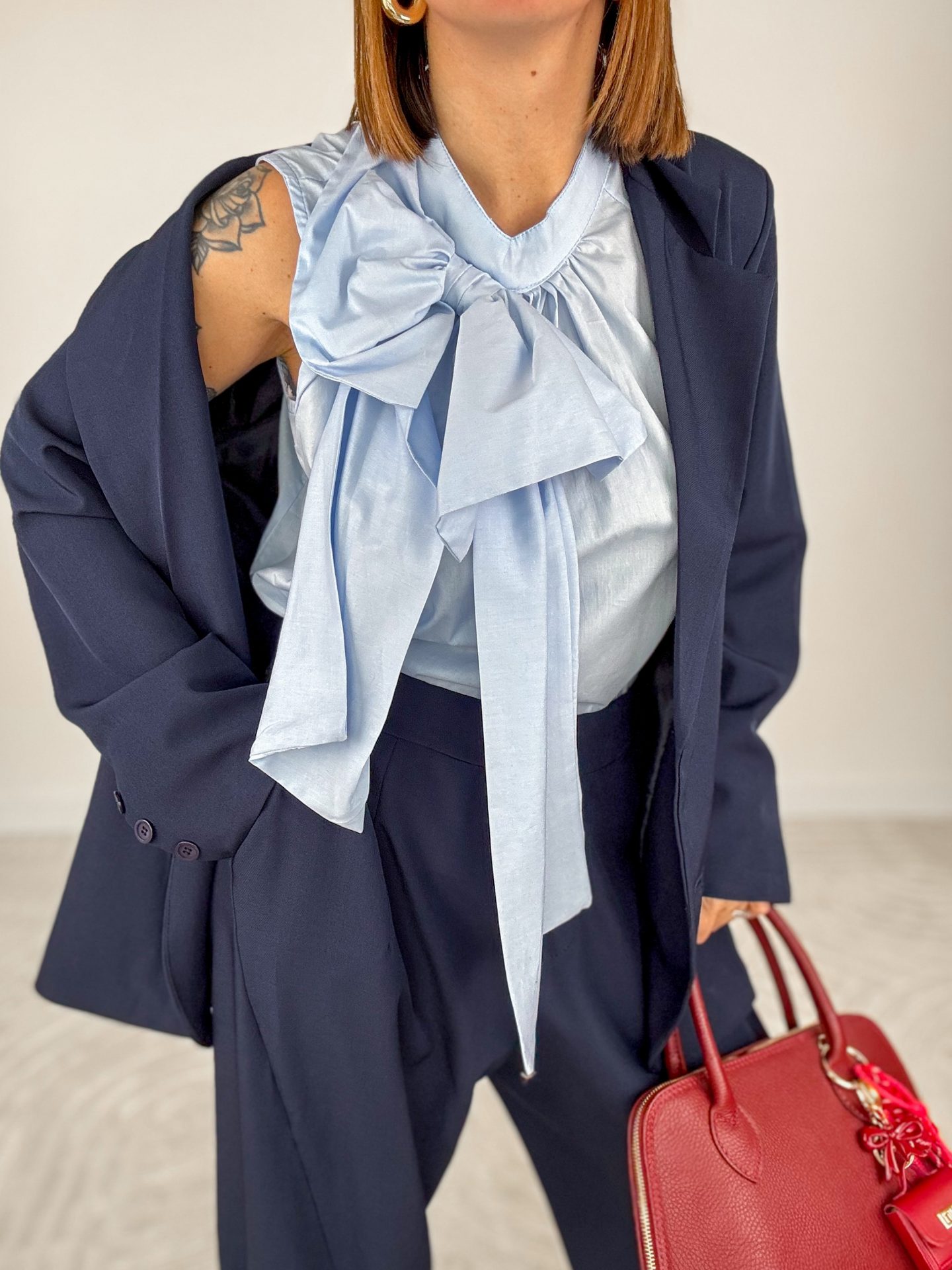 Abbinalo al Panta Patrizia, un modello dal taglio ovetto che esalta la figura. Per completare l’outfit, aggiungi il Blazer Patrizia, che dona un tocco moderno e vestibilità versatile. Perfetto per creare un look dinamico. E con il Panta Patrizia puoi creare un “completo non completo”.
