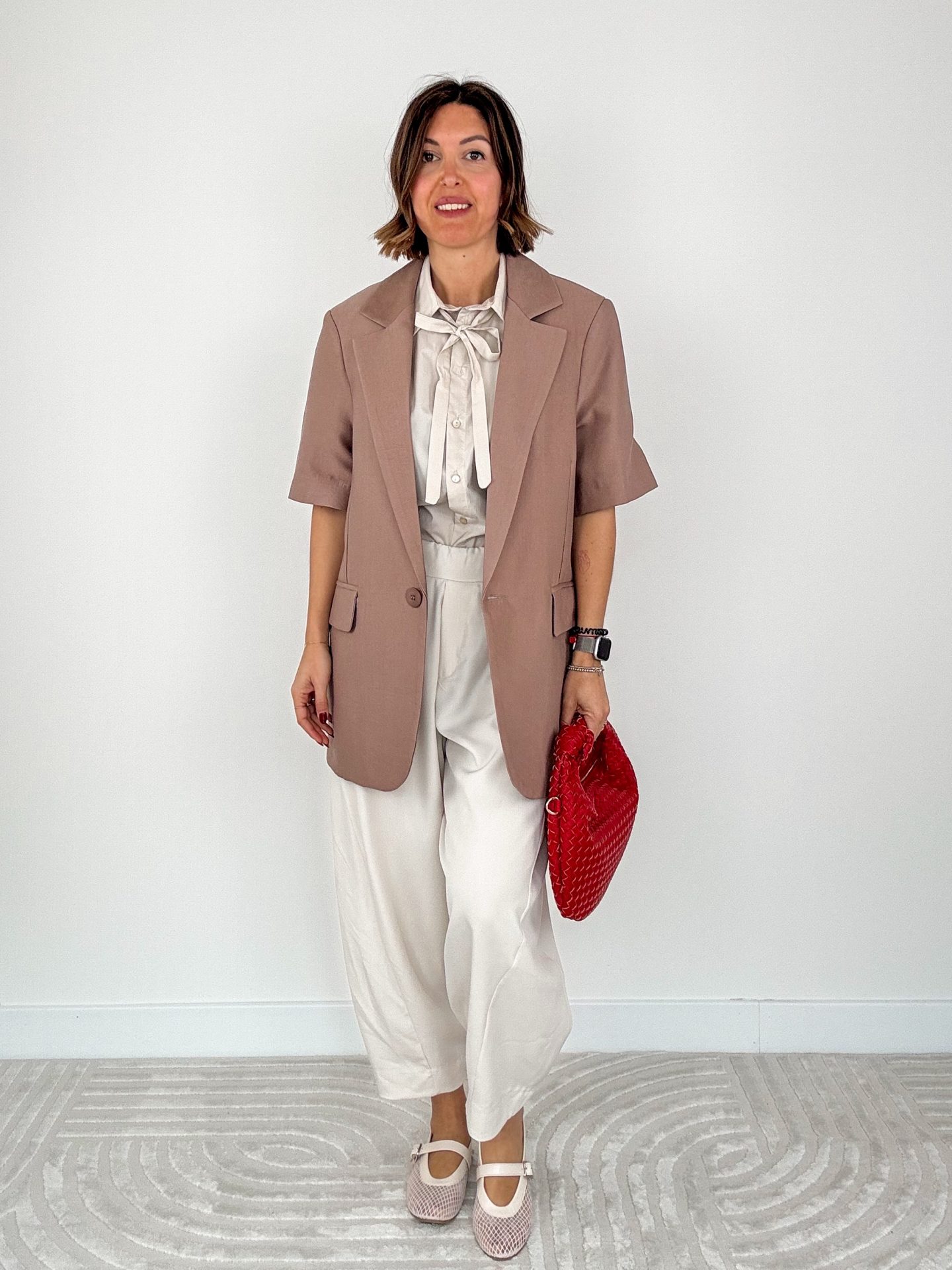 Un look che sa essere chic senza prendersi troppo sul serio! La Camicia College con il suo fiocco flirta con il Panta Patrizia color burro, comodo ma sofisticato. Il Blazer Sicilia in tortora regala quel tocco di eleganza rilassata, mentre la Ballerina Mesh chiude il cerchio con stile retrò e comfort.