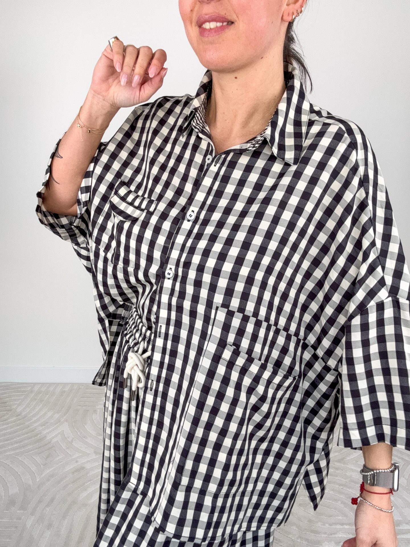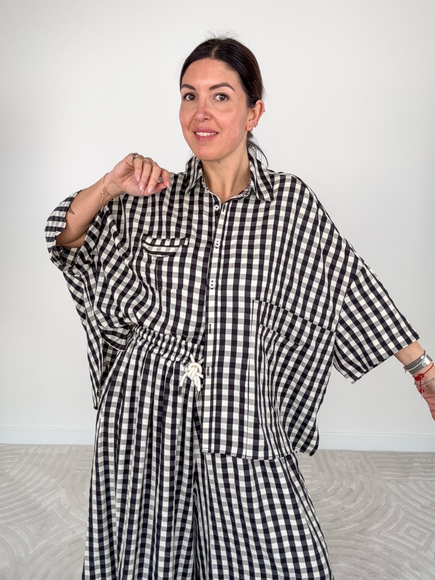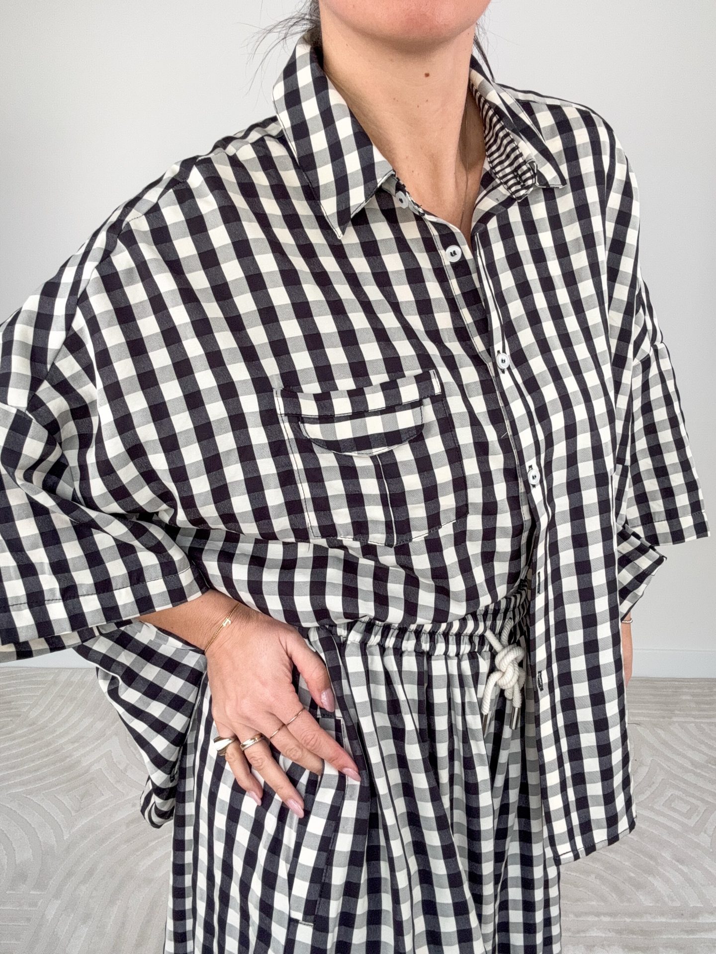 - Maxi camicia stampa Vichy manica corta.