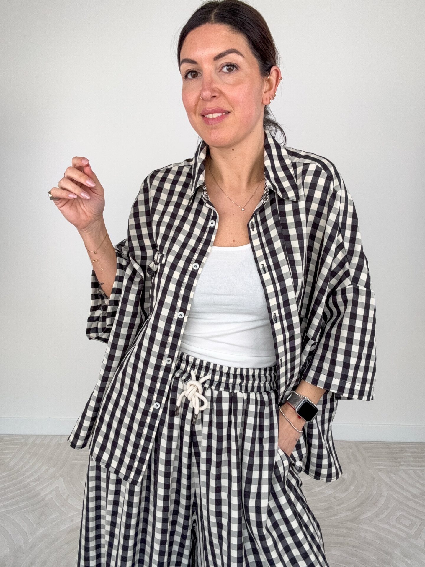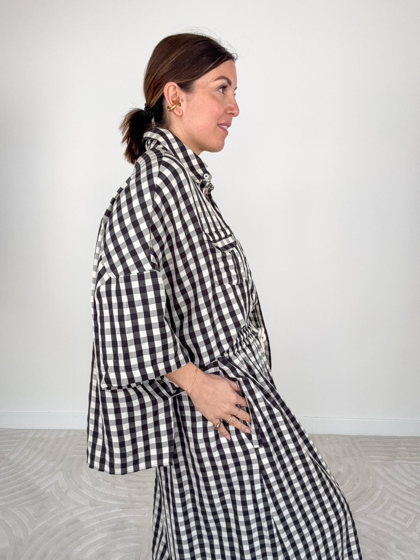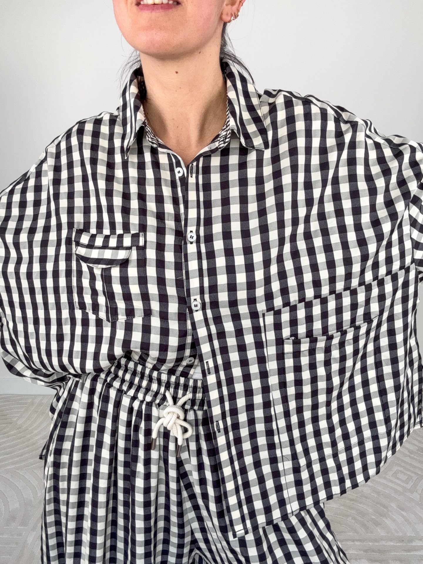 - Maxi camicia stampa Vichy manica corta.