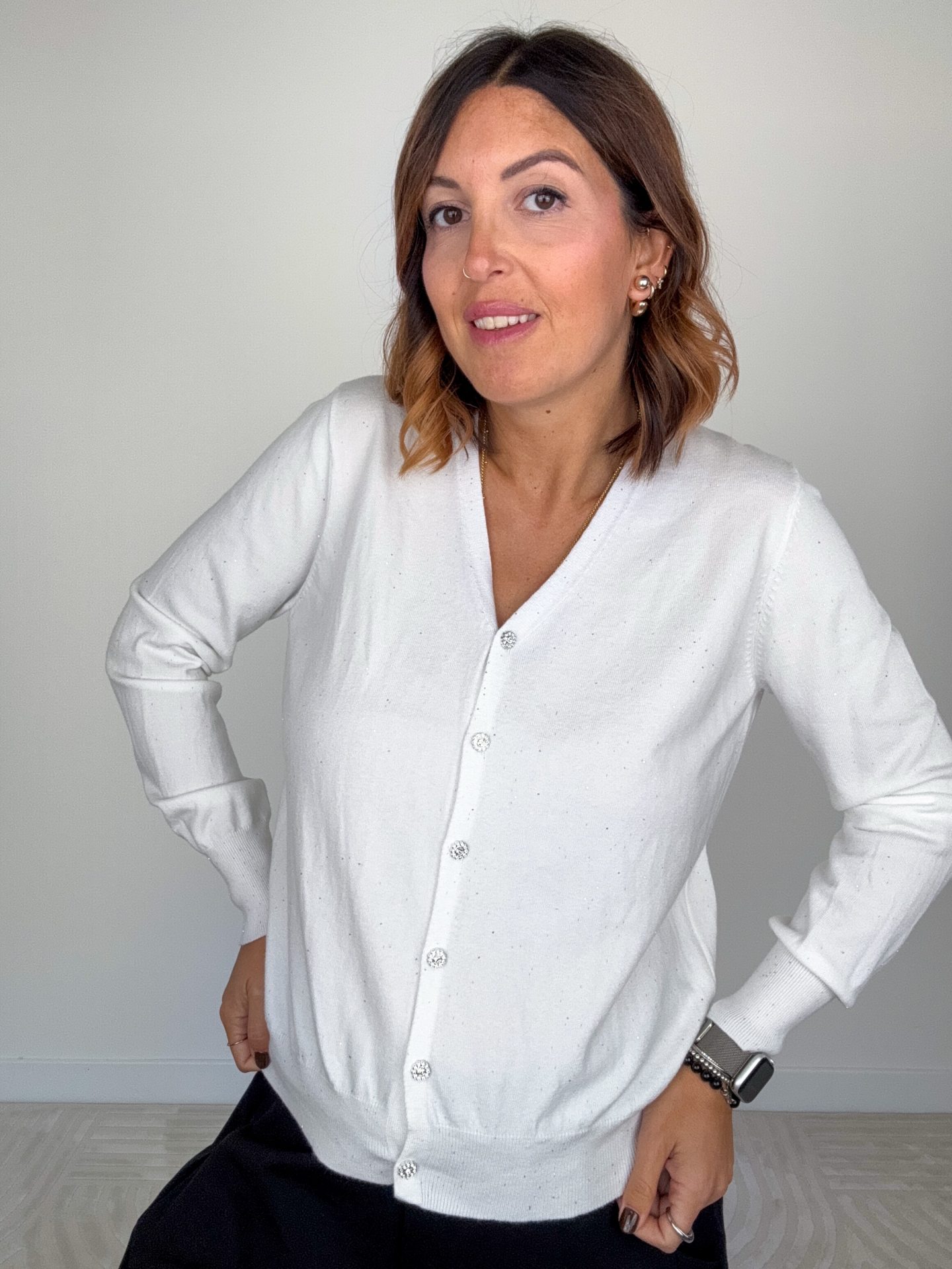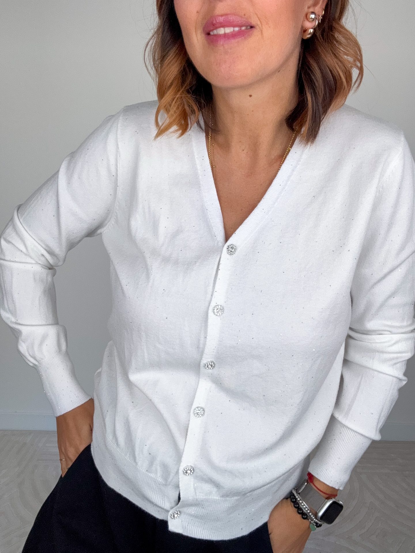 Cardigan Lurex Bianco