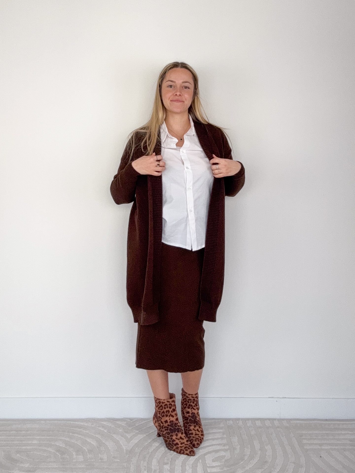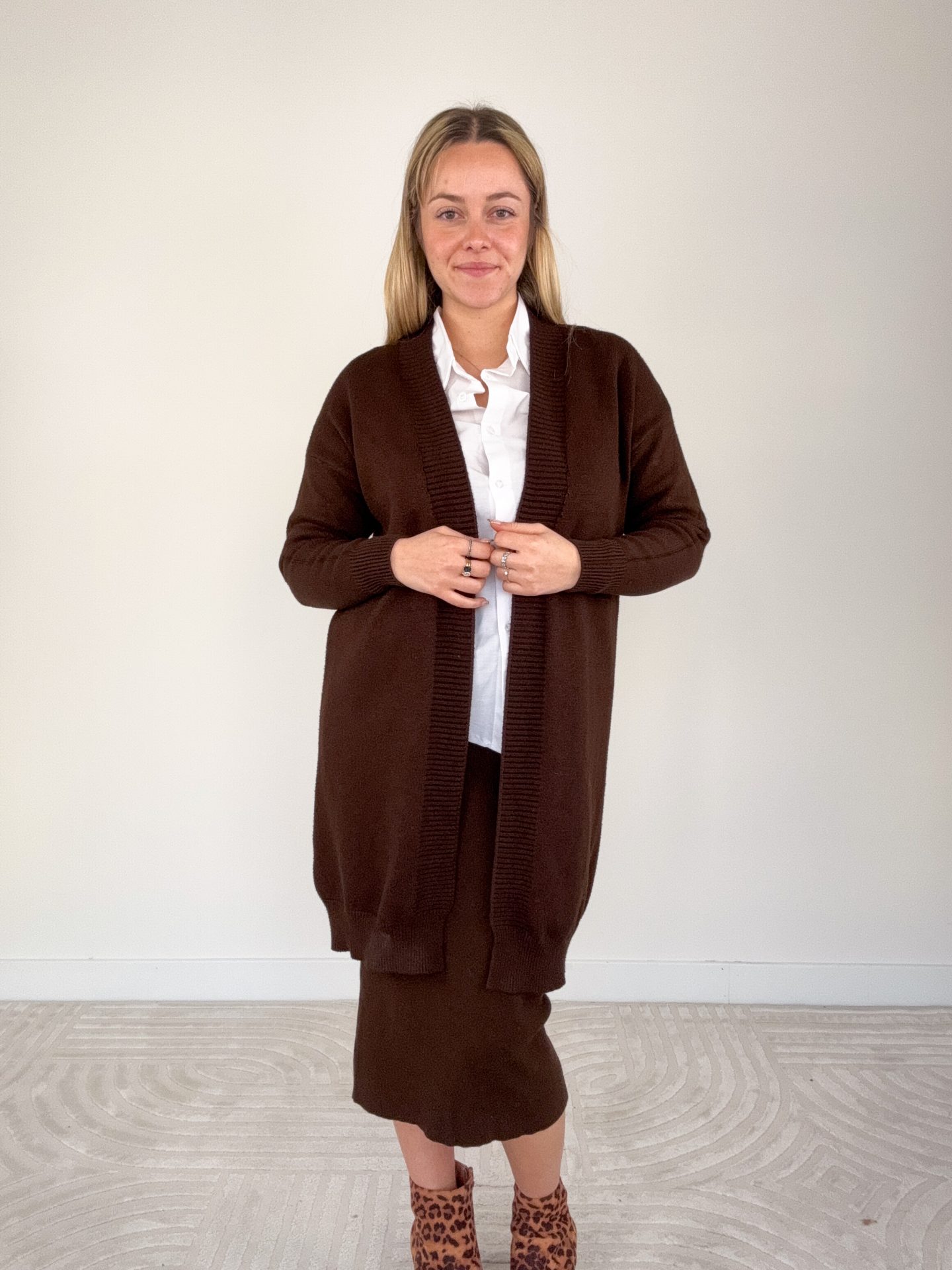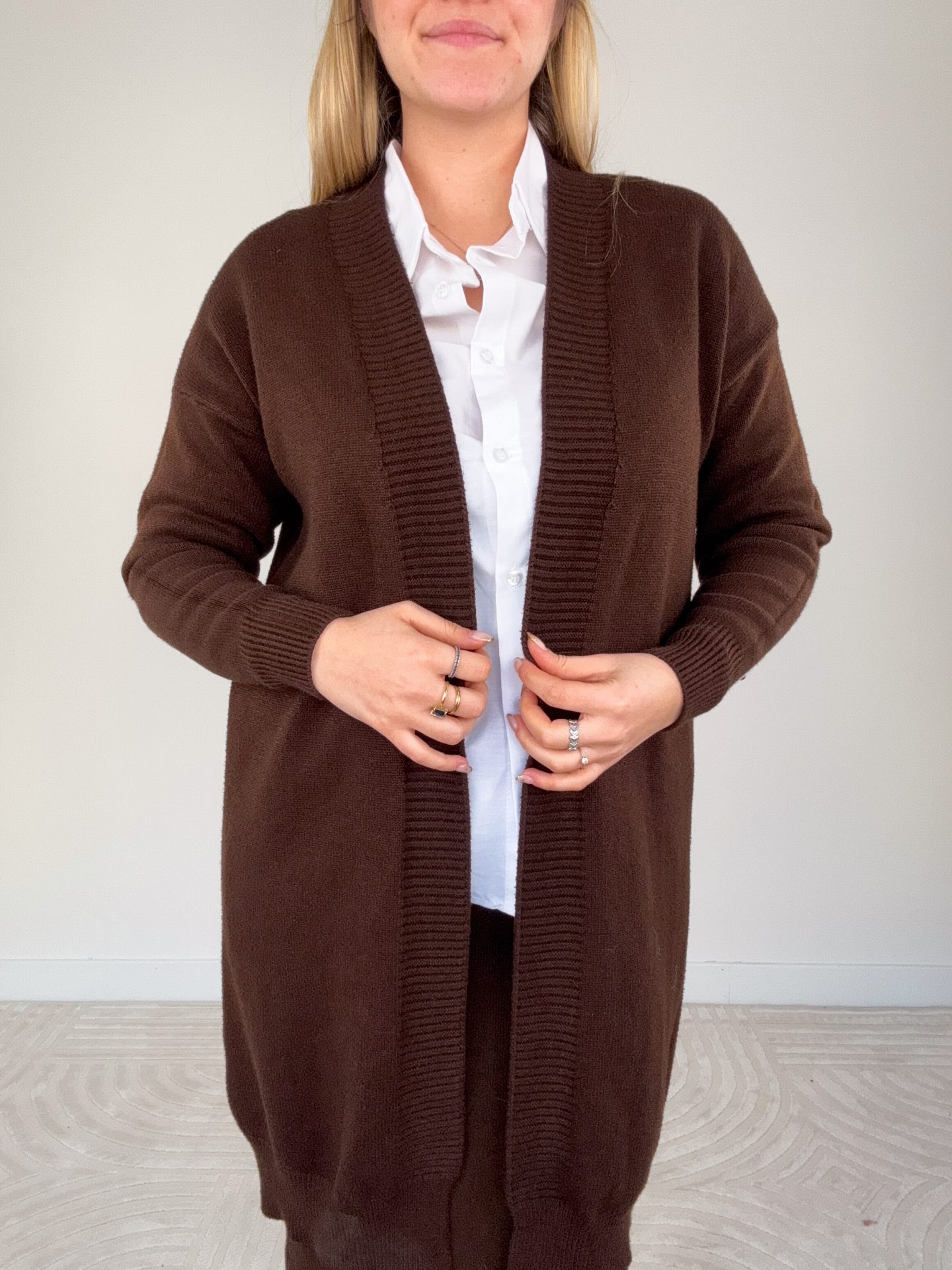 - Cardigan lungo aperto con bordo a coste.