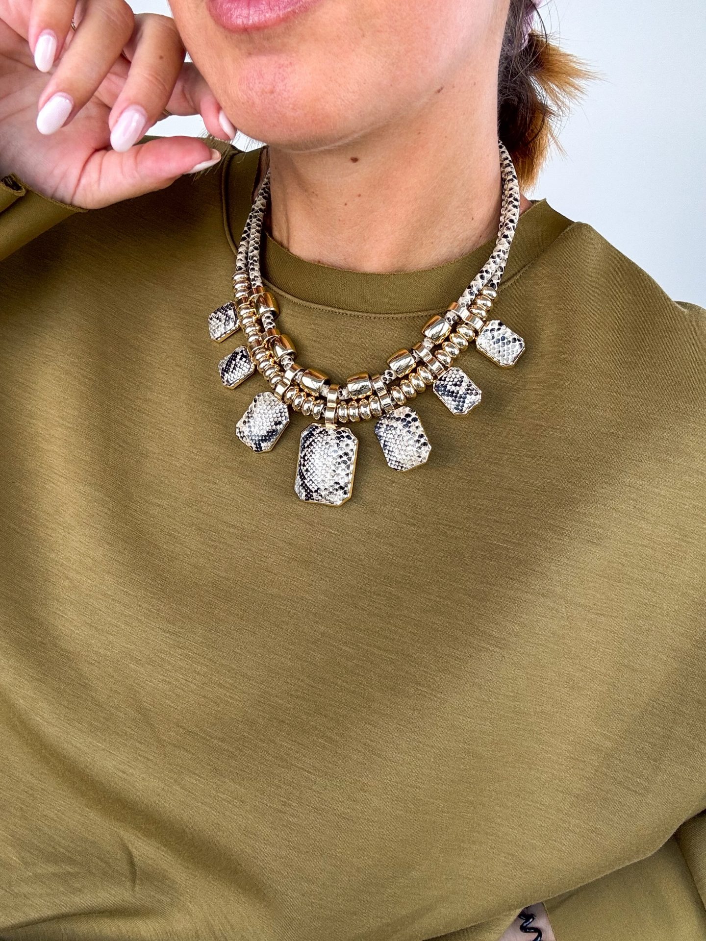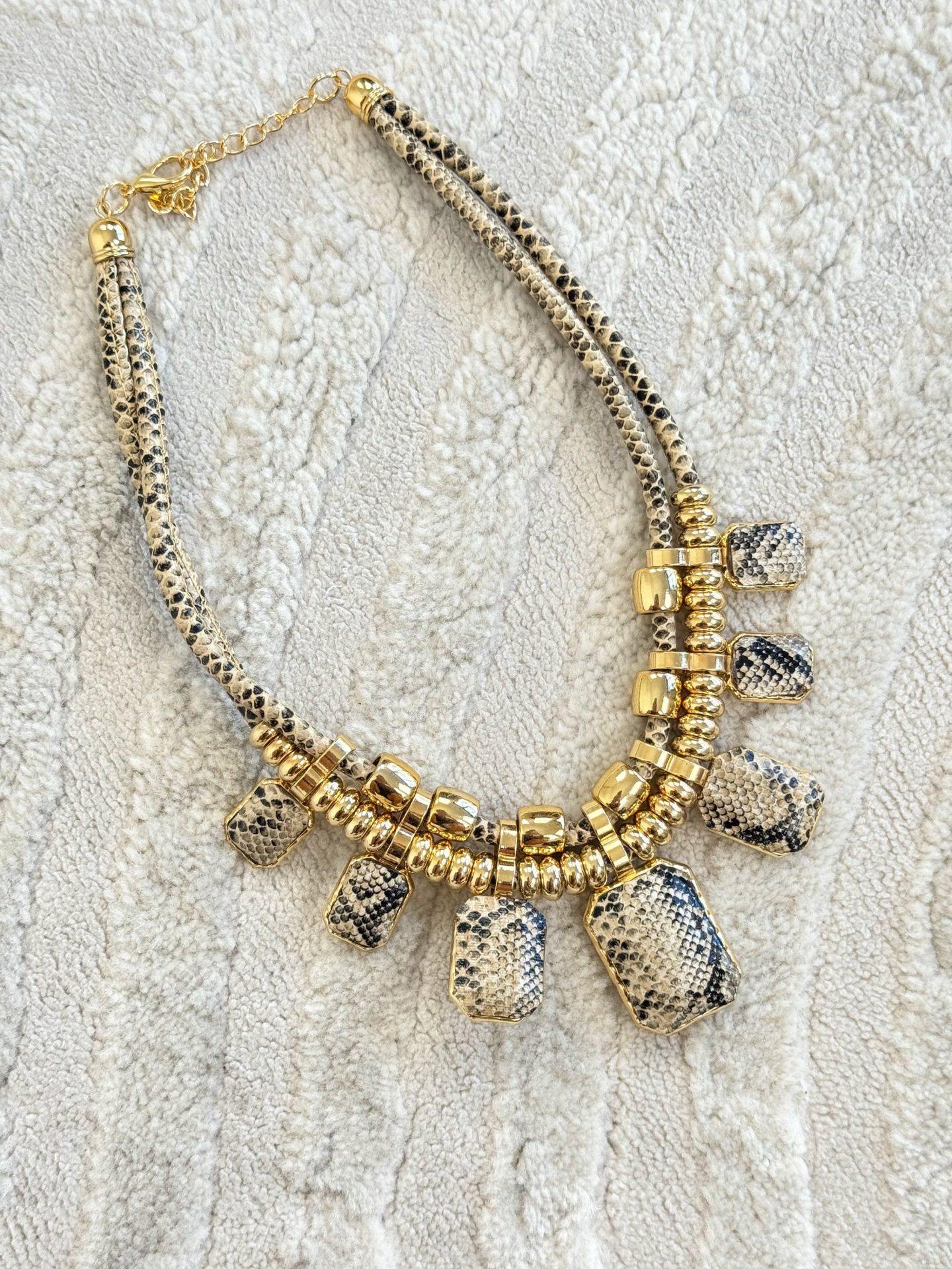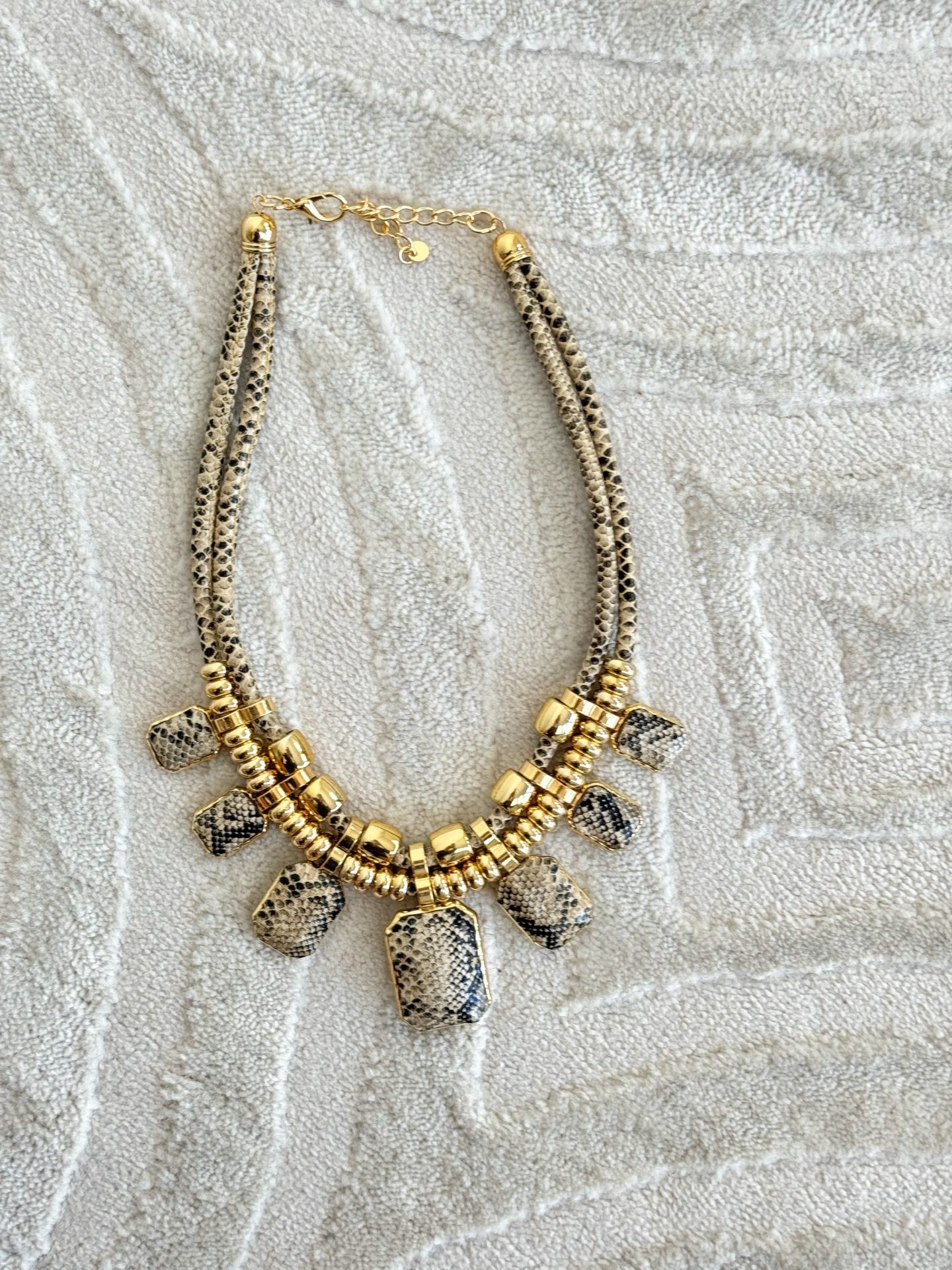 - Collana con ciondoli in metallo ed effetto pitone.