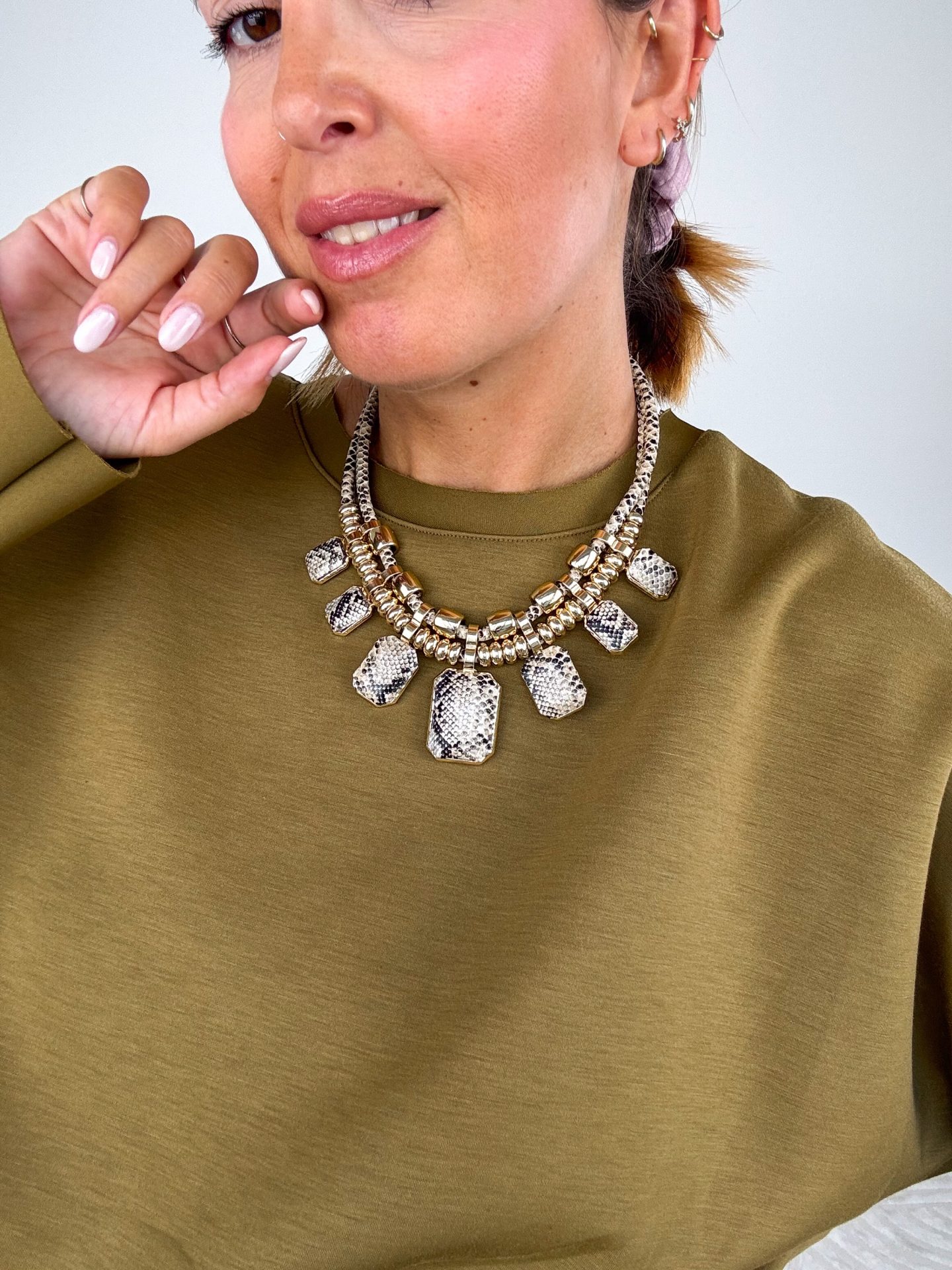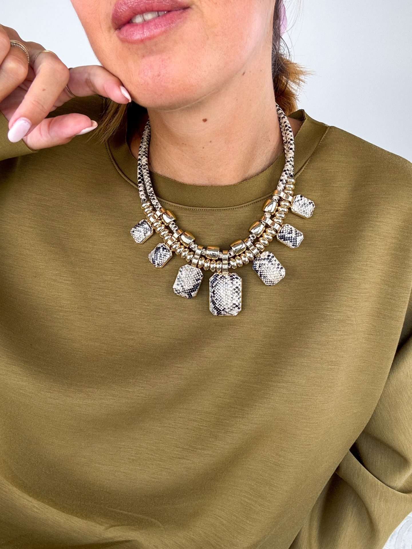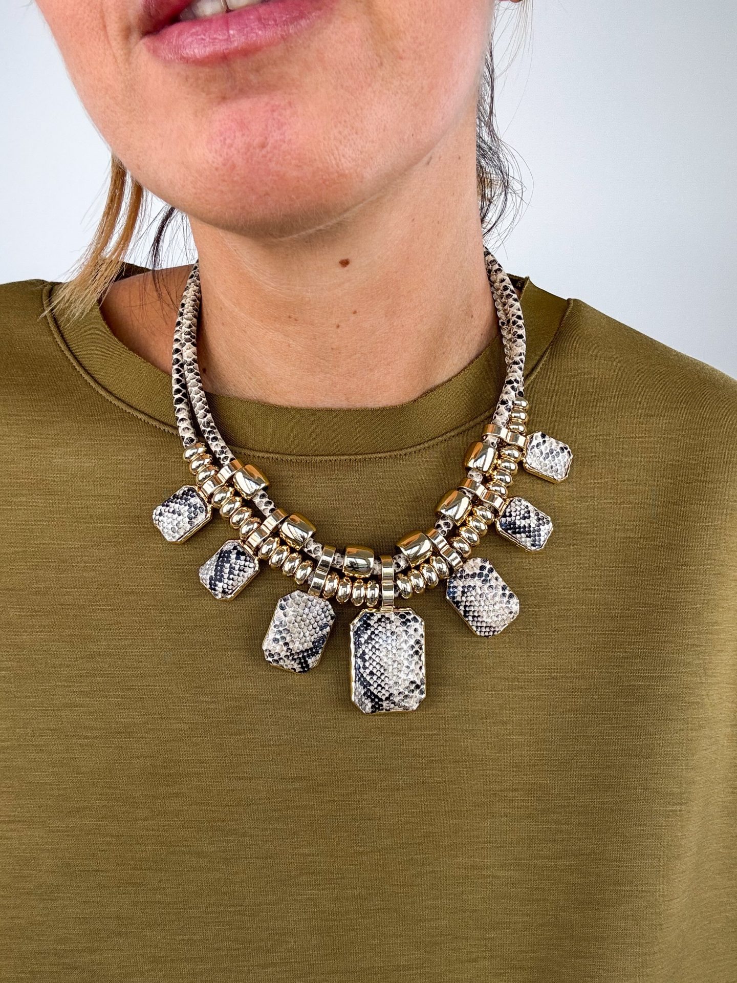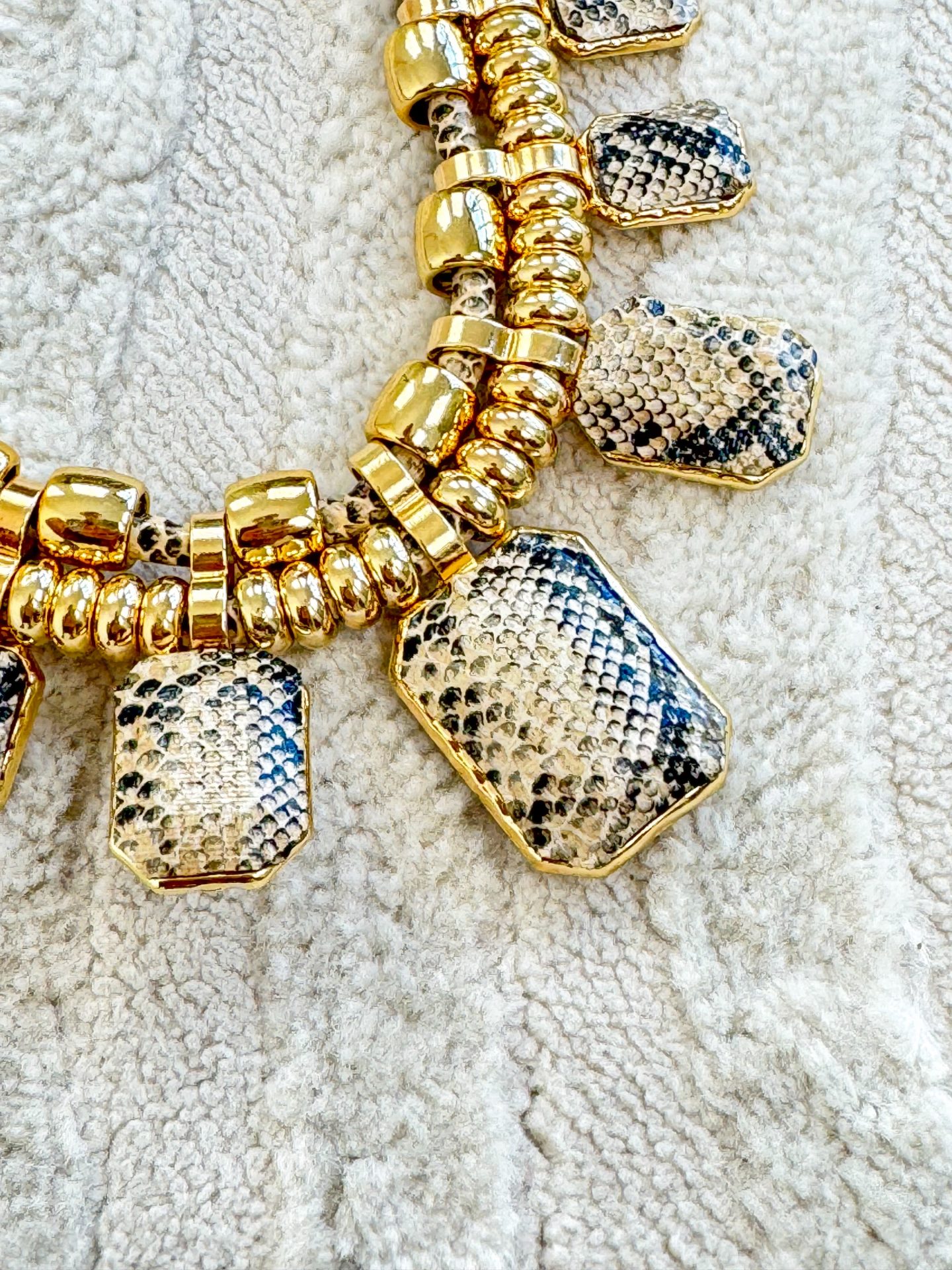 - Collana con ciondoli in metallo ed effetto pitone.