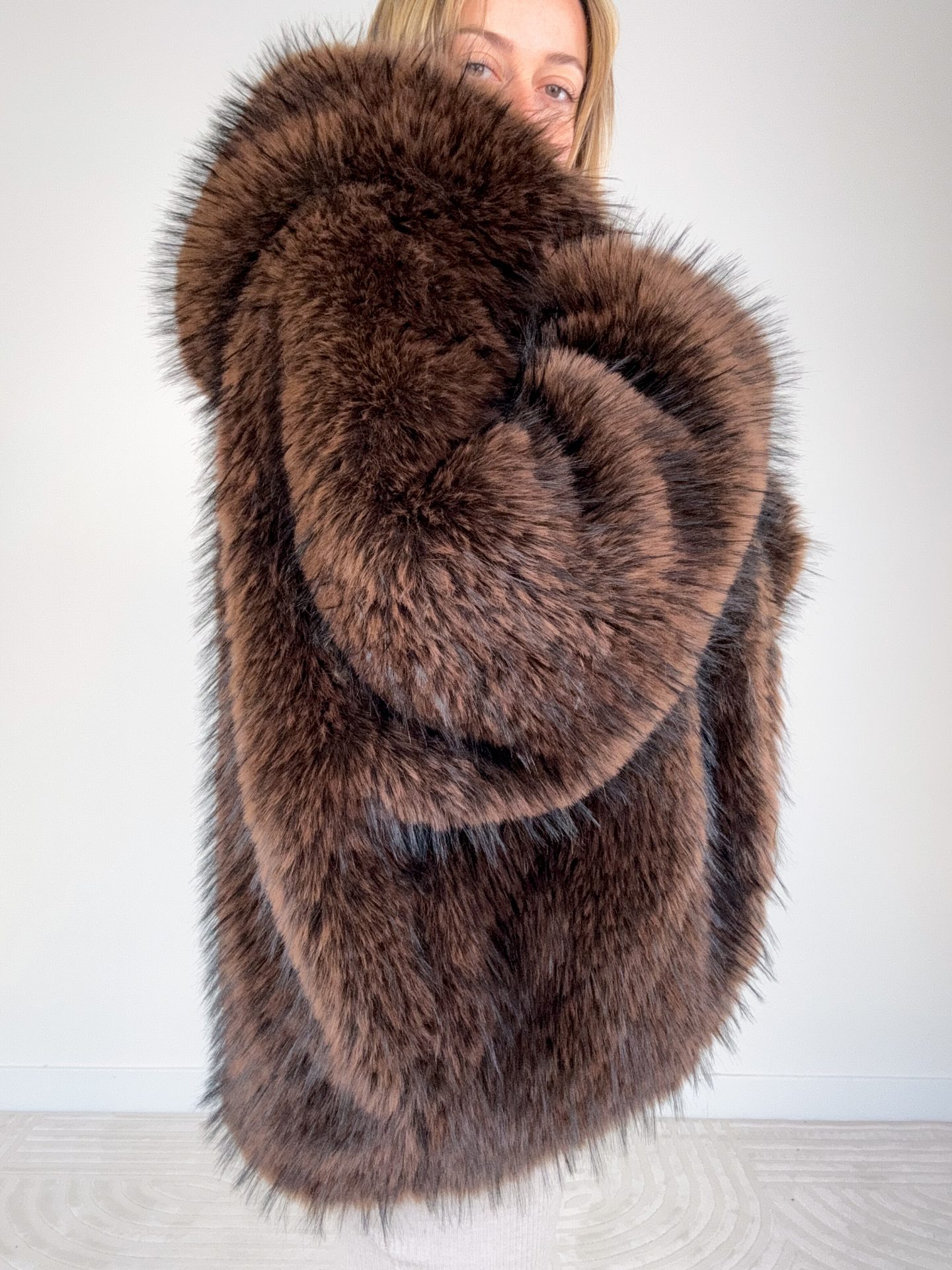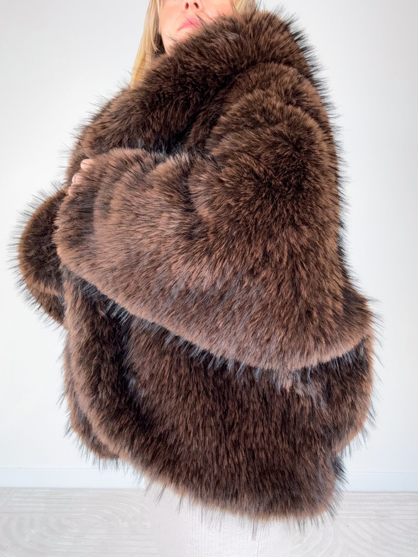 - Eco Pelliccia con manica lunga con chiusura gancio gioiello.
