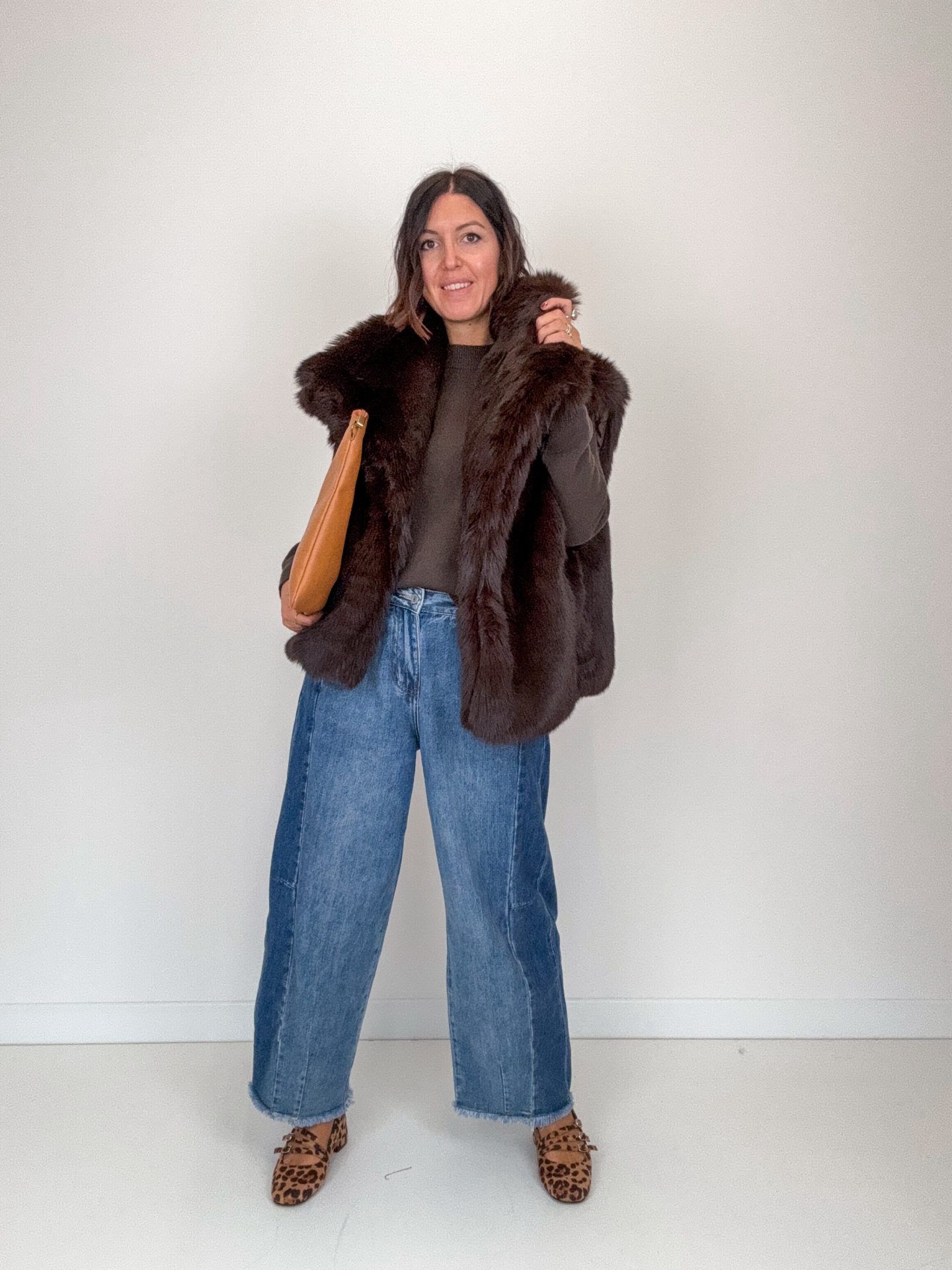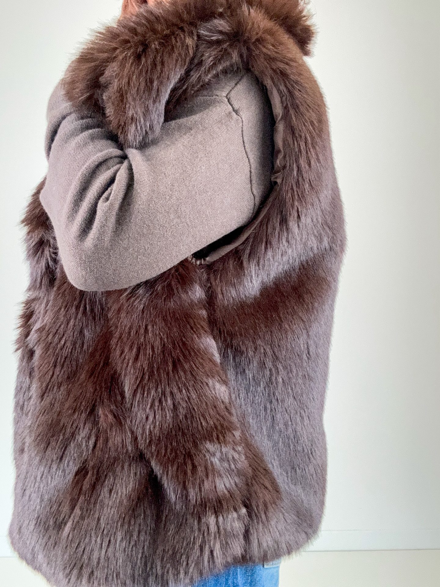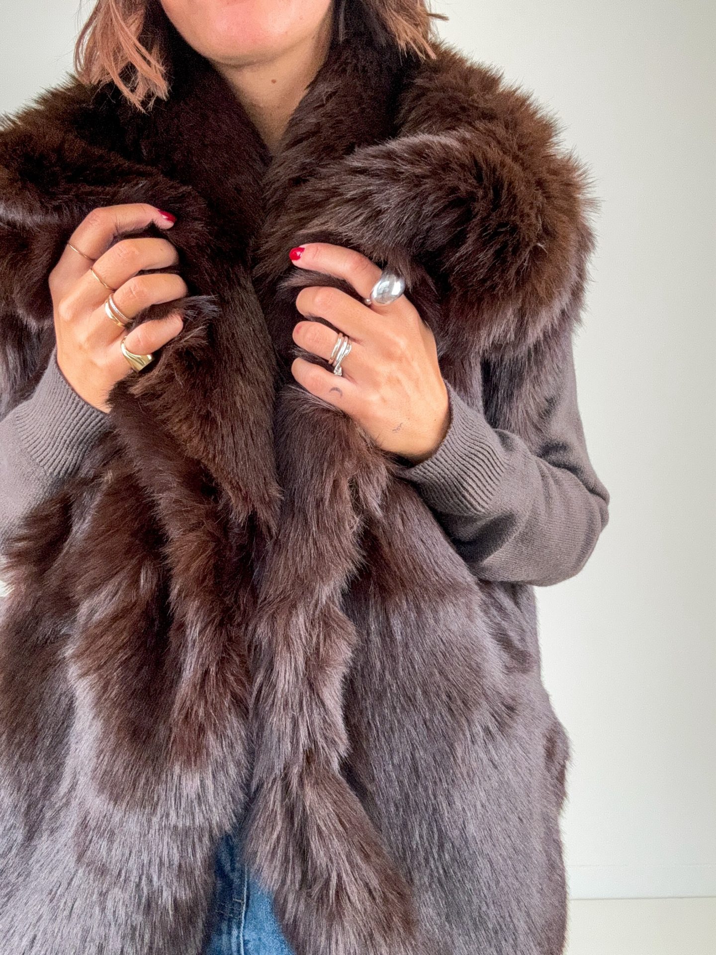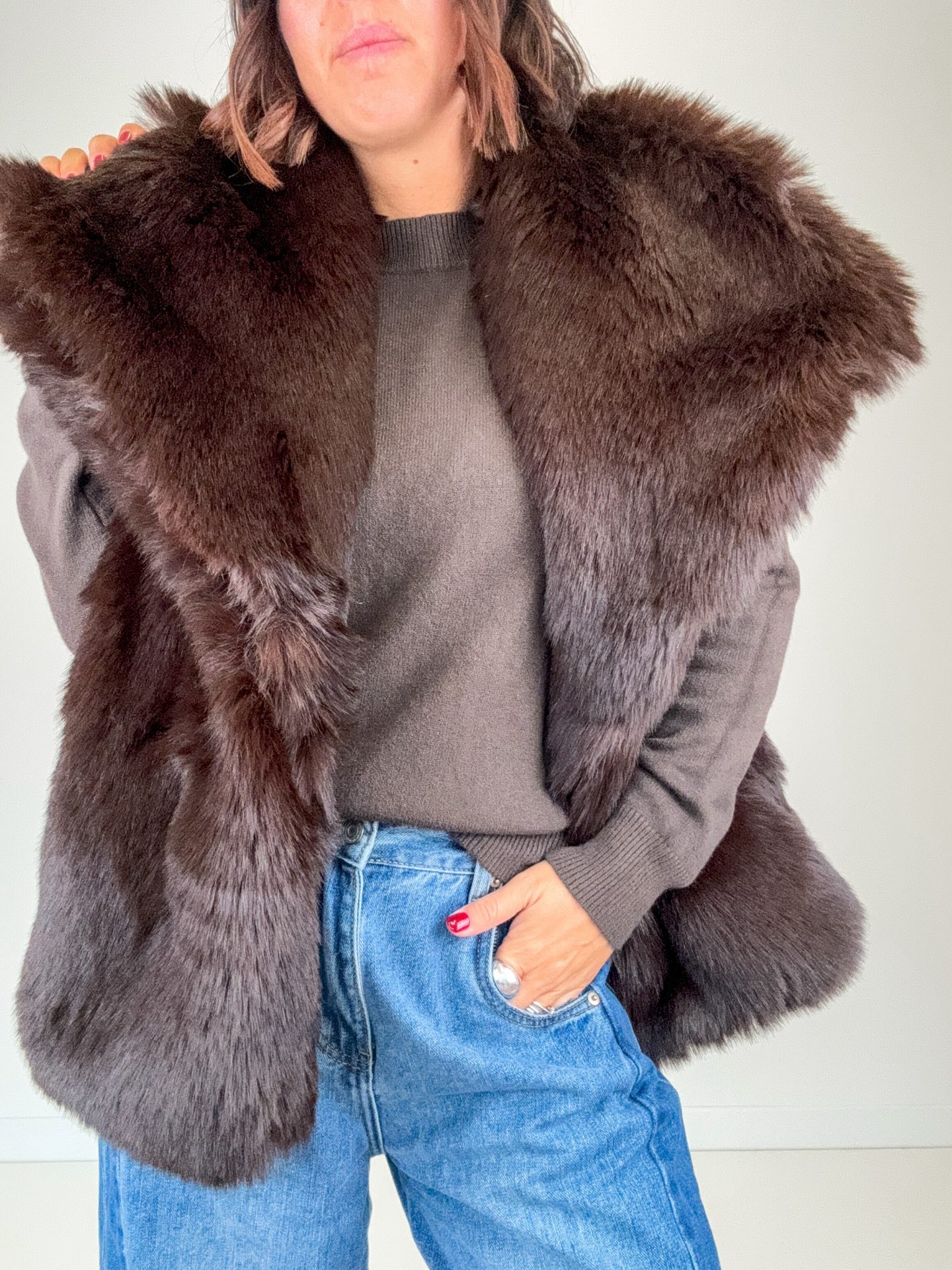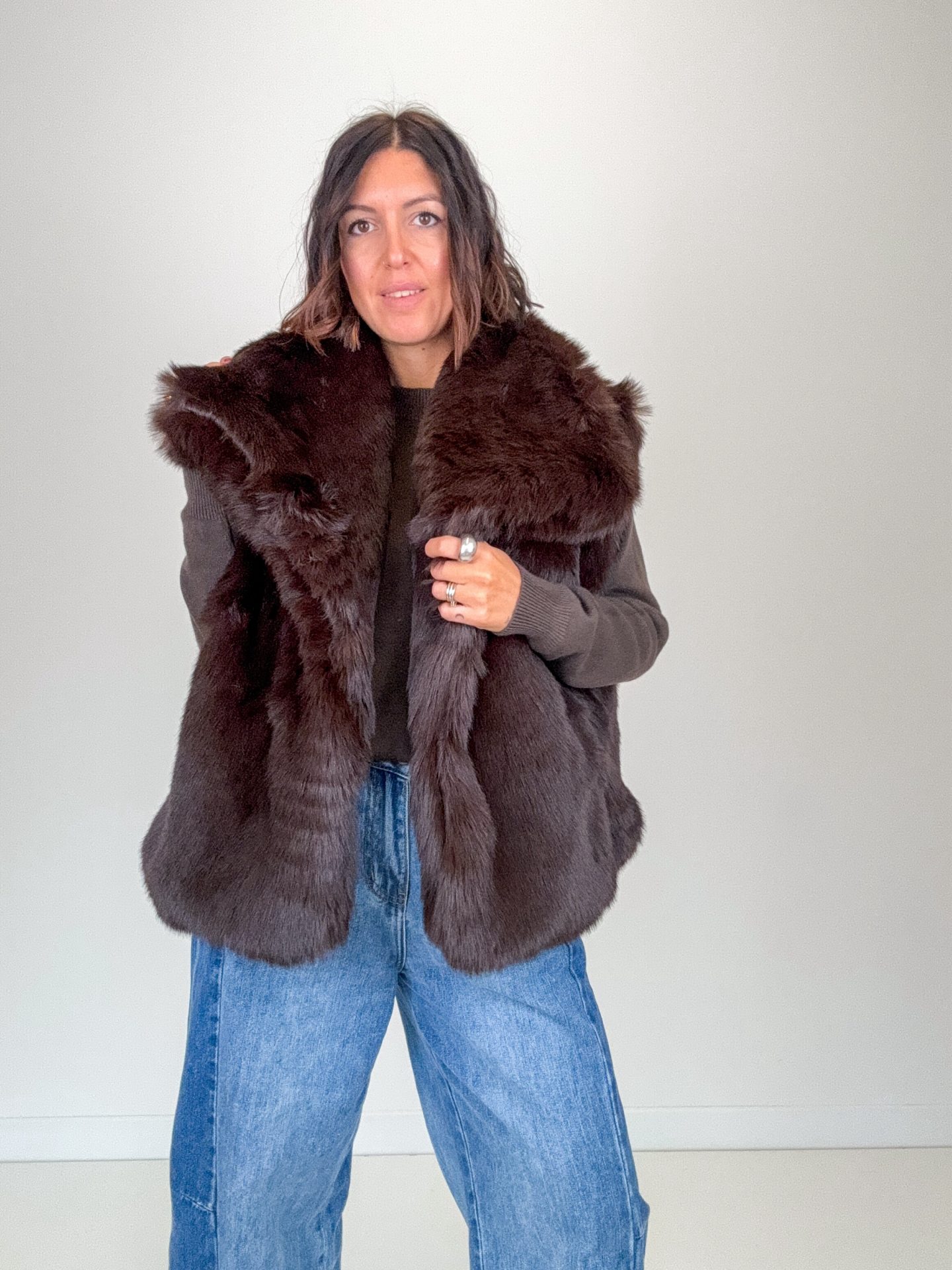 - Gilet in Eco Pelliccia con tre bottoni automatici interni.