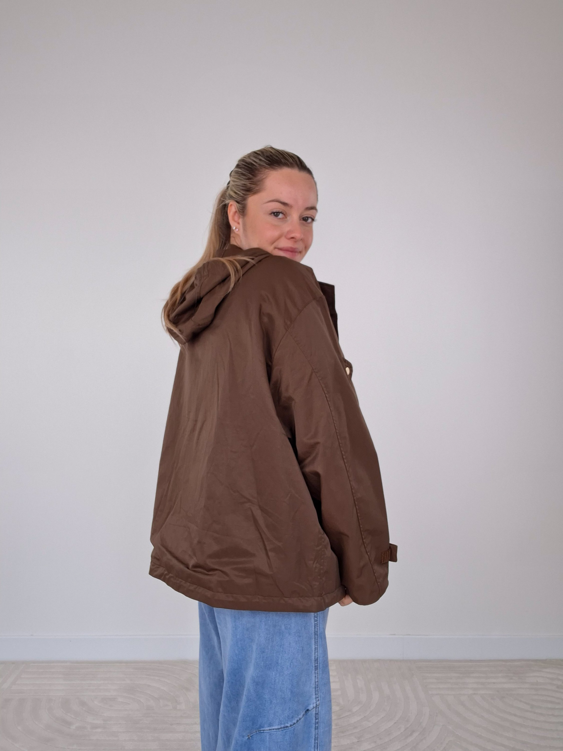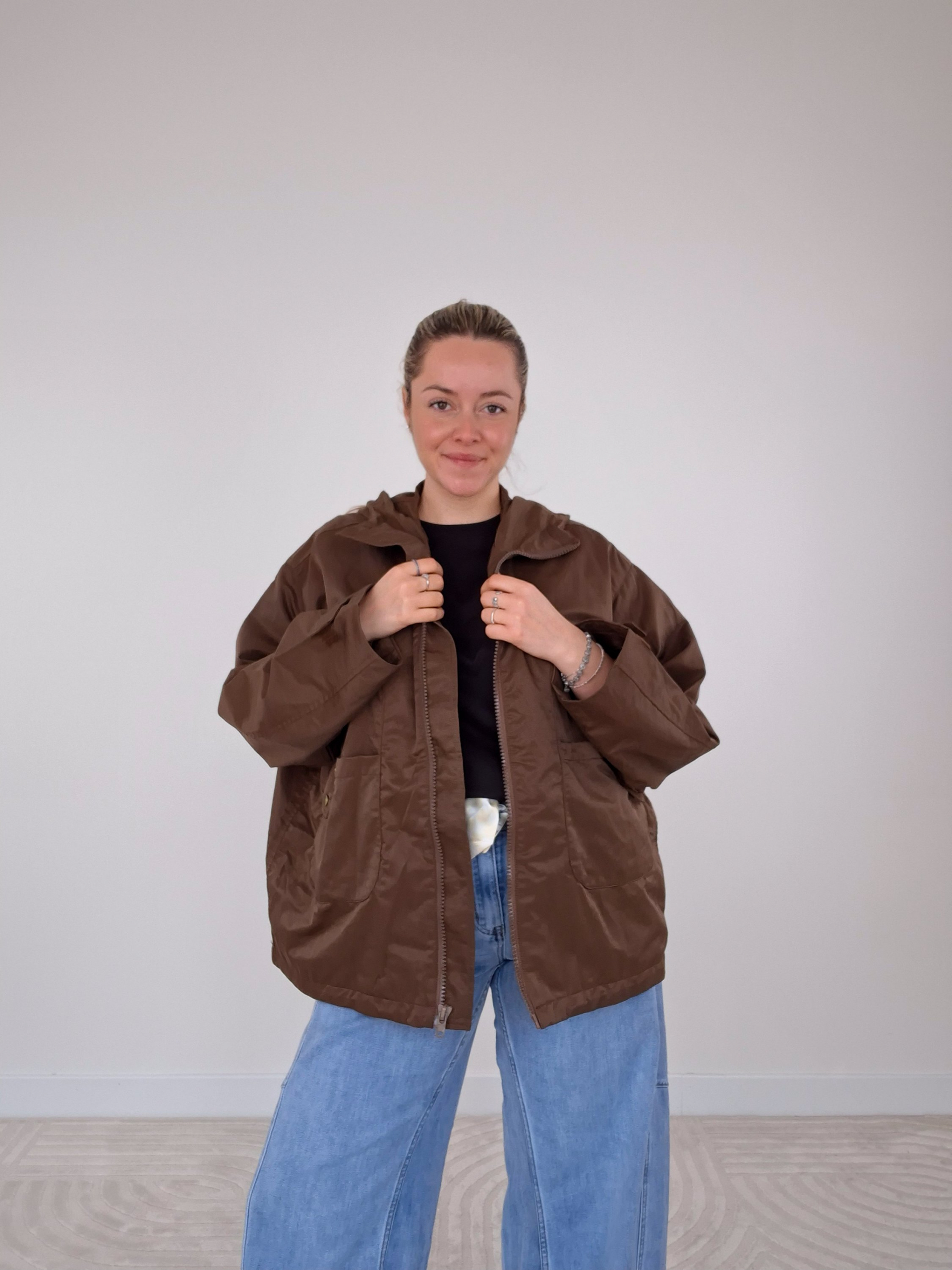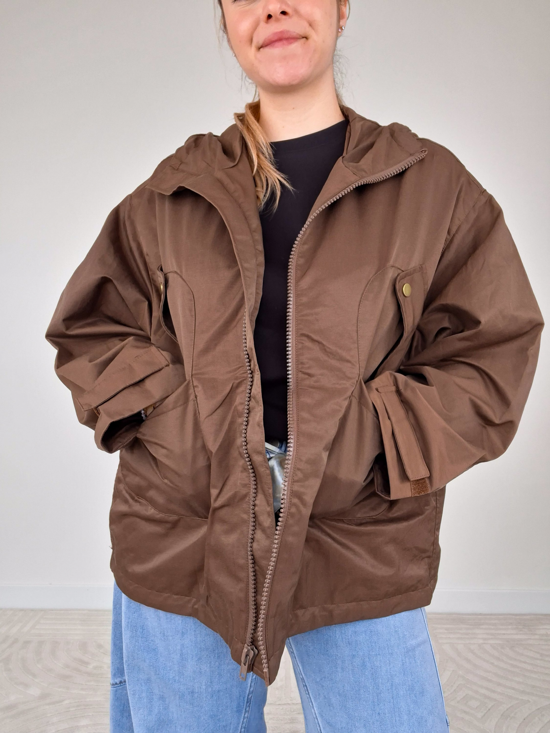 - Giacca over con due tasche frontali.