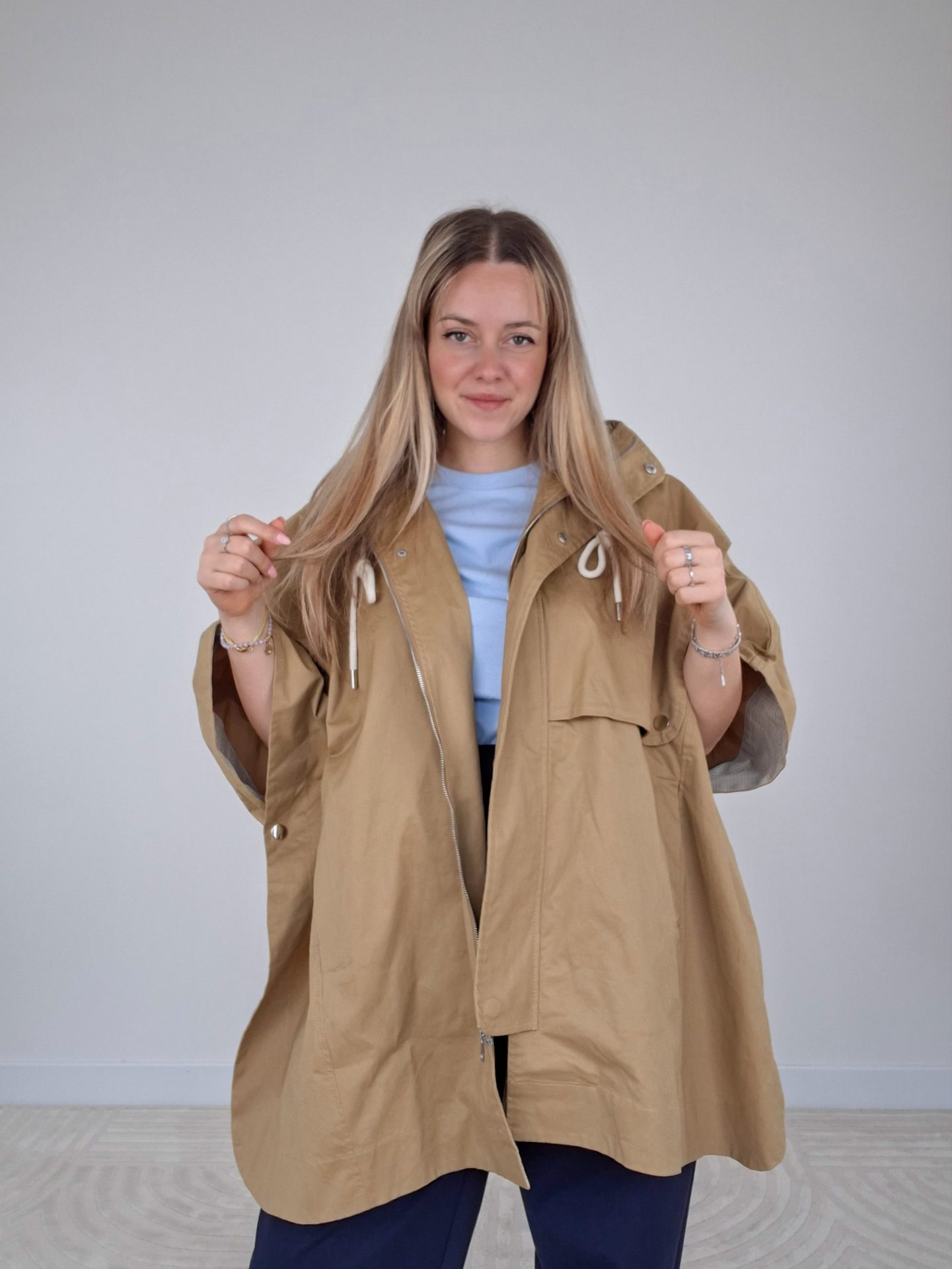 - Dettaglio cappuccio con coulisse.