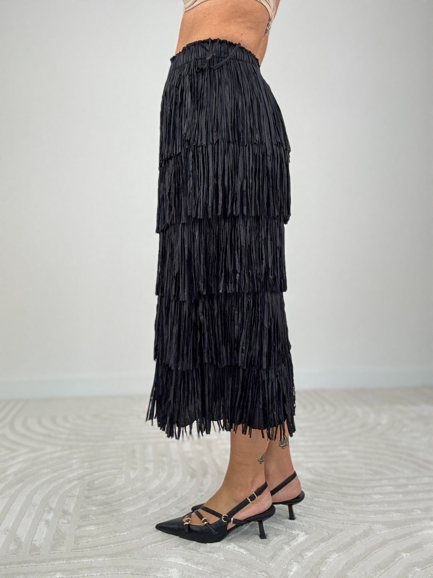 - Longuette con frange ed elastico in vita.