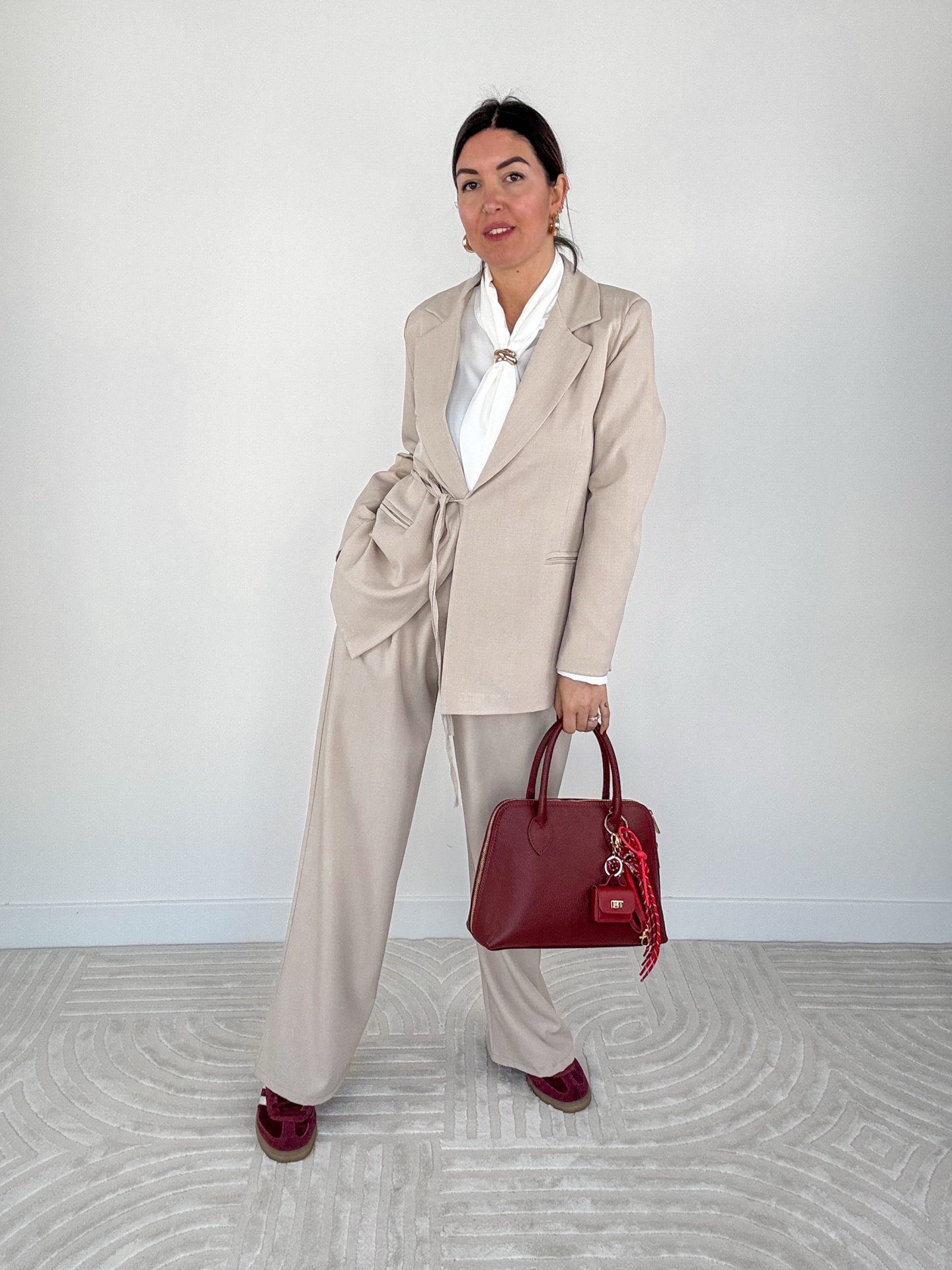 Inizia con il Set Valentina, un completo che gioca con linee moderne. Questo set, elegante e versatile, è perfetto per creare un look che si adatta a qualsiasi occasione, dal lavoro al tempo libero.