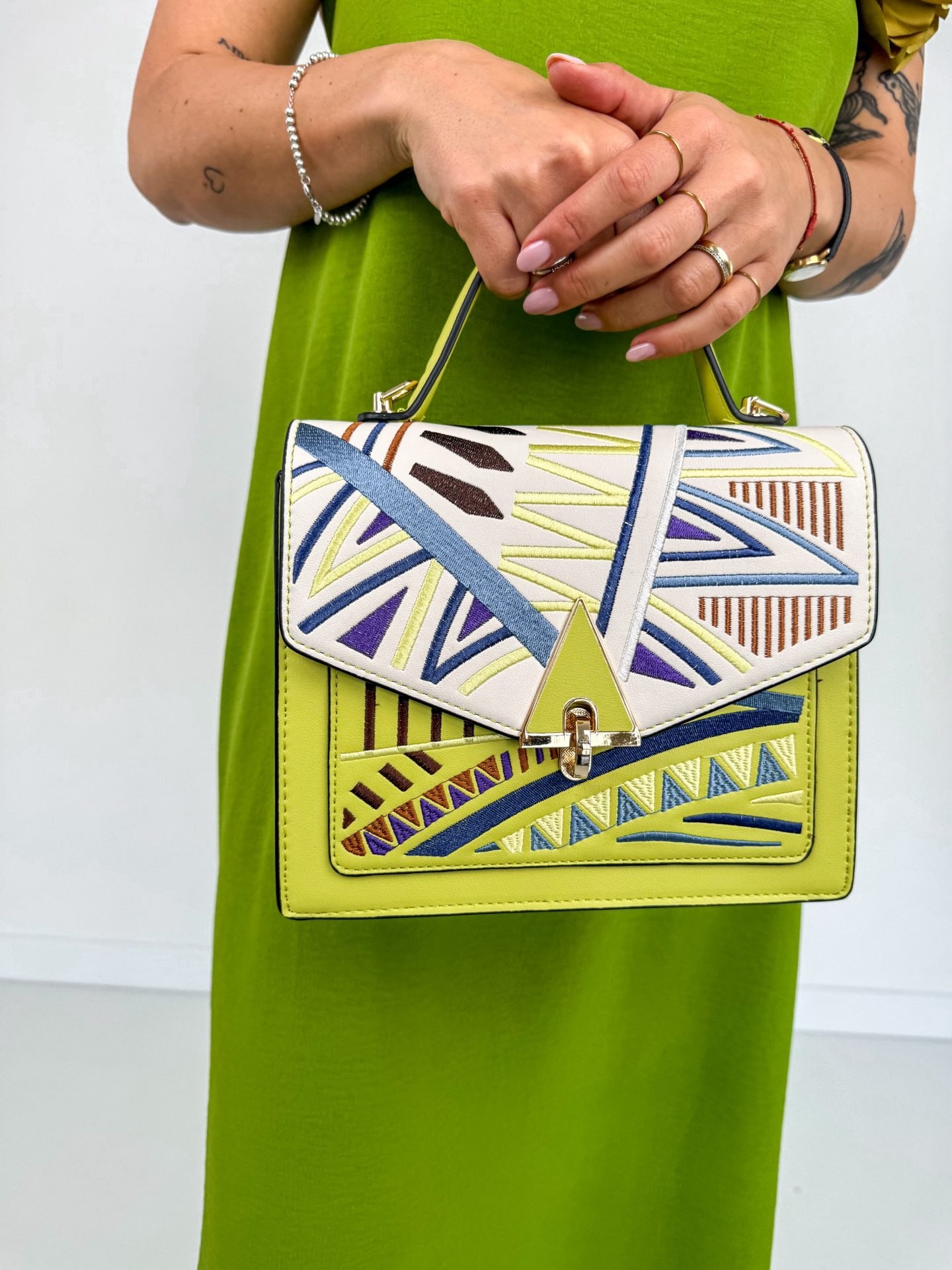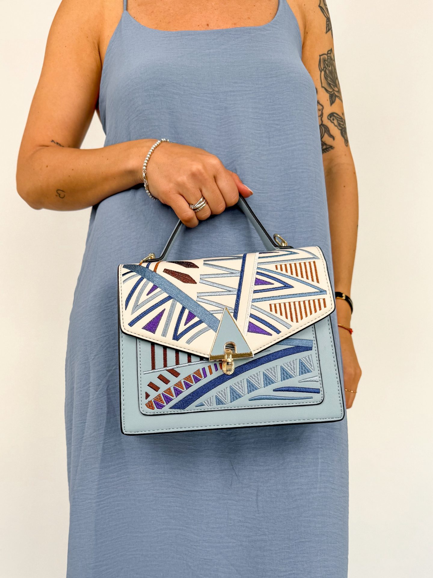- Mini borsa modello cartella con manico e tracolla rimovibile