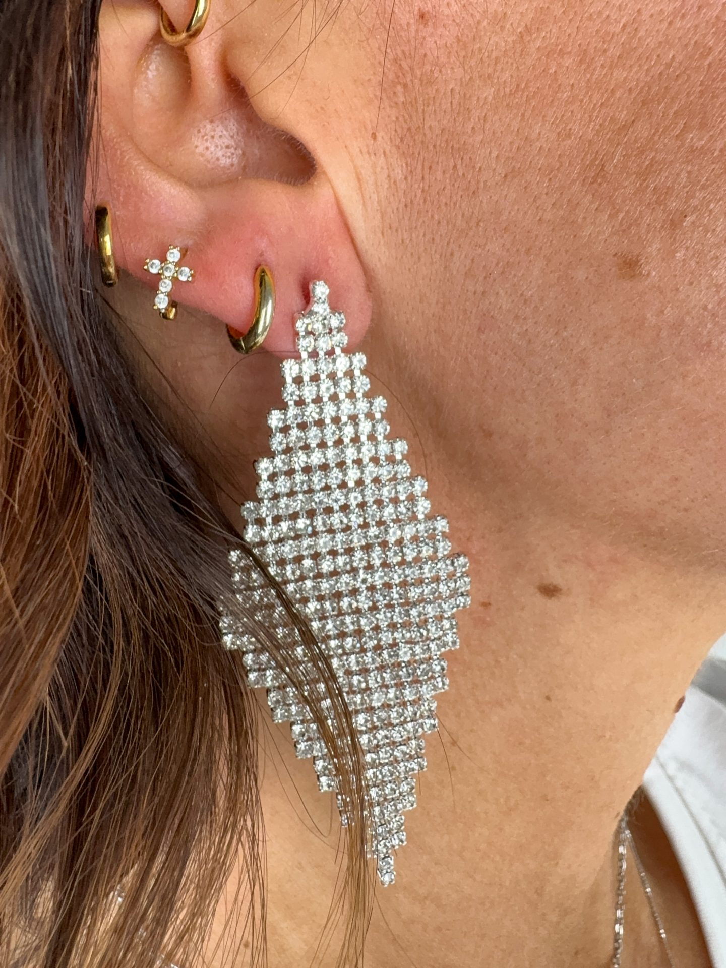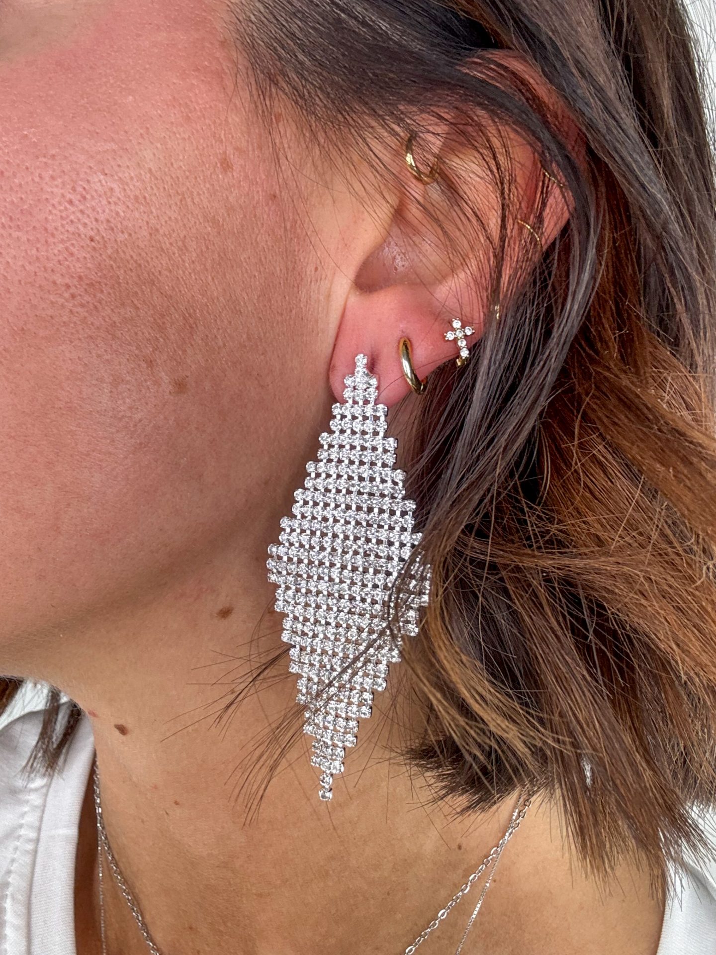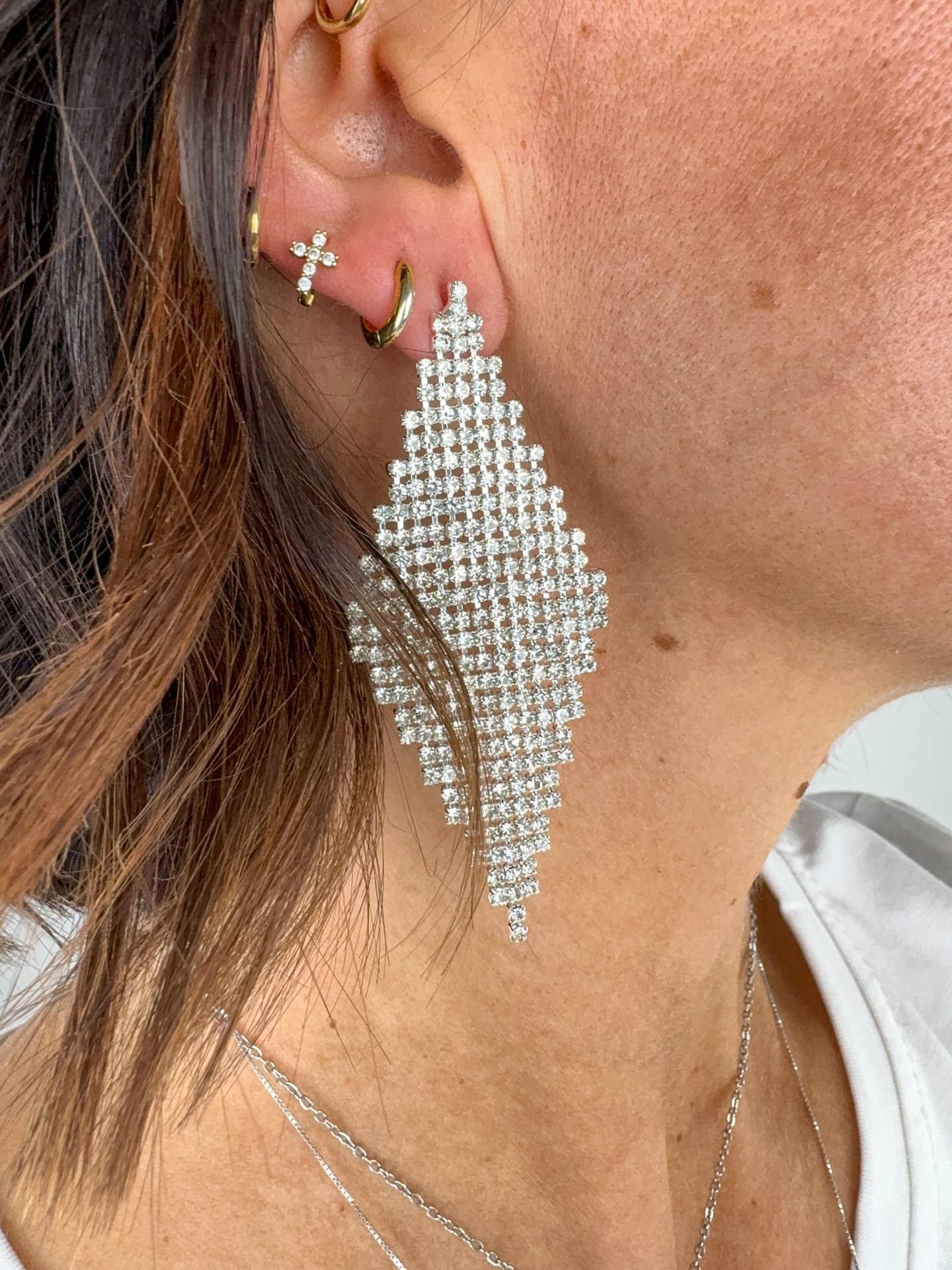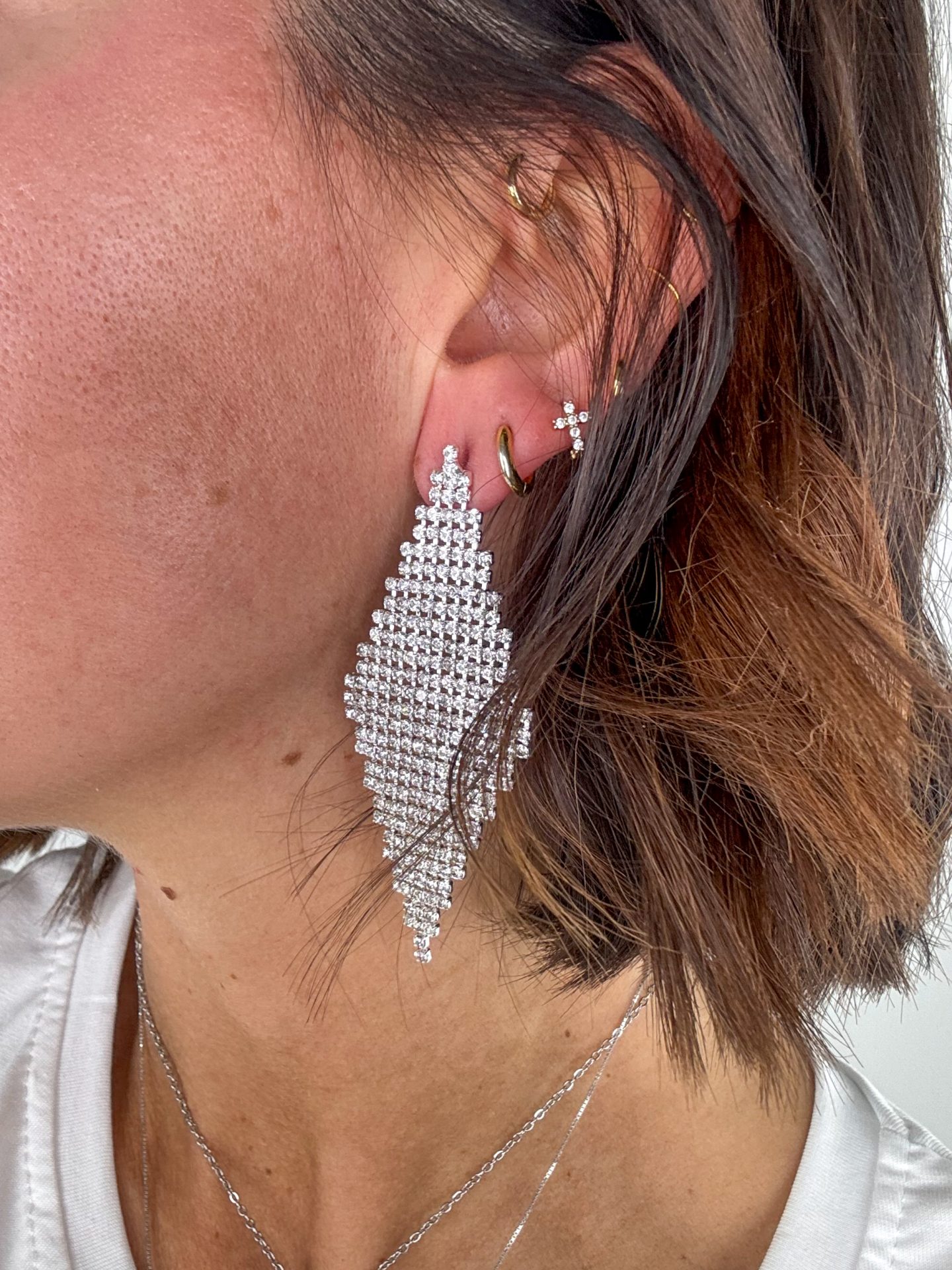 - Orecchini a rombo con strass.