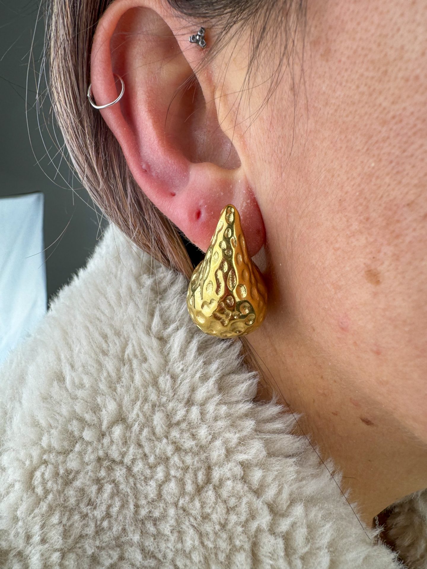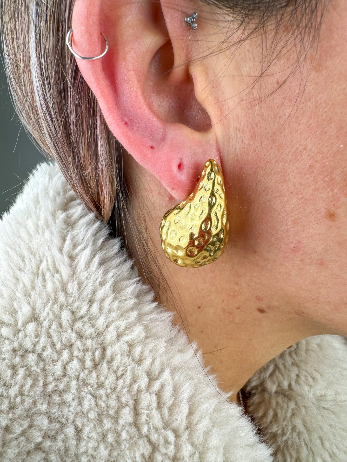 - Orecchini a goccia in acciaio laccato oro o argento.