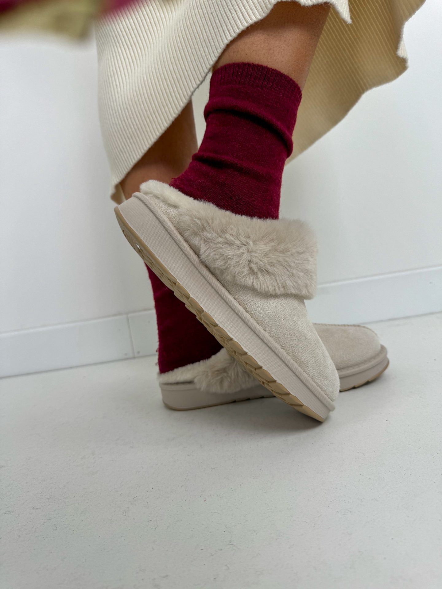 - Slipper in tessuto e morbidissima eco-pelliccia.