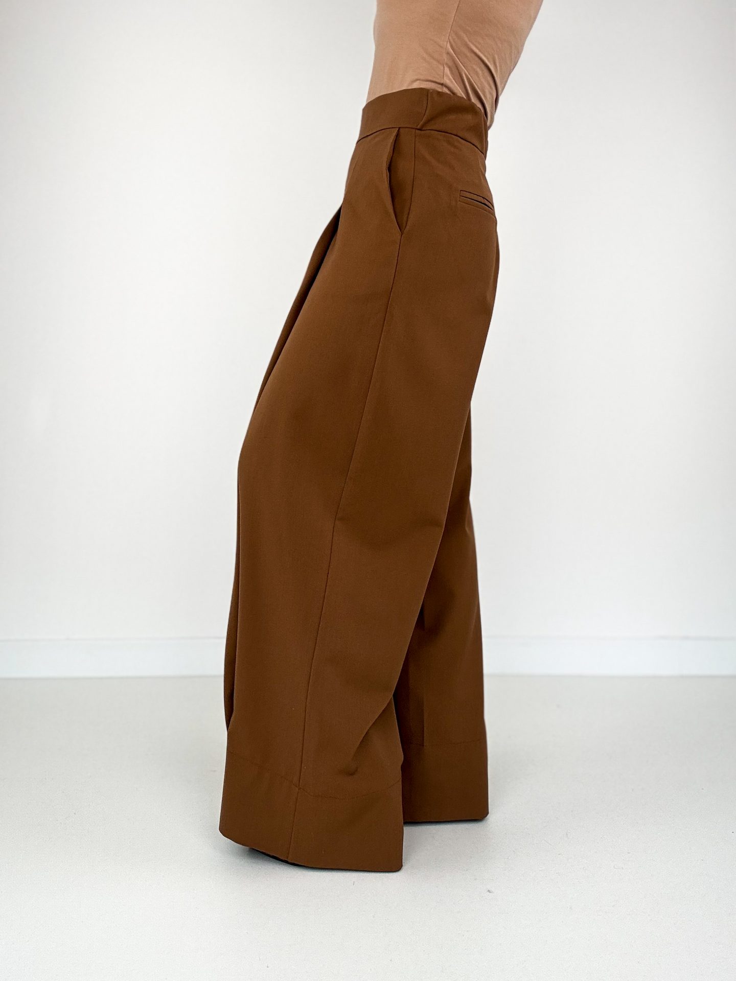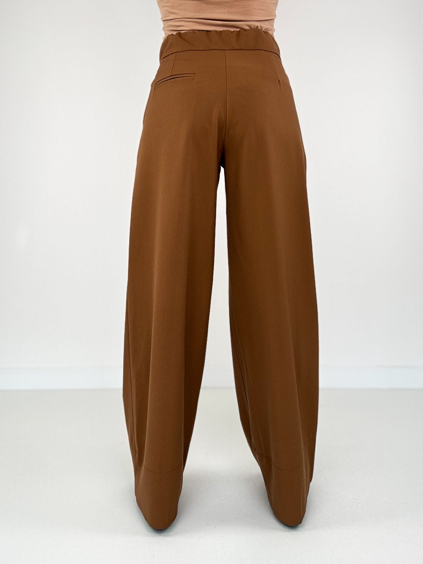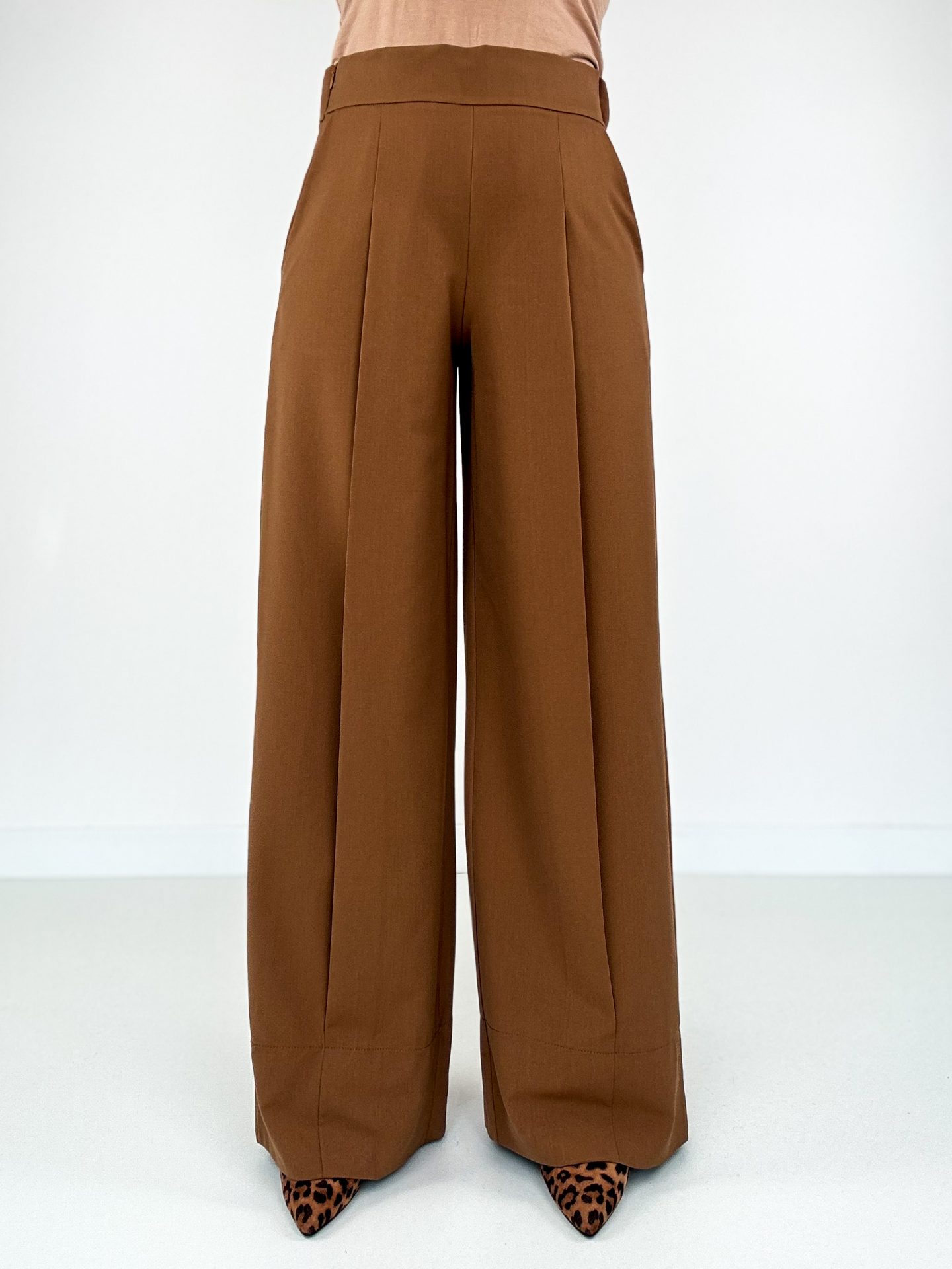 • Dettaglio pinces frontali e cucitura sul fondo.