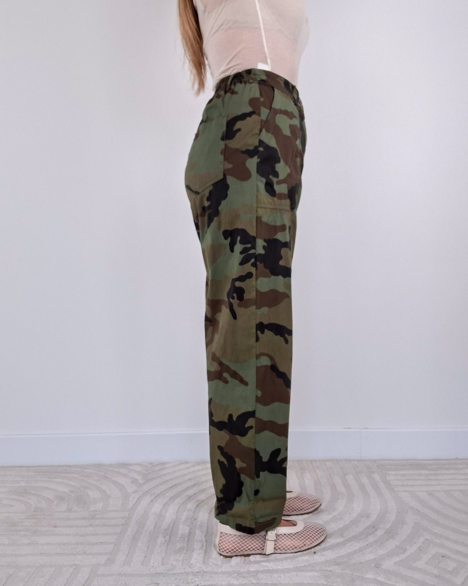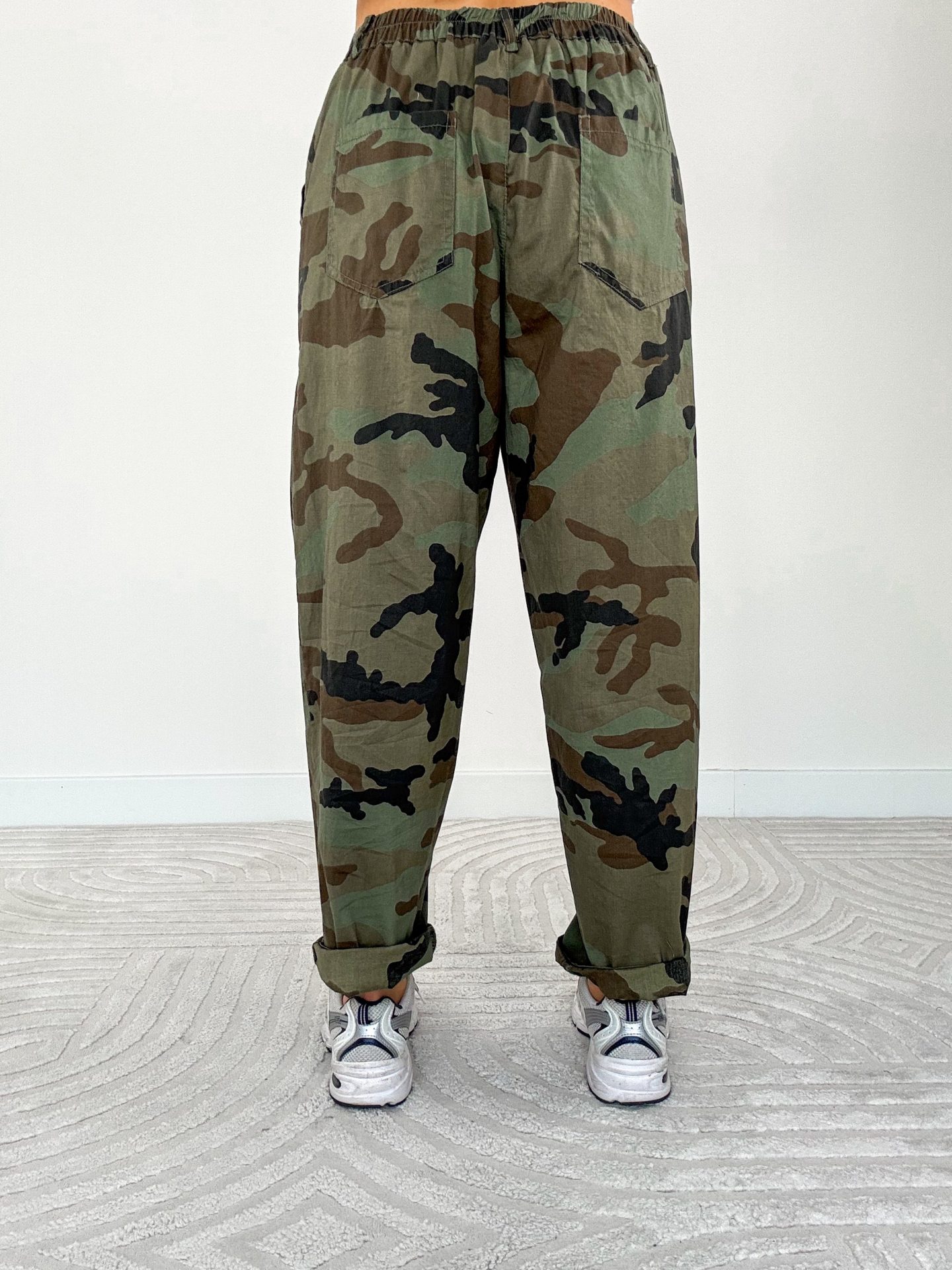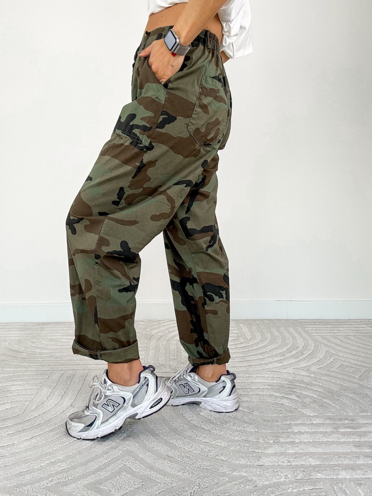 - Pantalone militare misto cotone, con chiusura classica ed elastico sul retro.