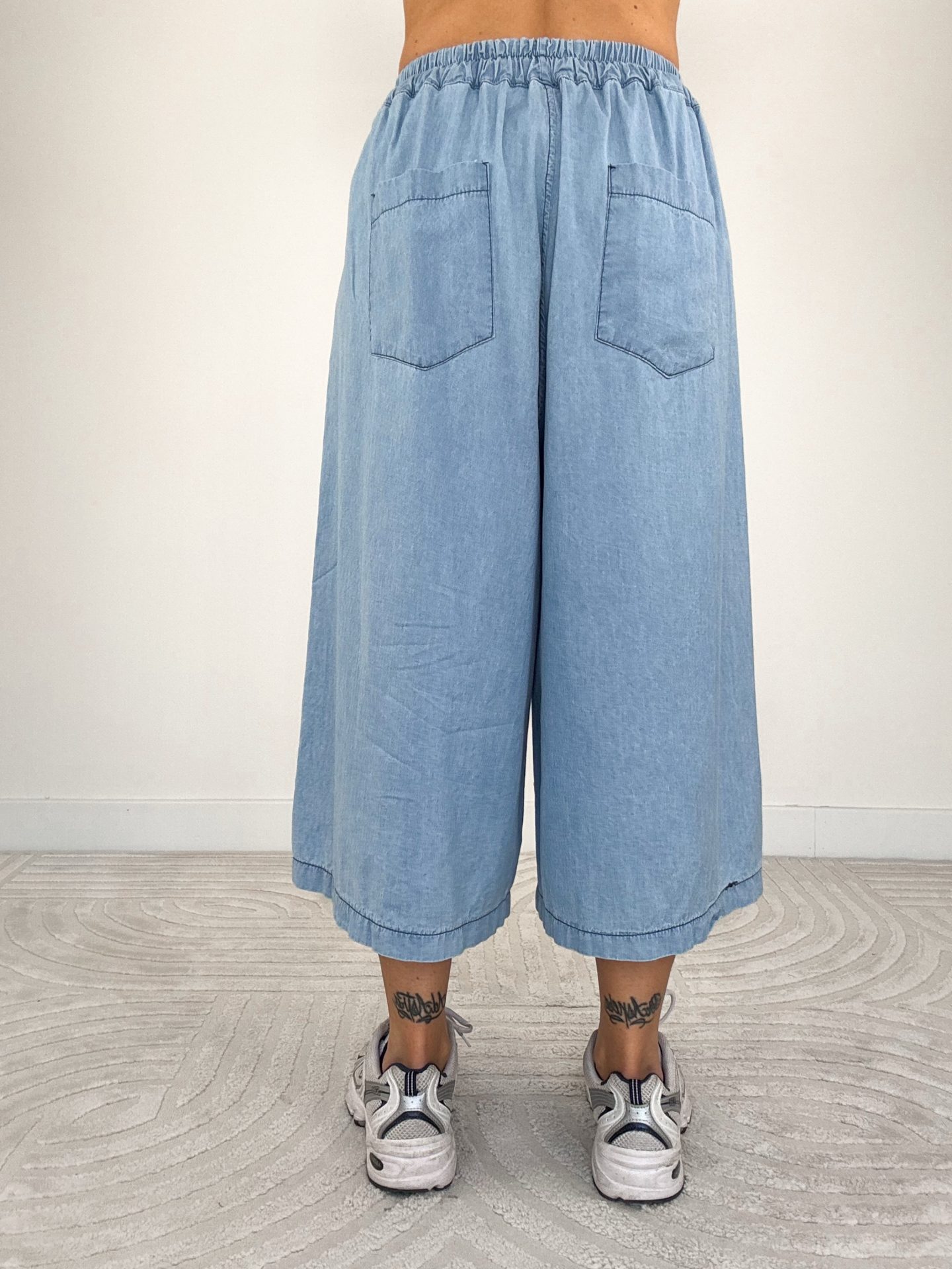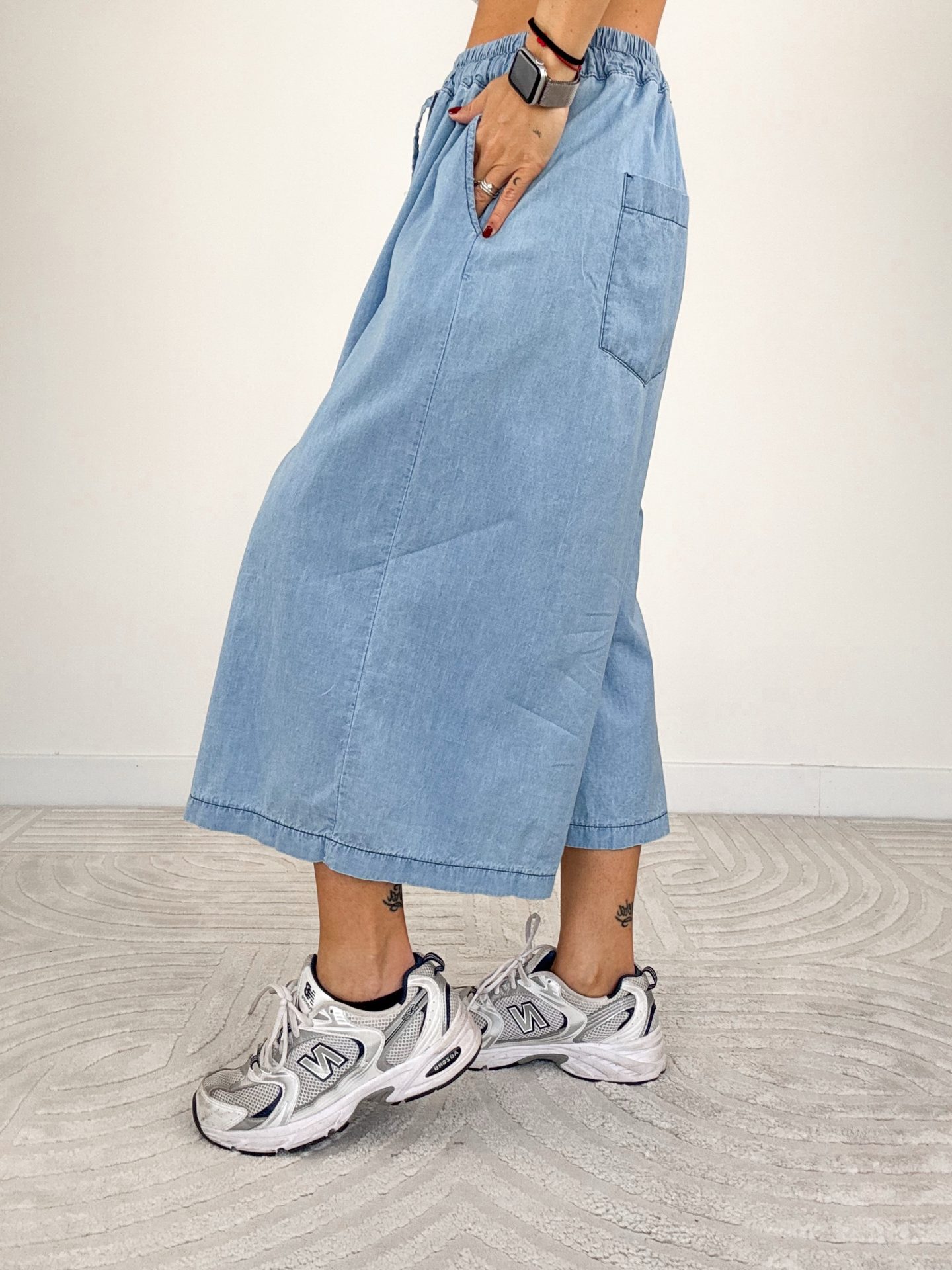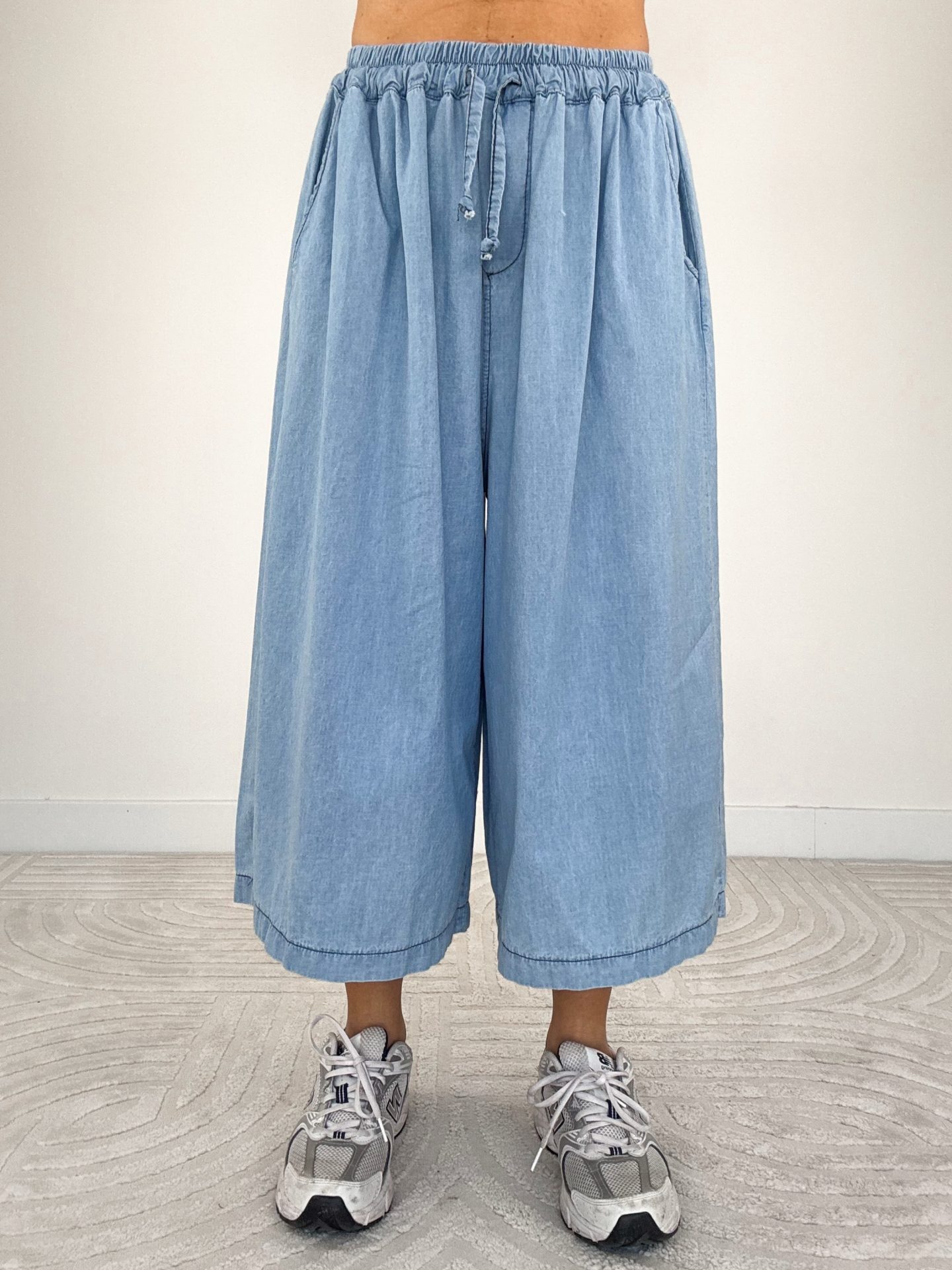 - Pantalone in cotone, stile bermuda con elastico in vita.