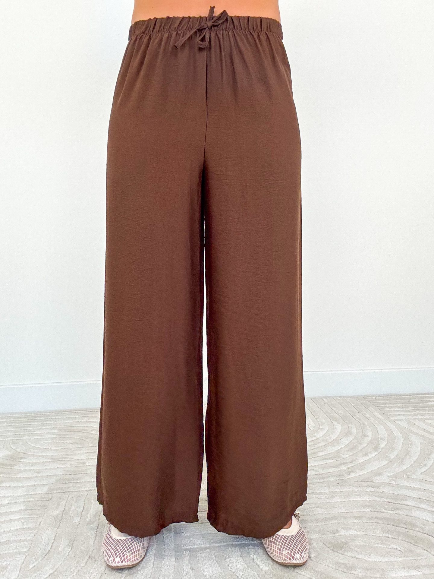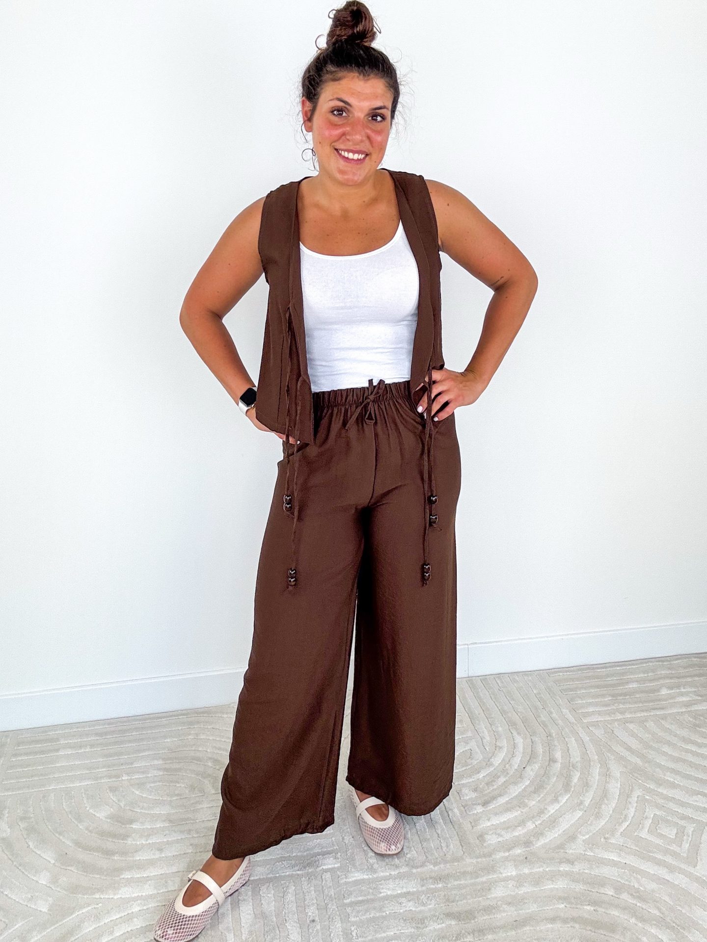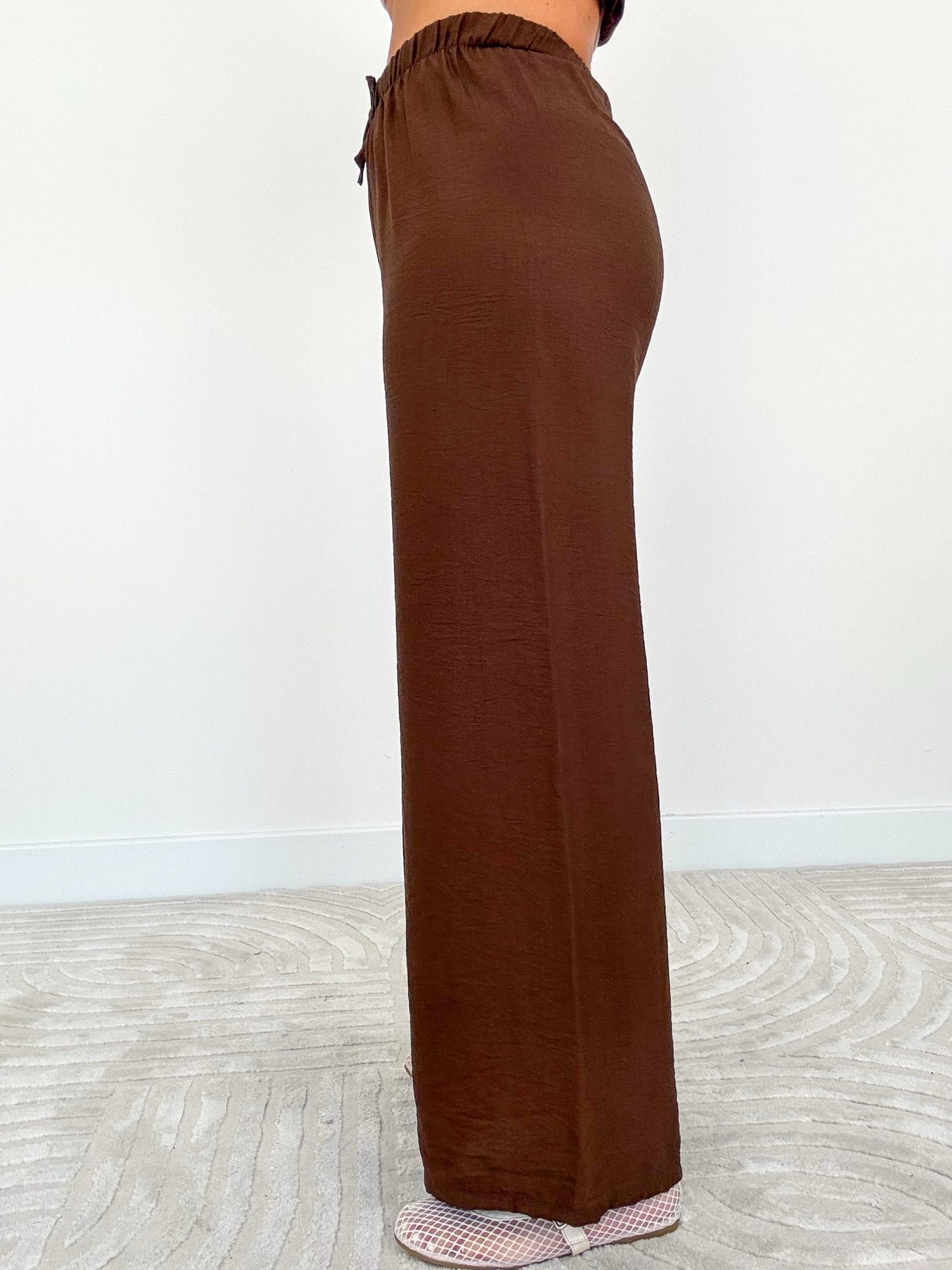 • Pantalone in Viscosa modello palazzo con elastico e coulisse in vita.