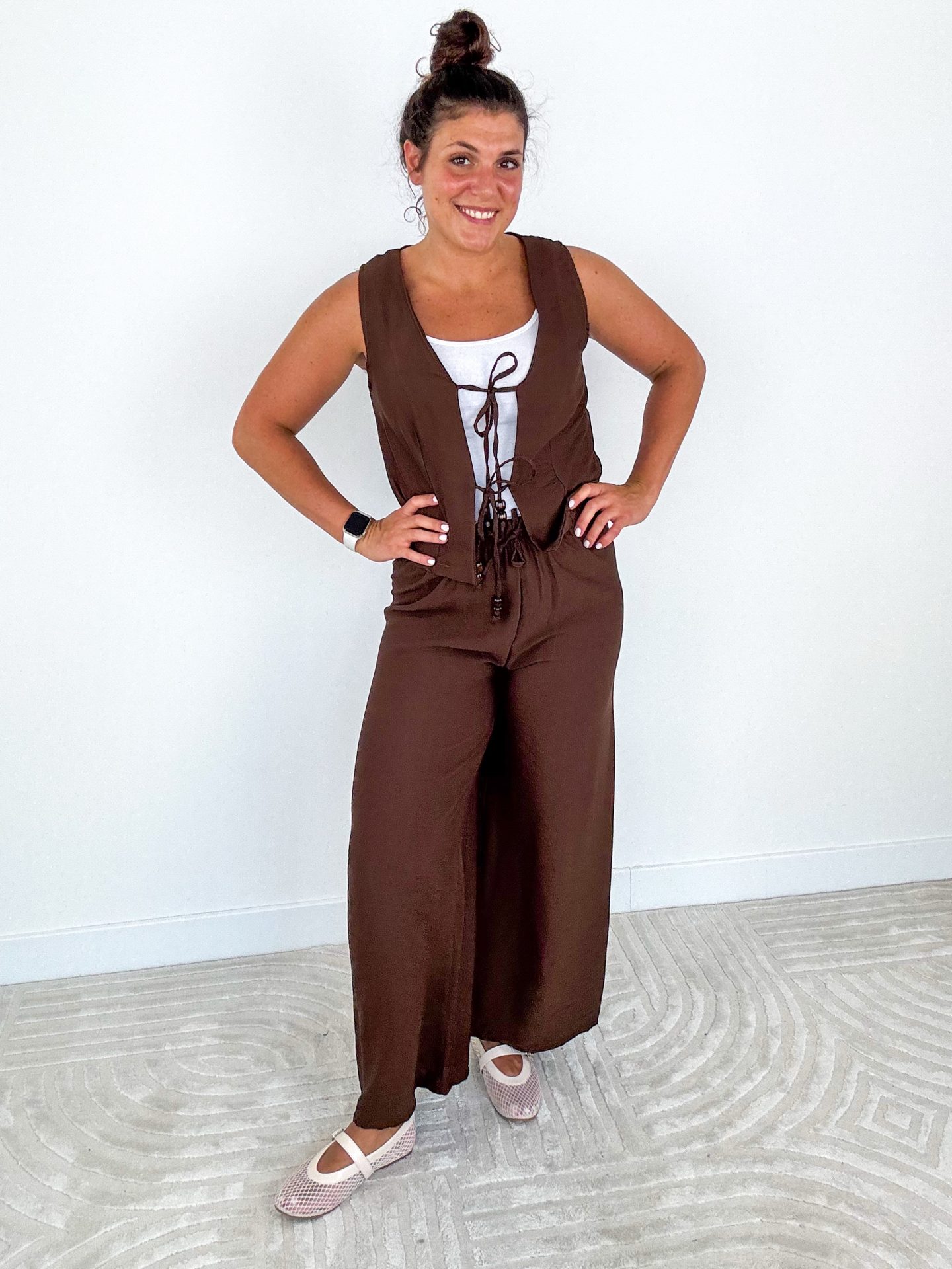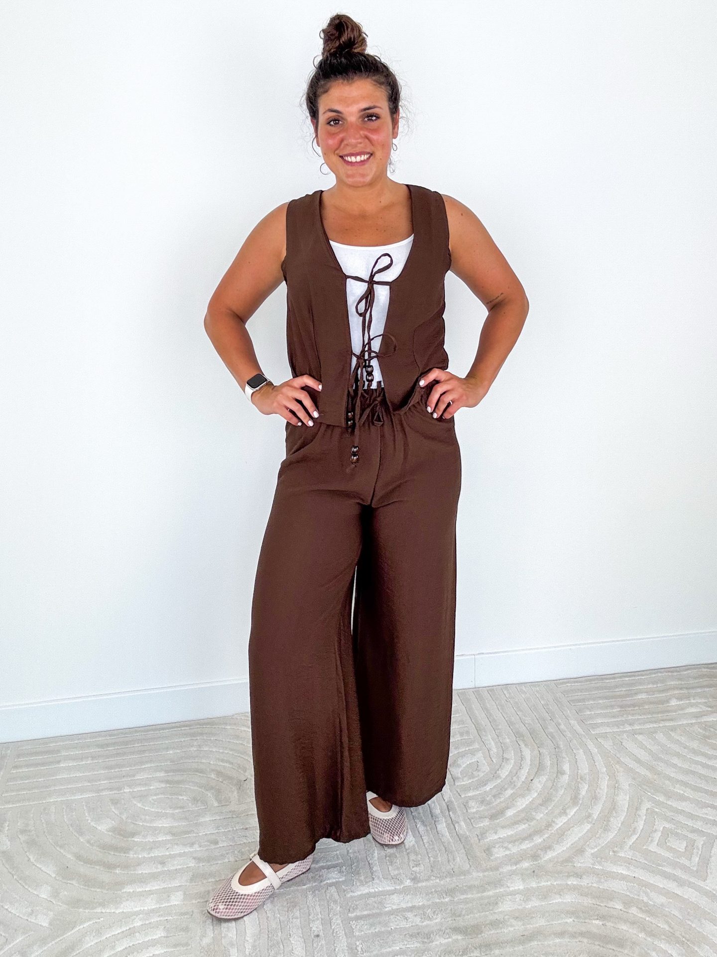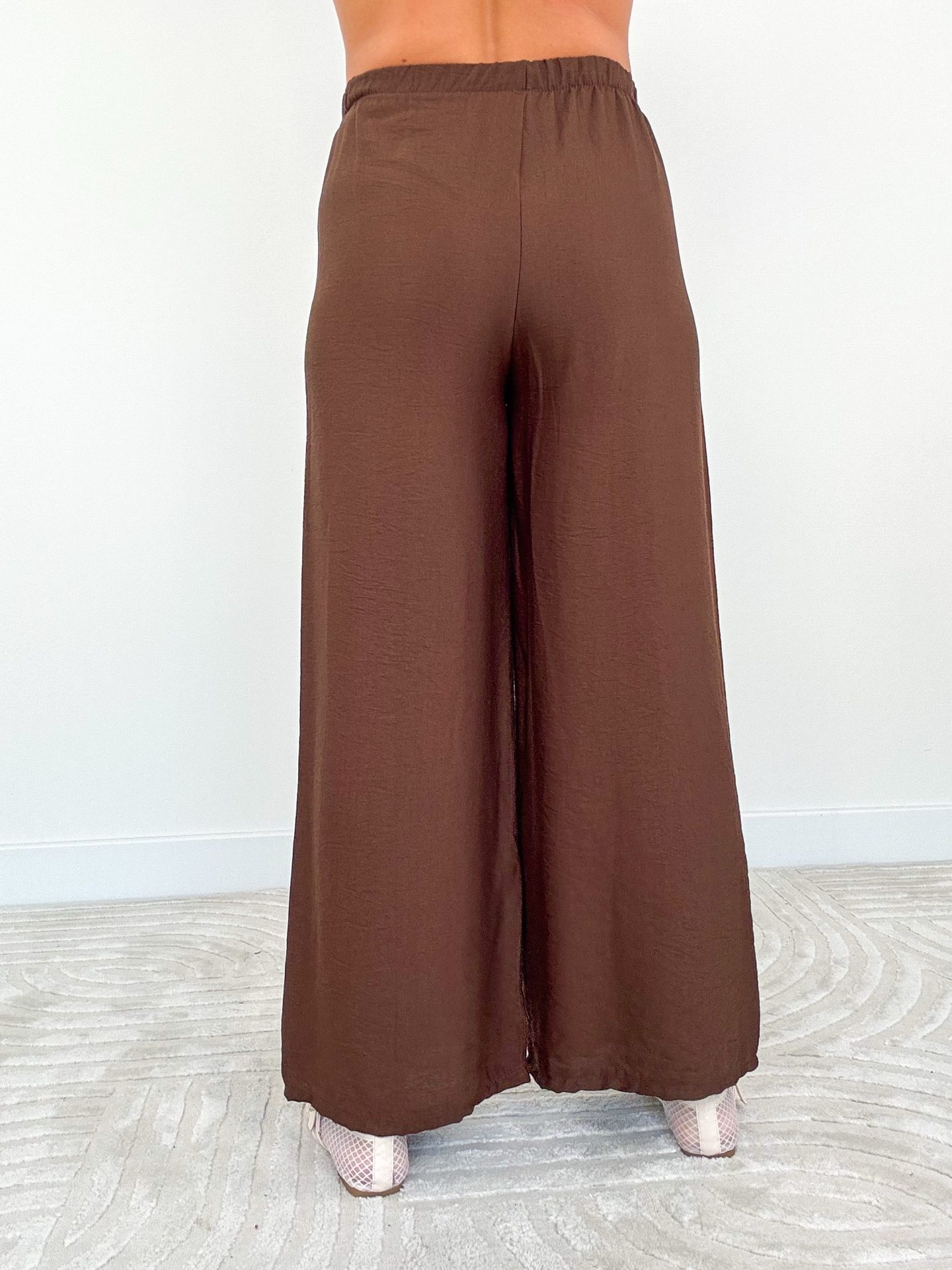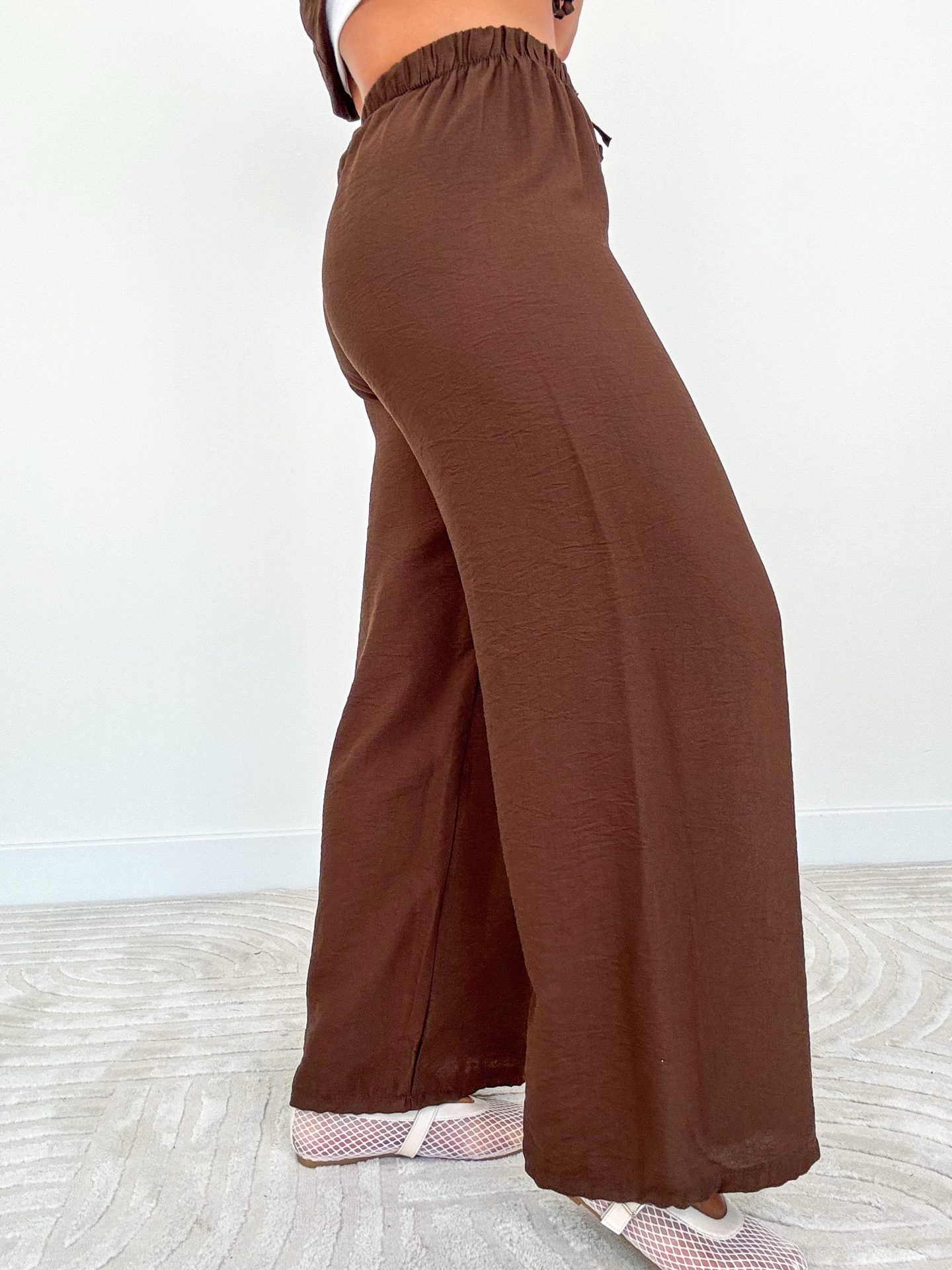 • Pantalone in Viscosa modello palazzo con elastico e coulisse in vita.
