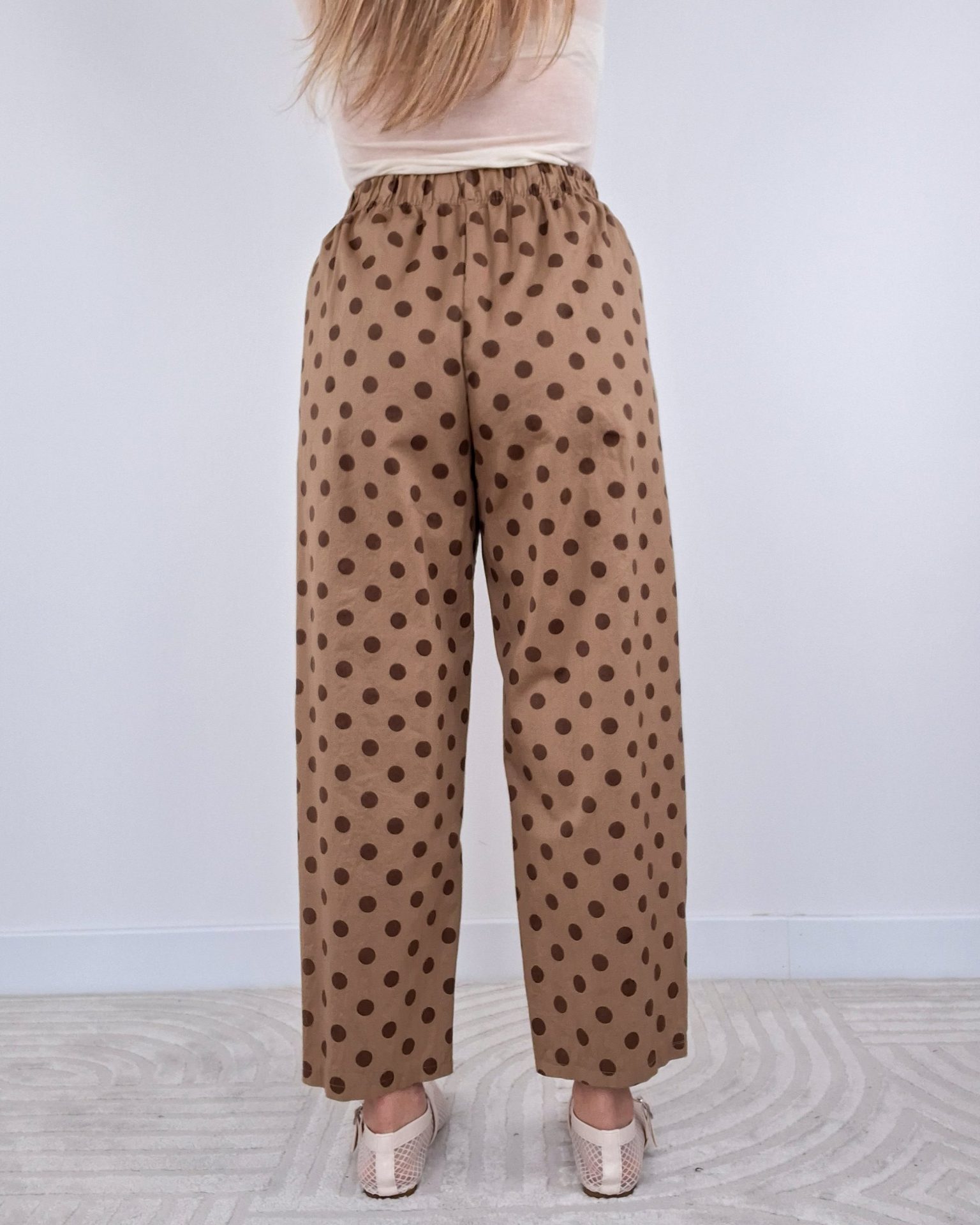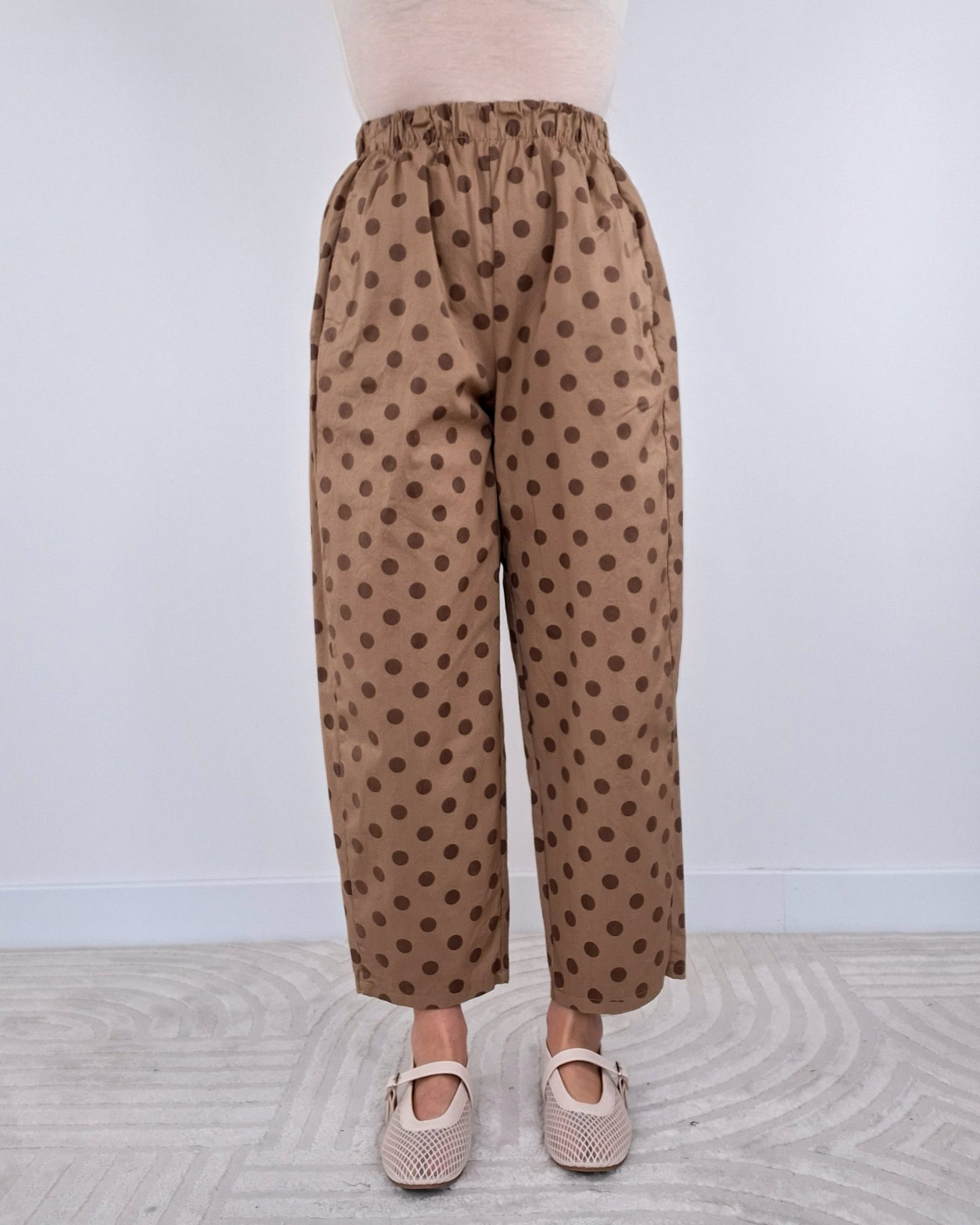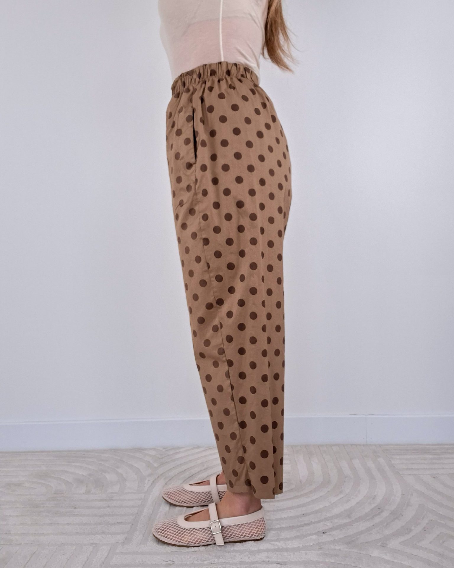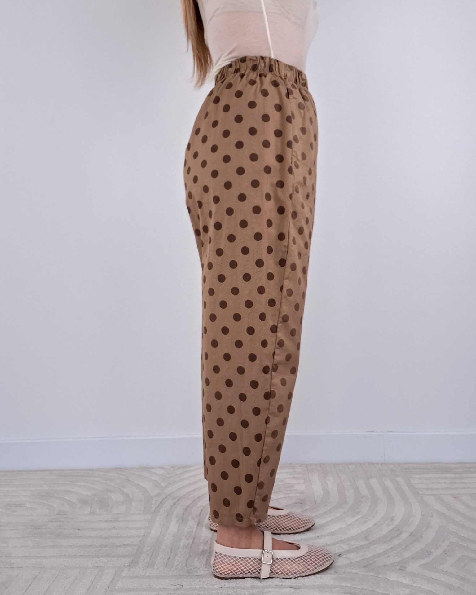 • Pantalone a pois con elastico in vita.