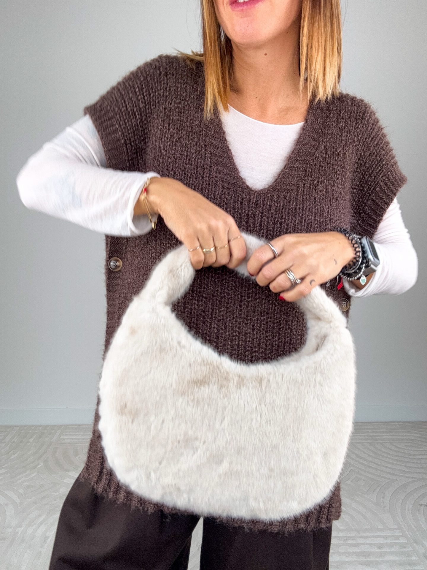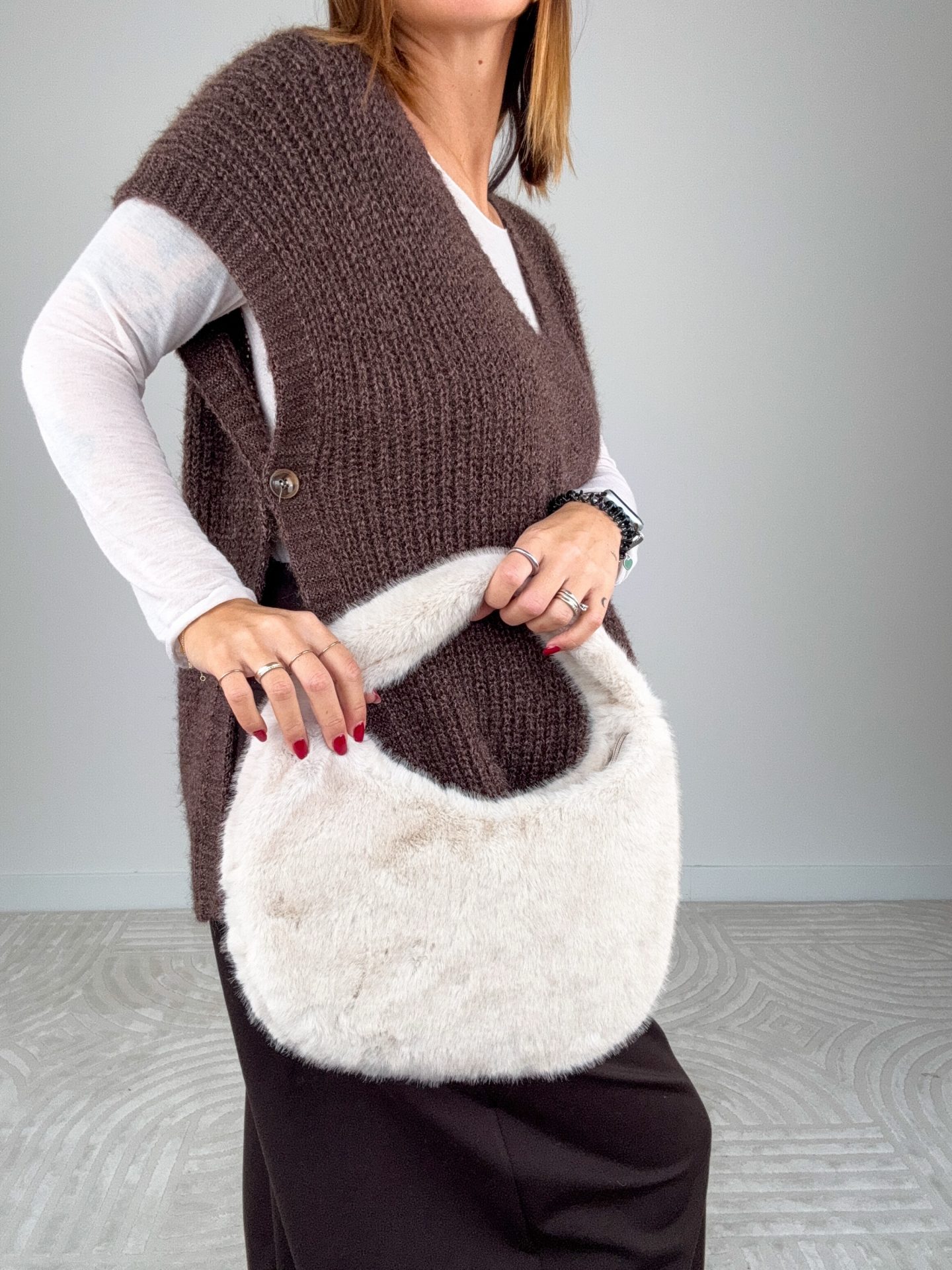 - Borsa mezzaluna a spalla in pelliccia.