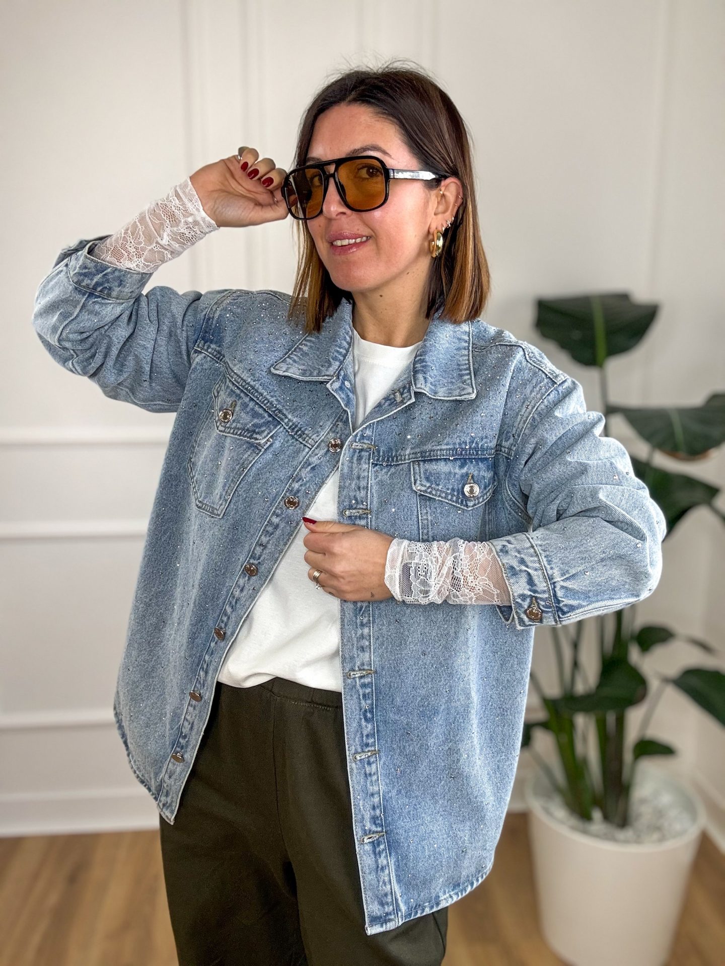 Partiamo dalla Camicia Violante in denim piena di strass che già da sola crea un look senza bisogno di troppe aggiunte, ma noi non ci fermiamo qui, perchè ora è il momento della T-shirt Pizzo. T-shirt in cotone con il dettaglio della manica effetto pizzo tono su tono…questa ragazze è un must della stagione sappiatelo.