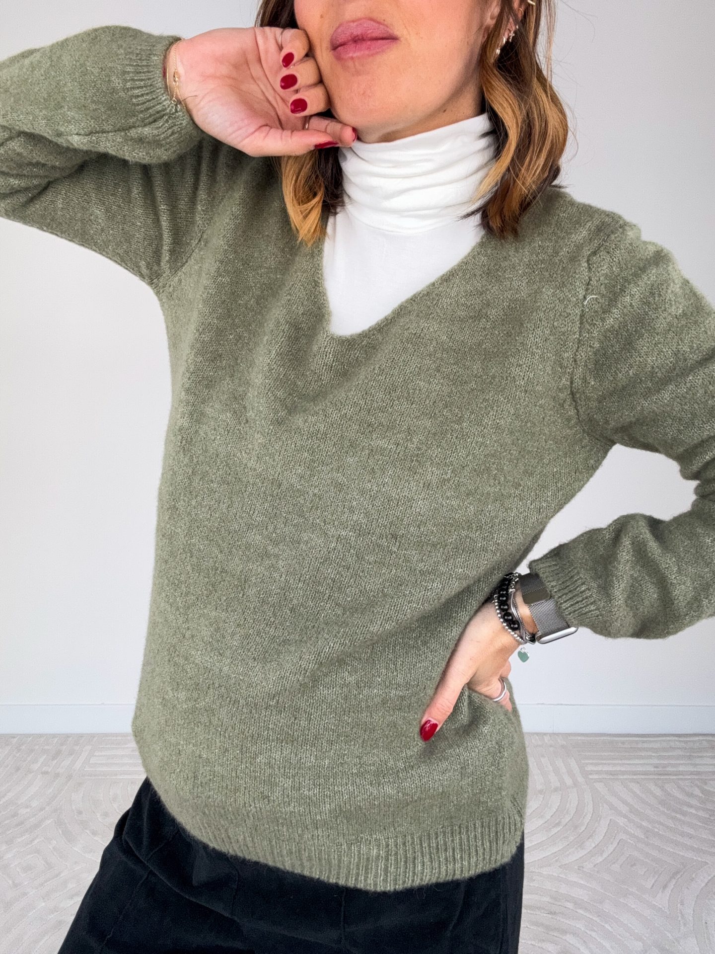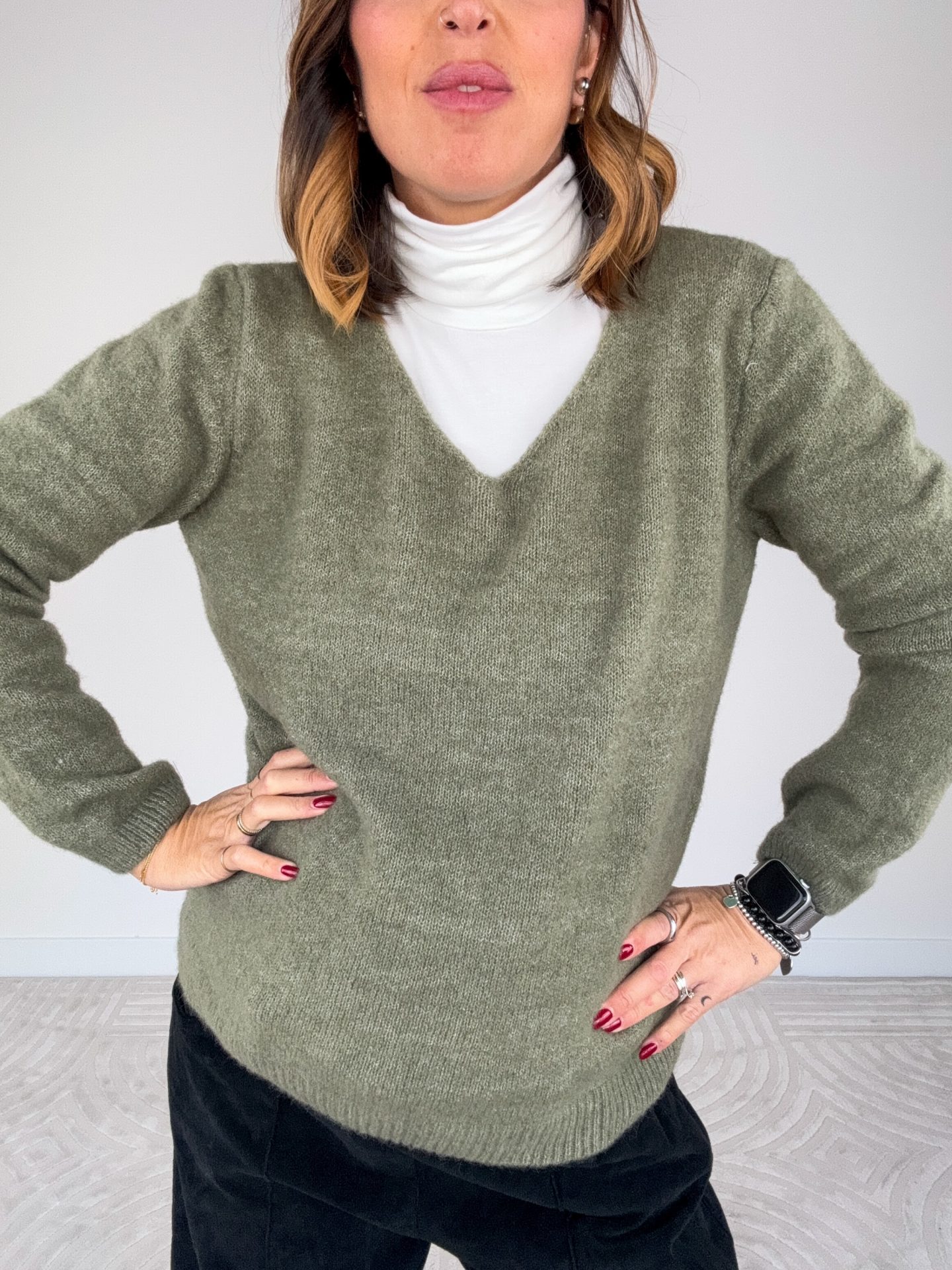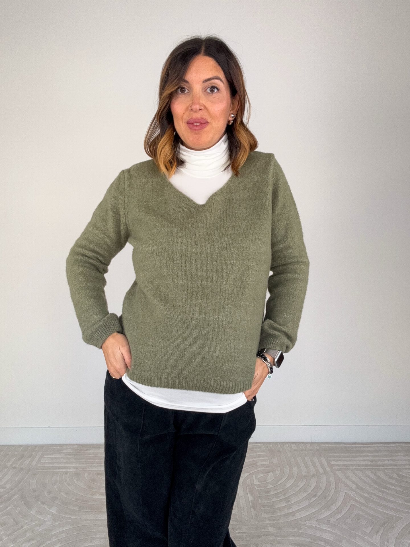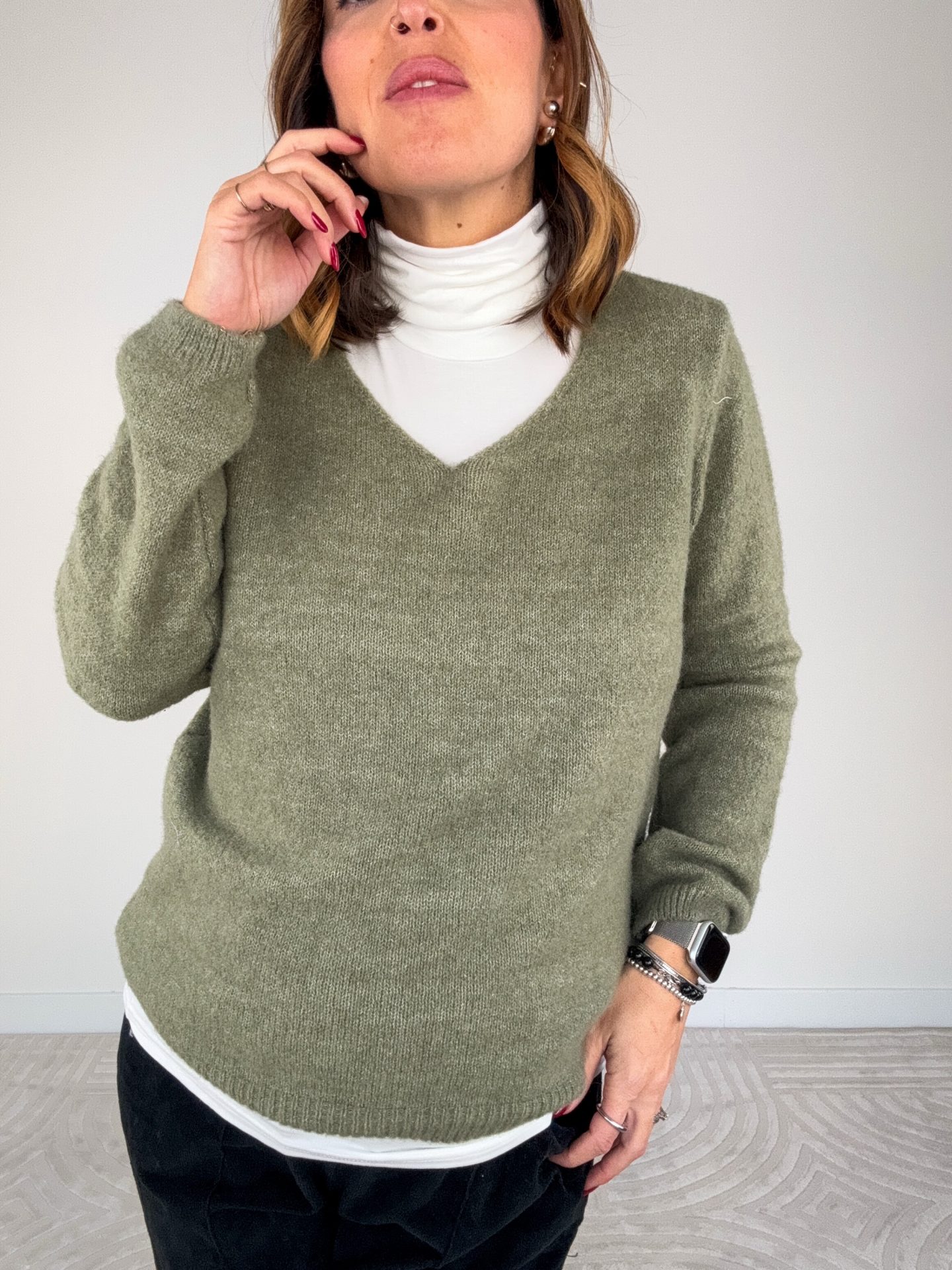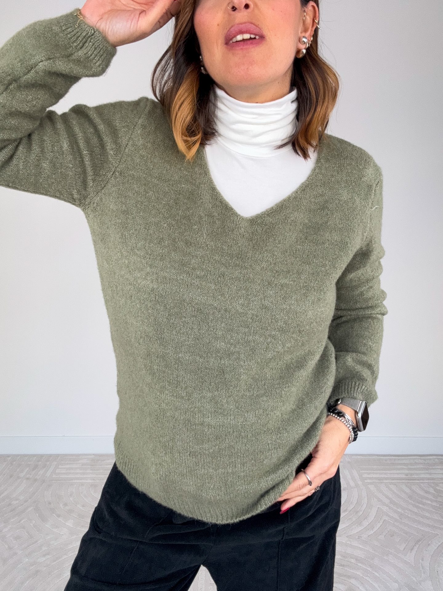 - Pull misto lana scollo a V.