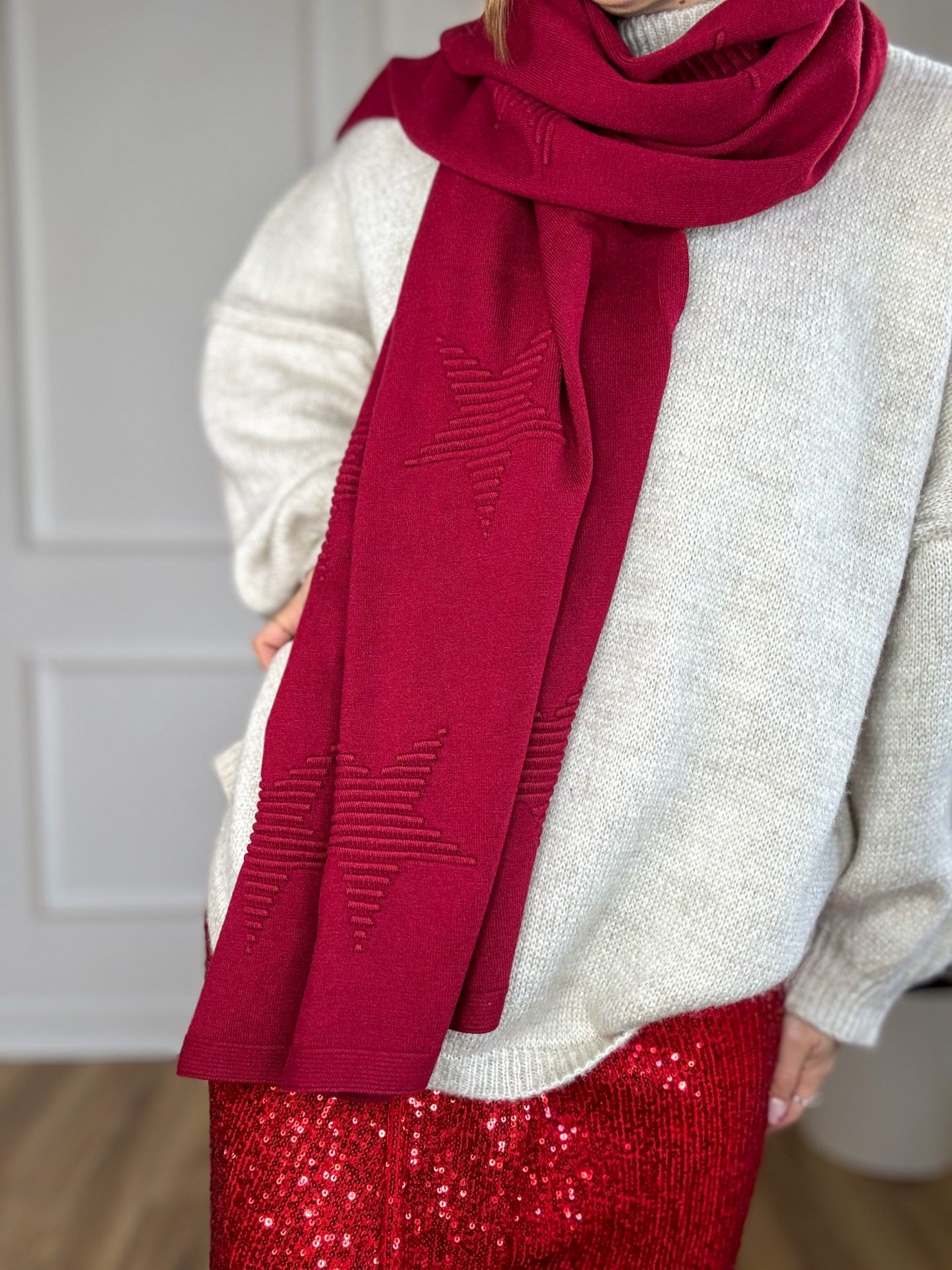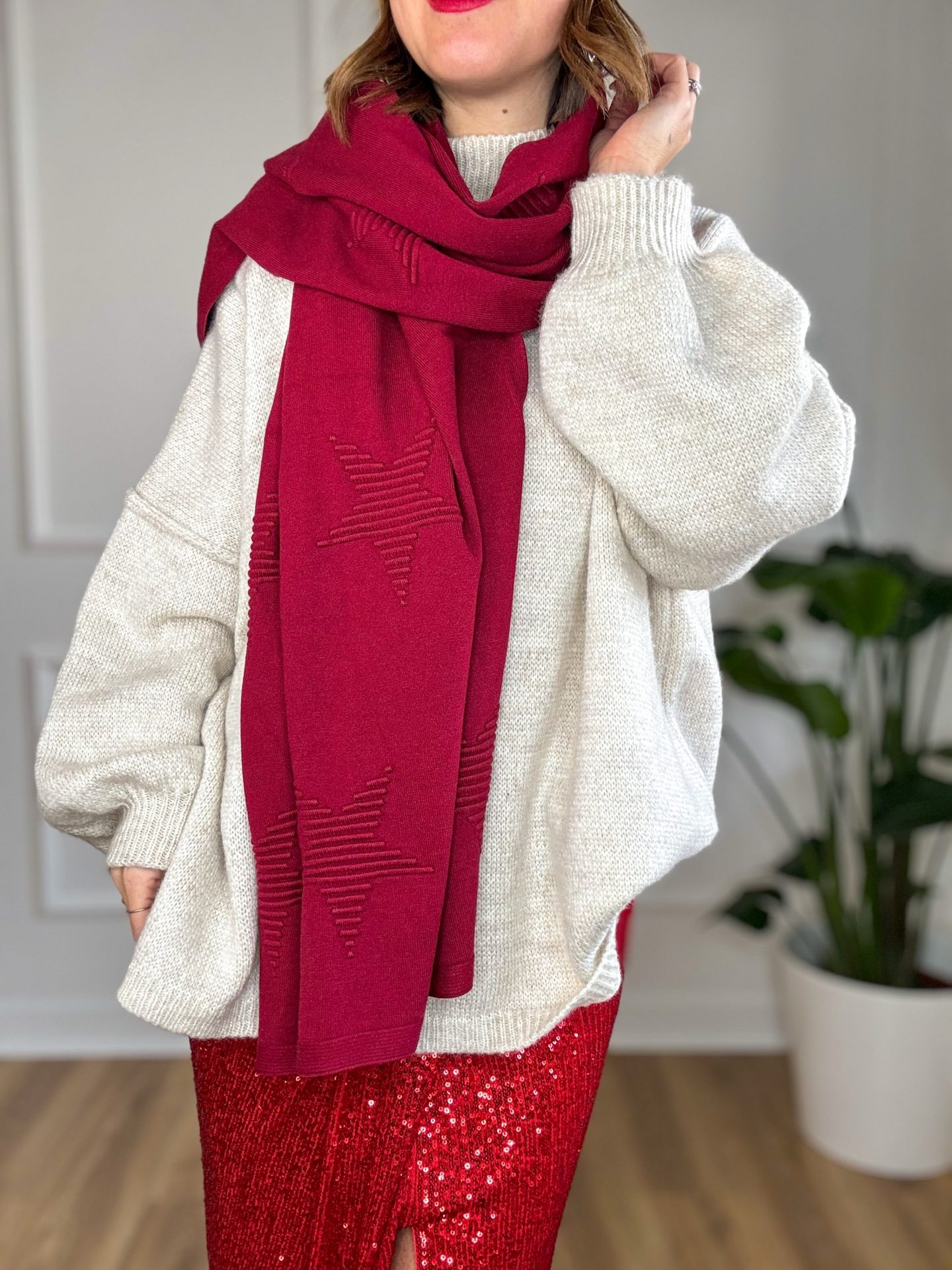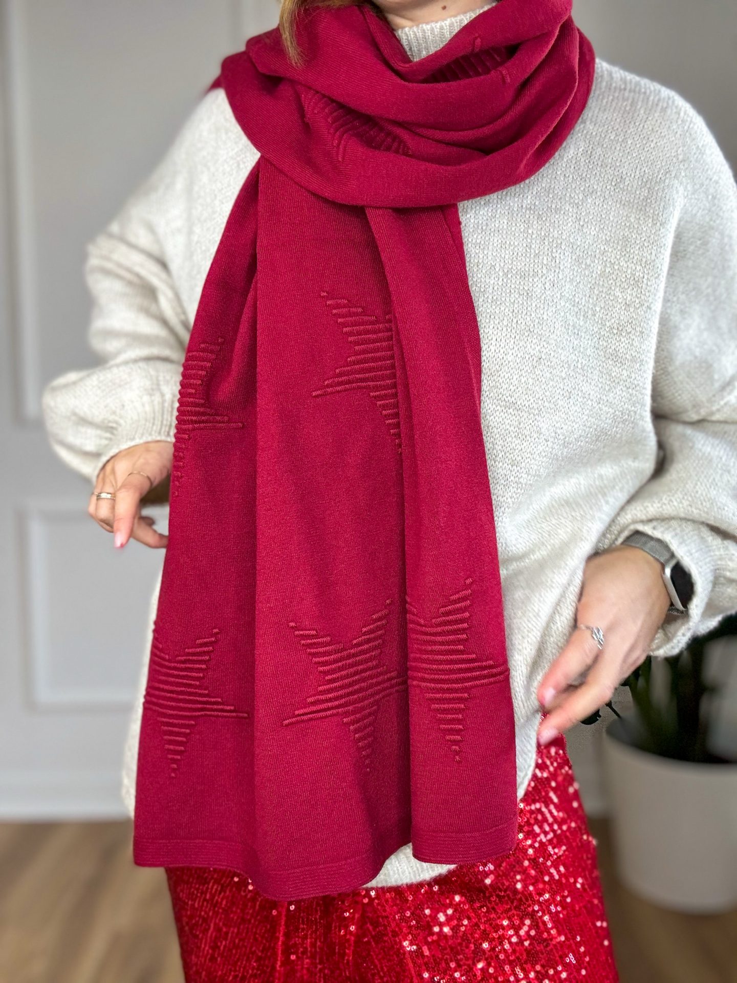 - Sciarpa a tinta unita con applicazione di stelle in rilievo.