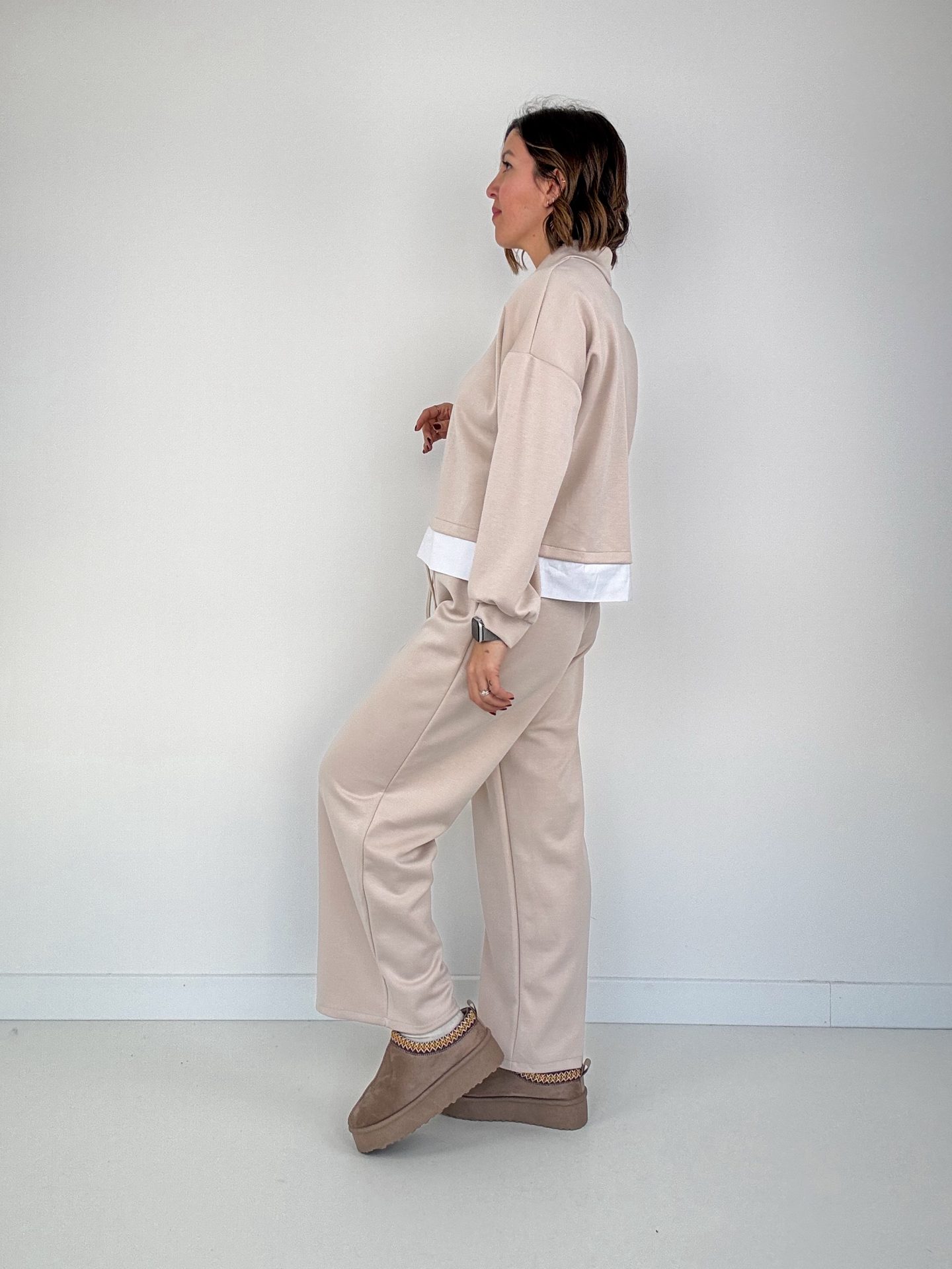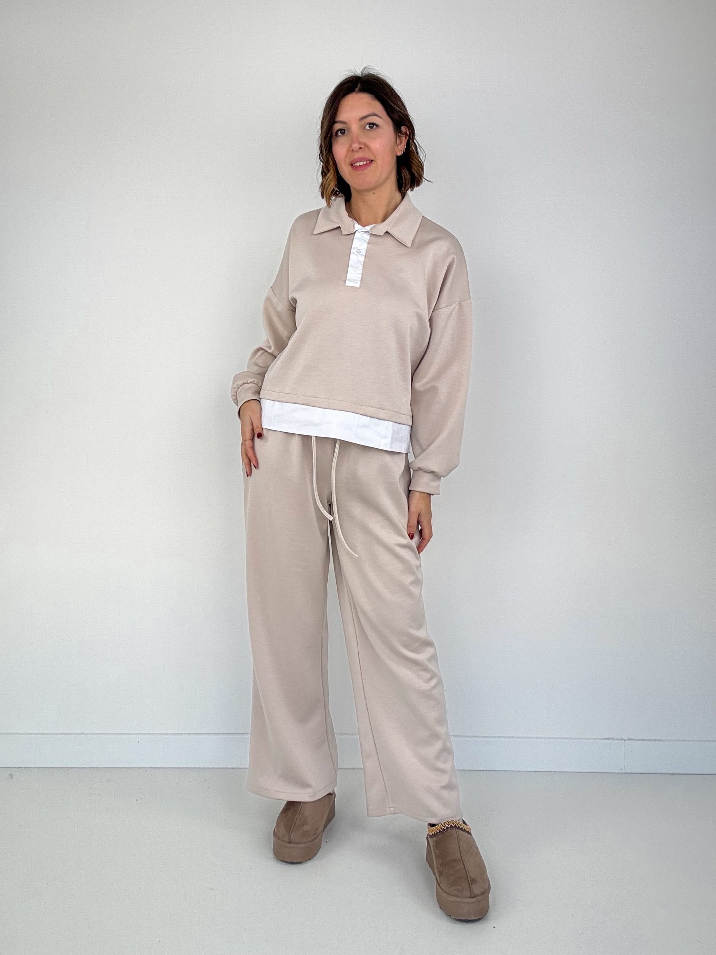 - Set composto da felpa modello scatoletta e panta palazzo.