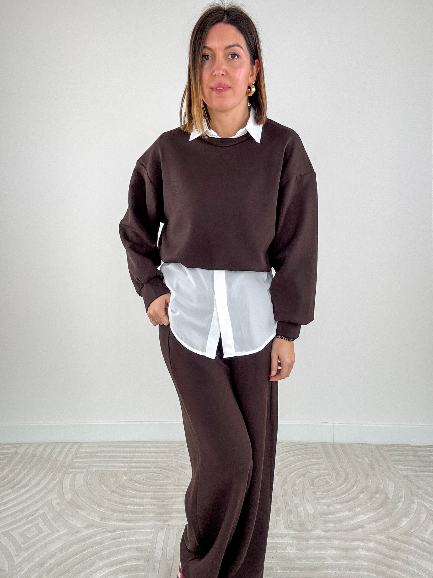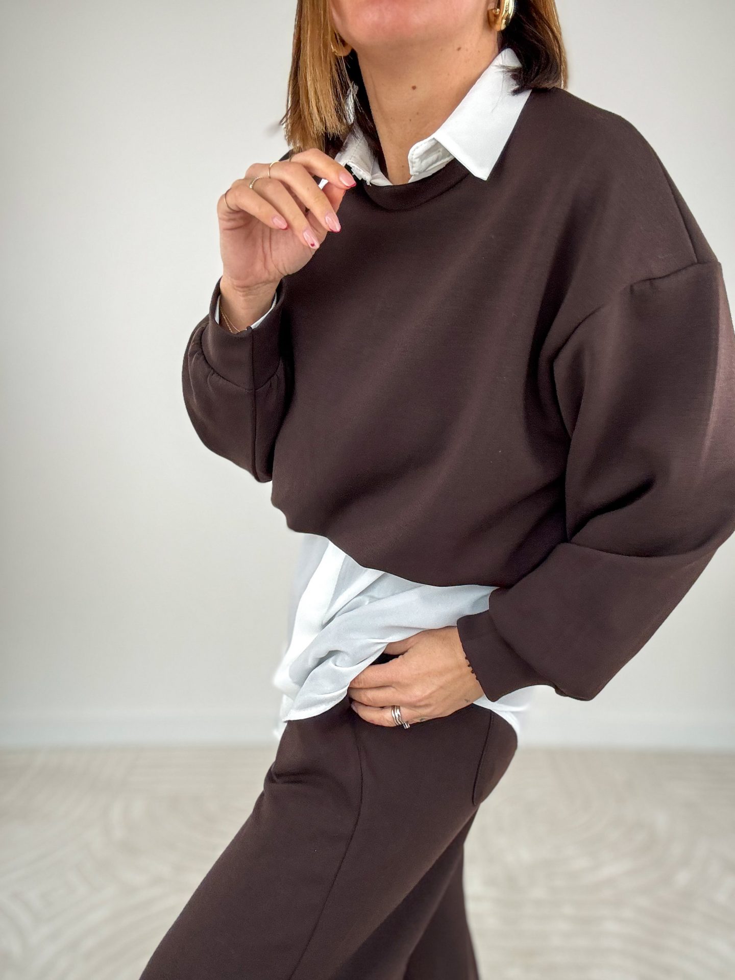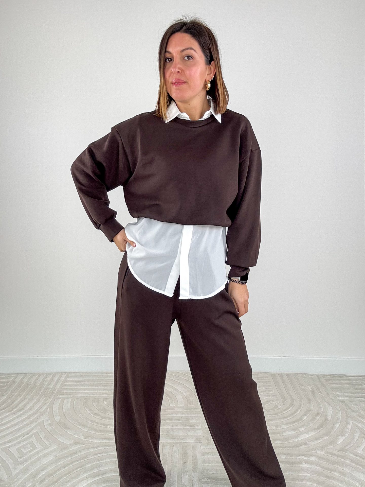- Set in tuta over, composto da felpa crop e panta palazzo.