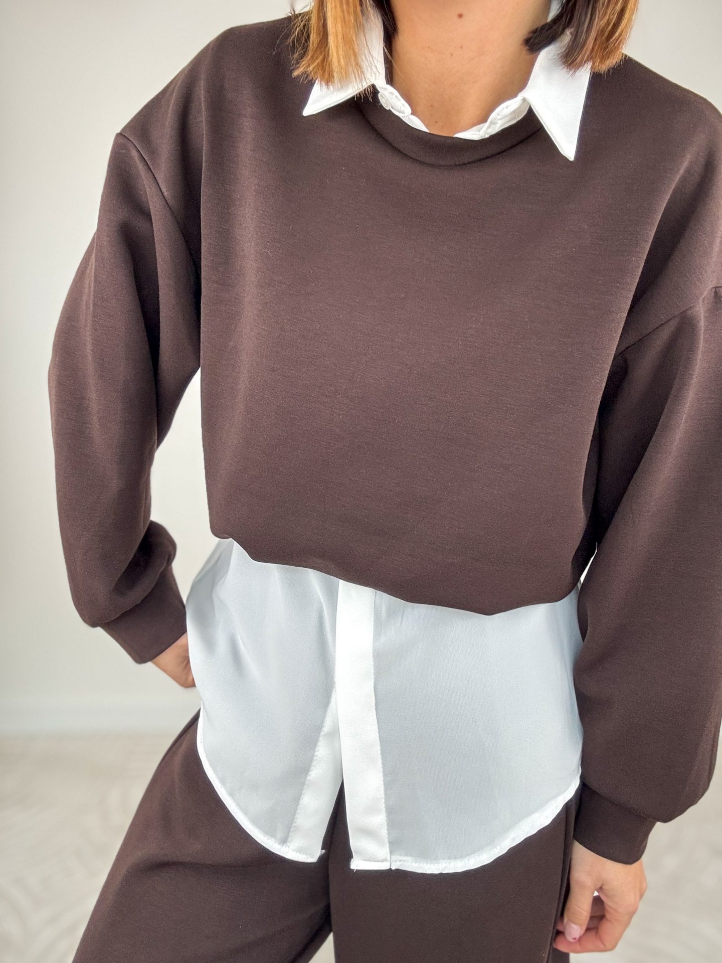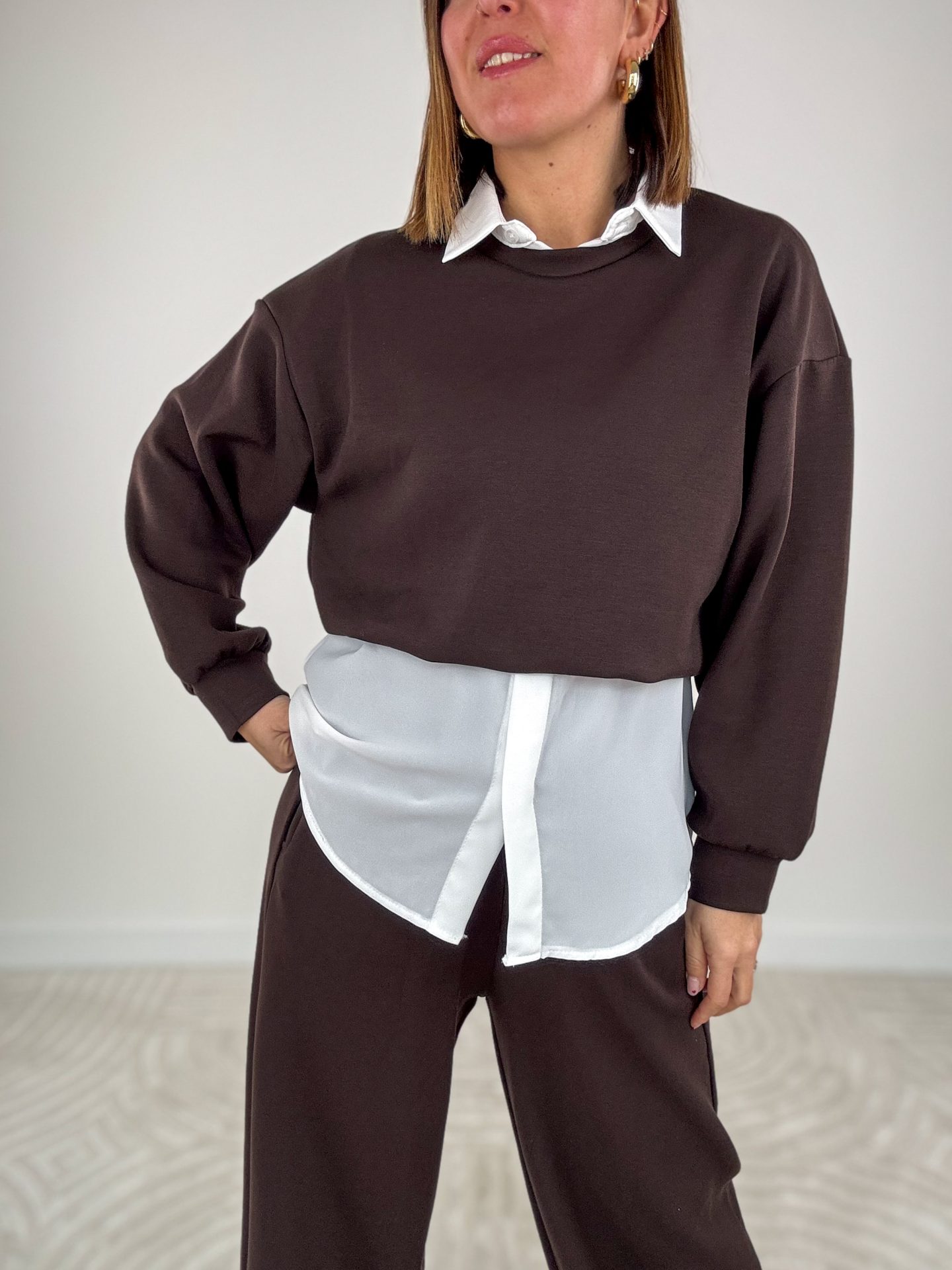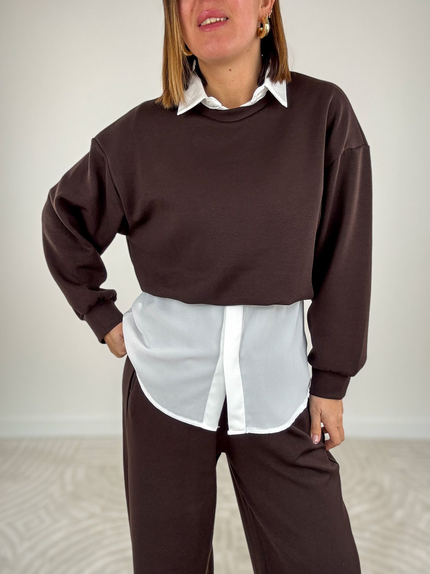 - Set in tuta over, composto da felpa crop e panta palazzo.