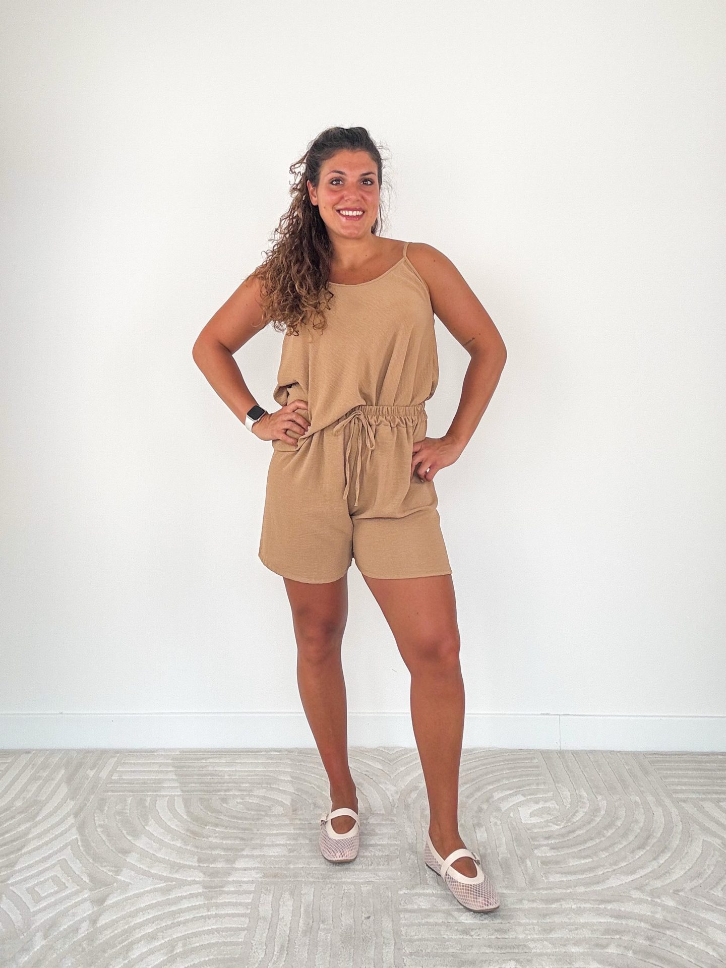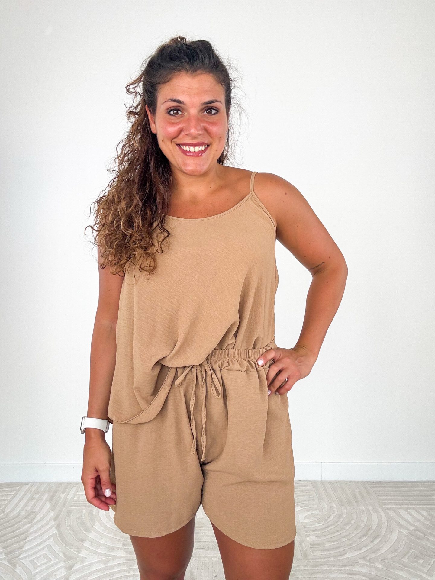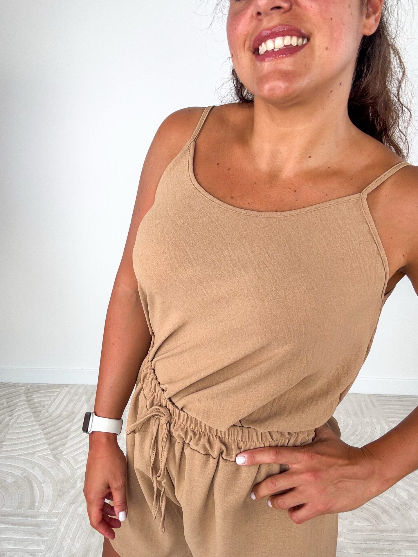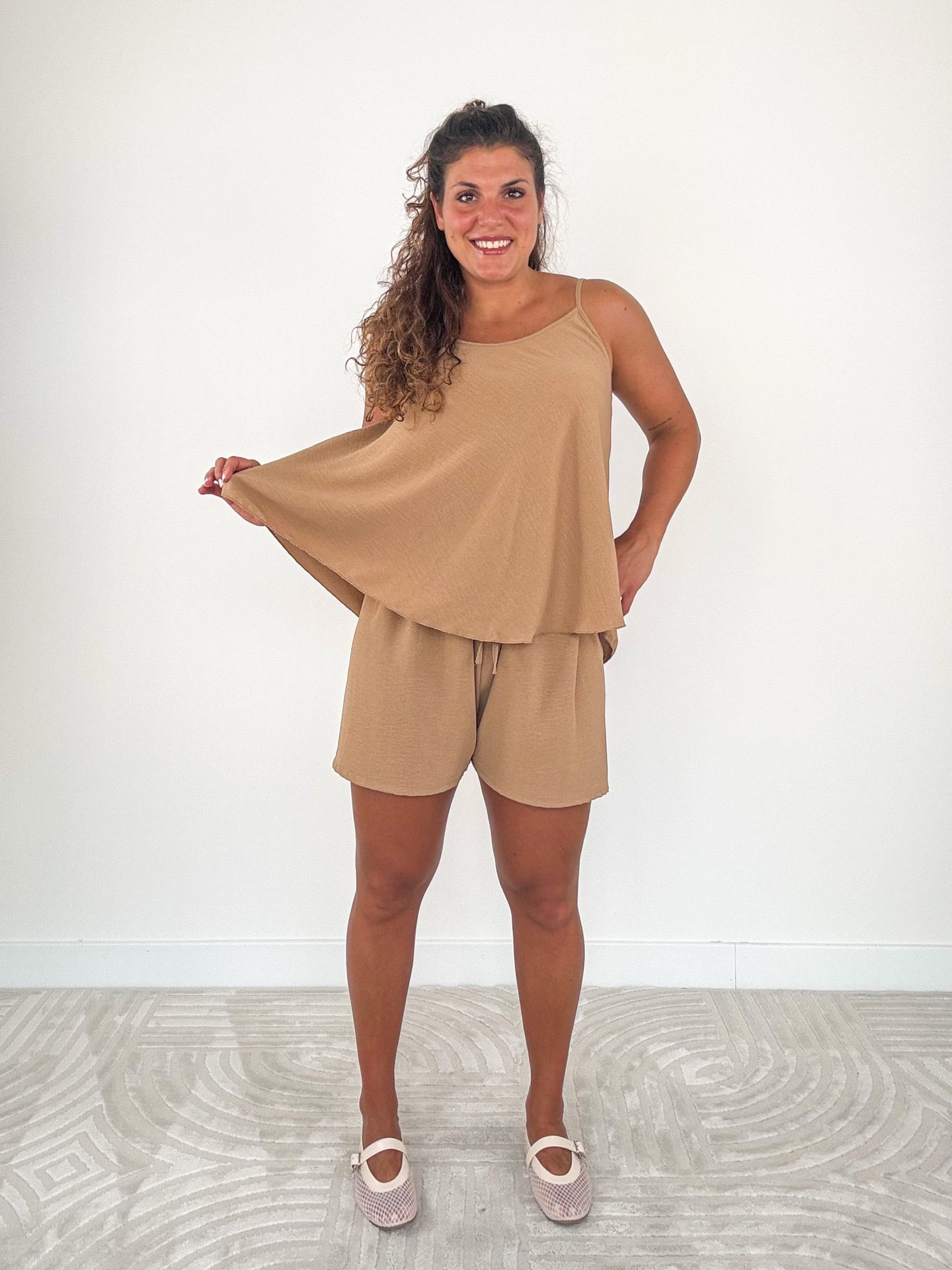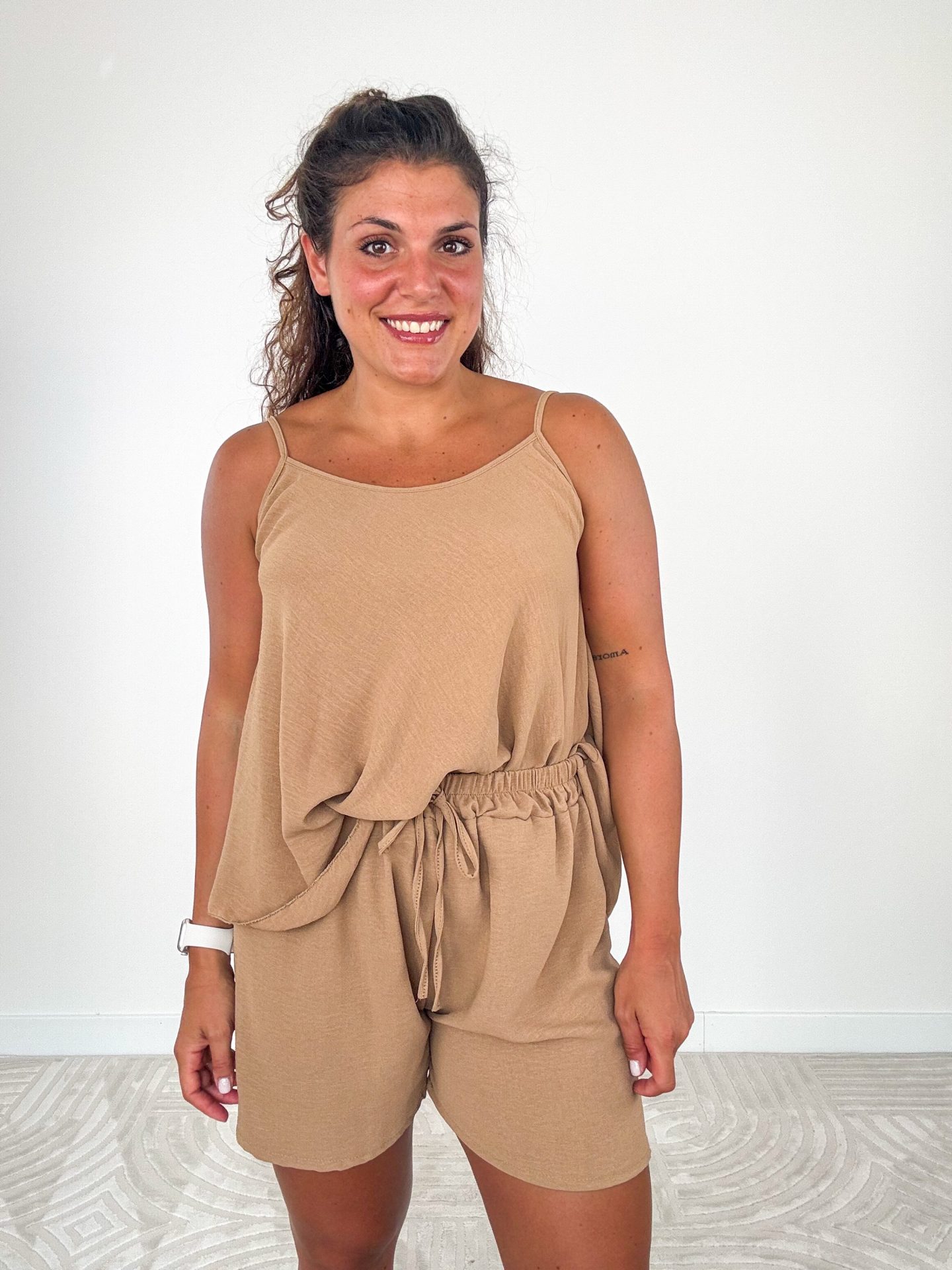- Set composto top con bretelline e shorts con elastico fiocchetto in vita.