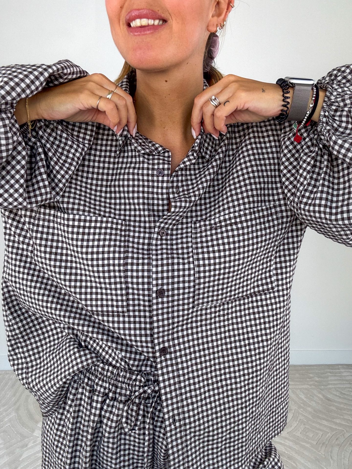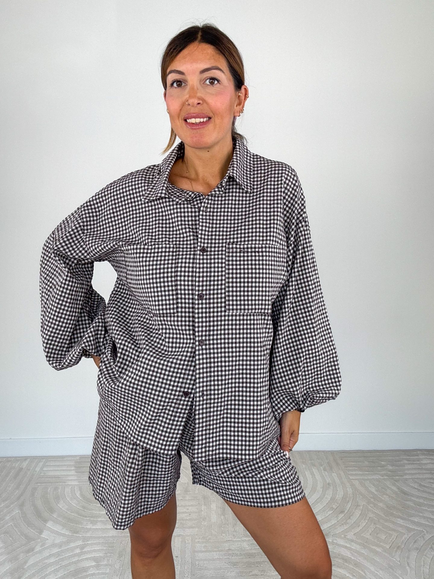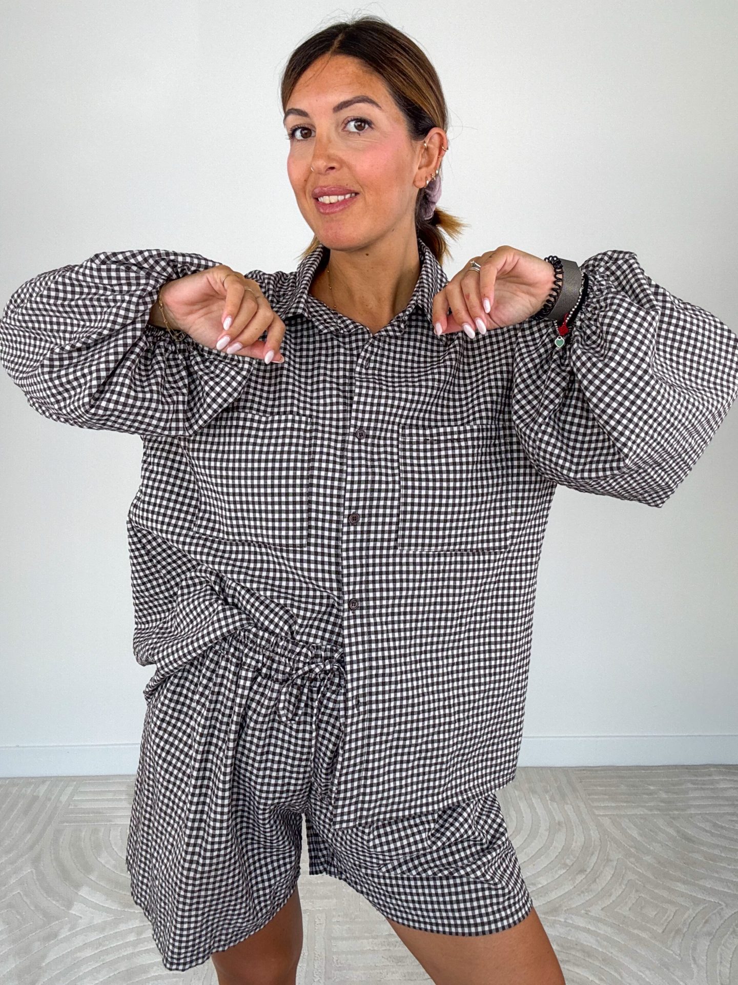 - Composto da camicia e shorts con elastico e coulisse in vita.