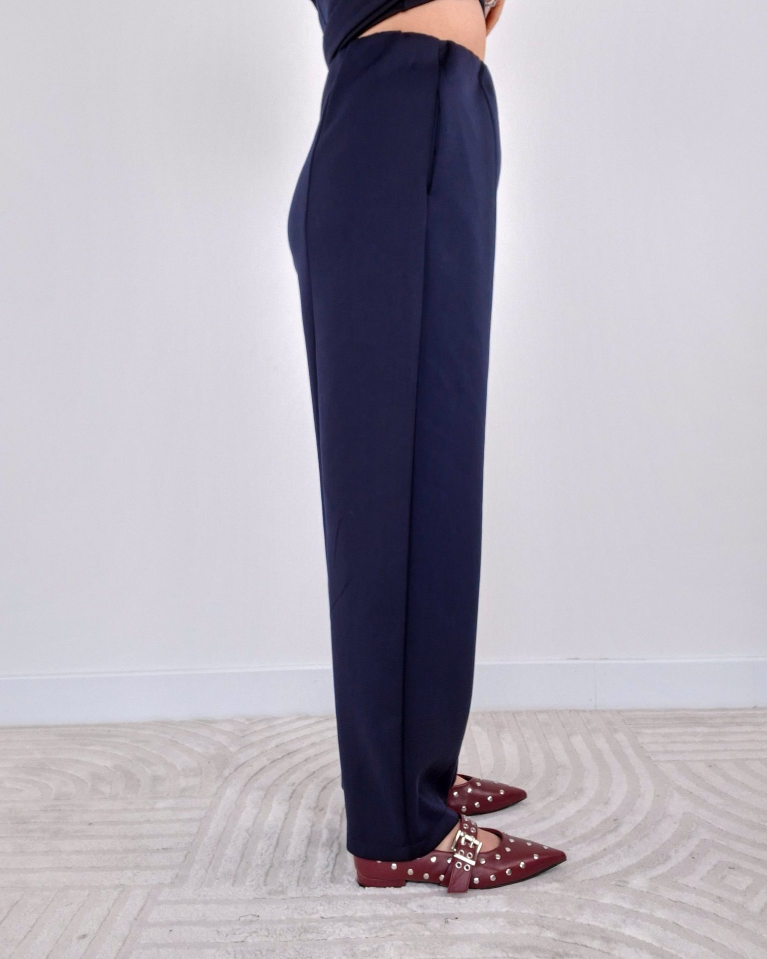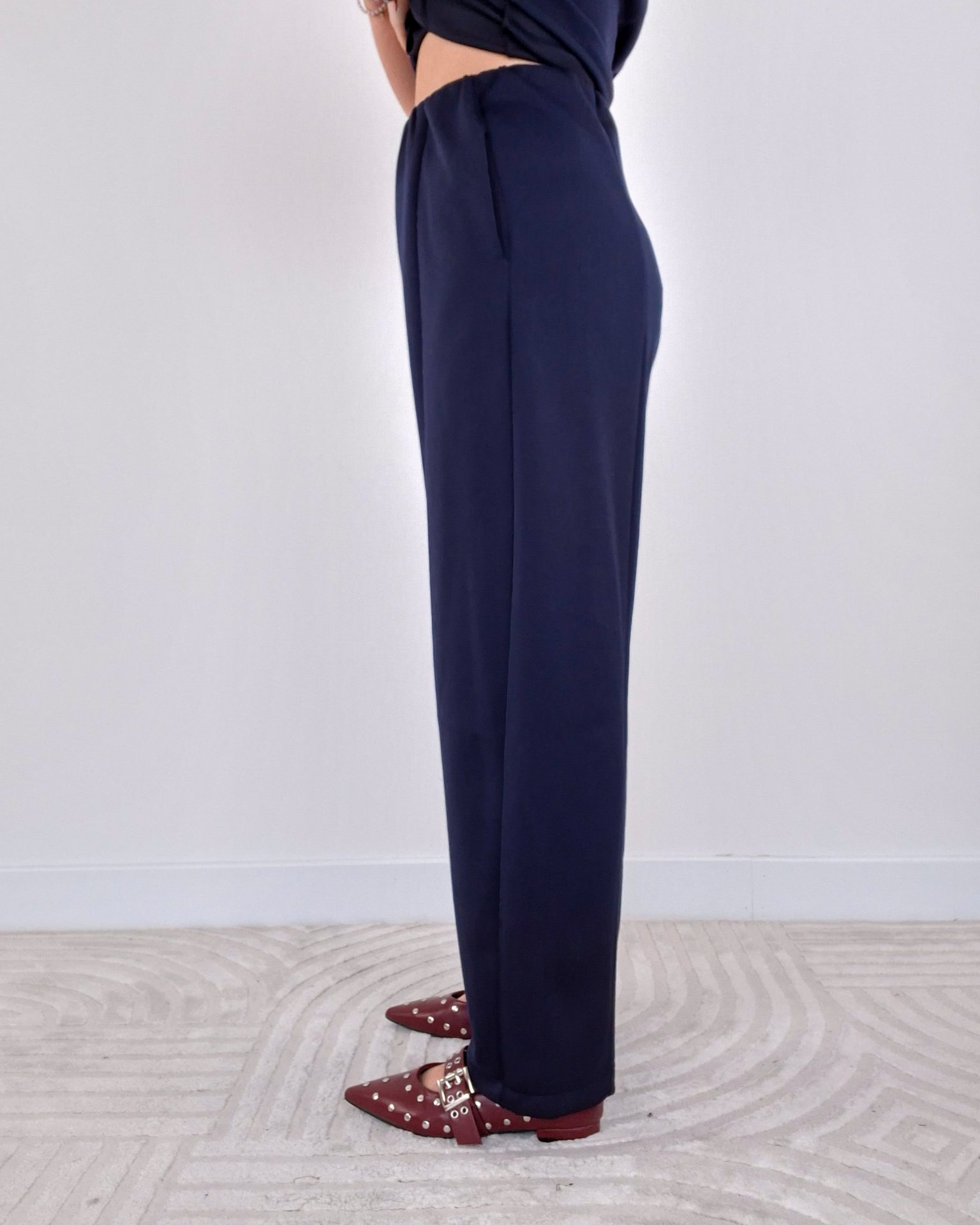 - Pantalone con due tasche a soffietto laterali.