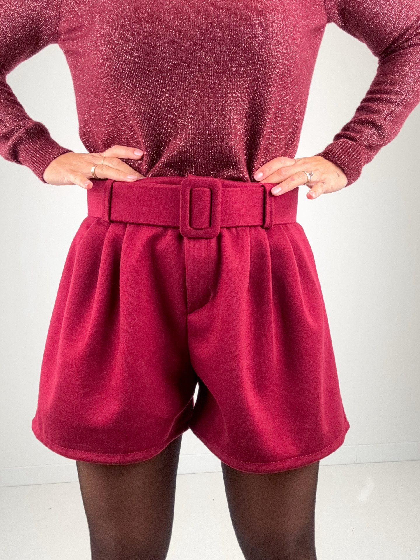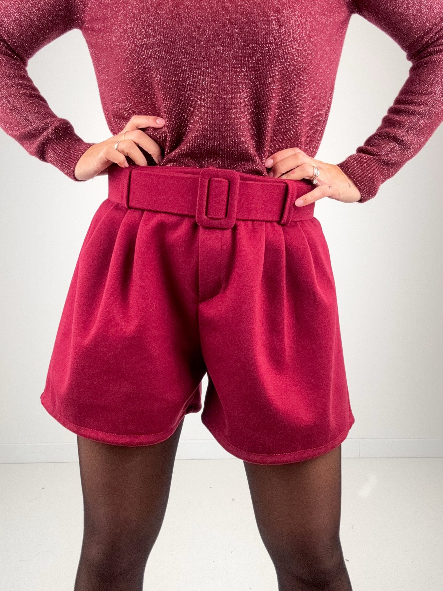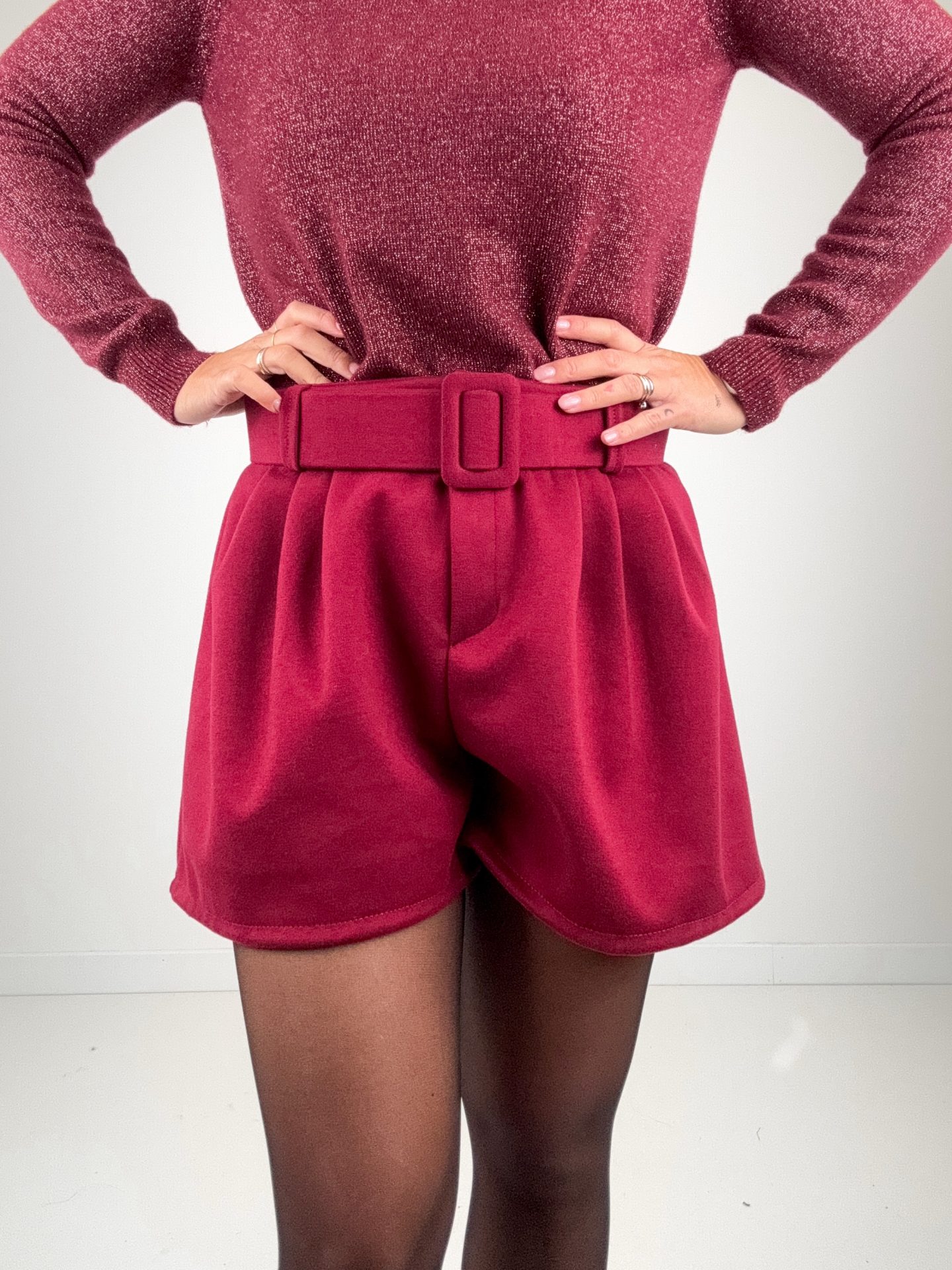 - Shorts in panno con cintura.