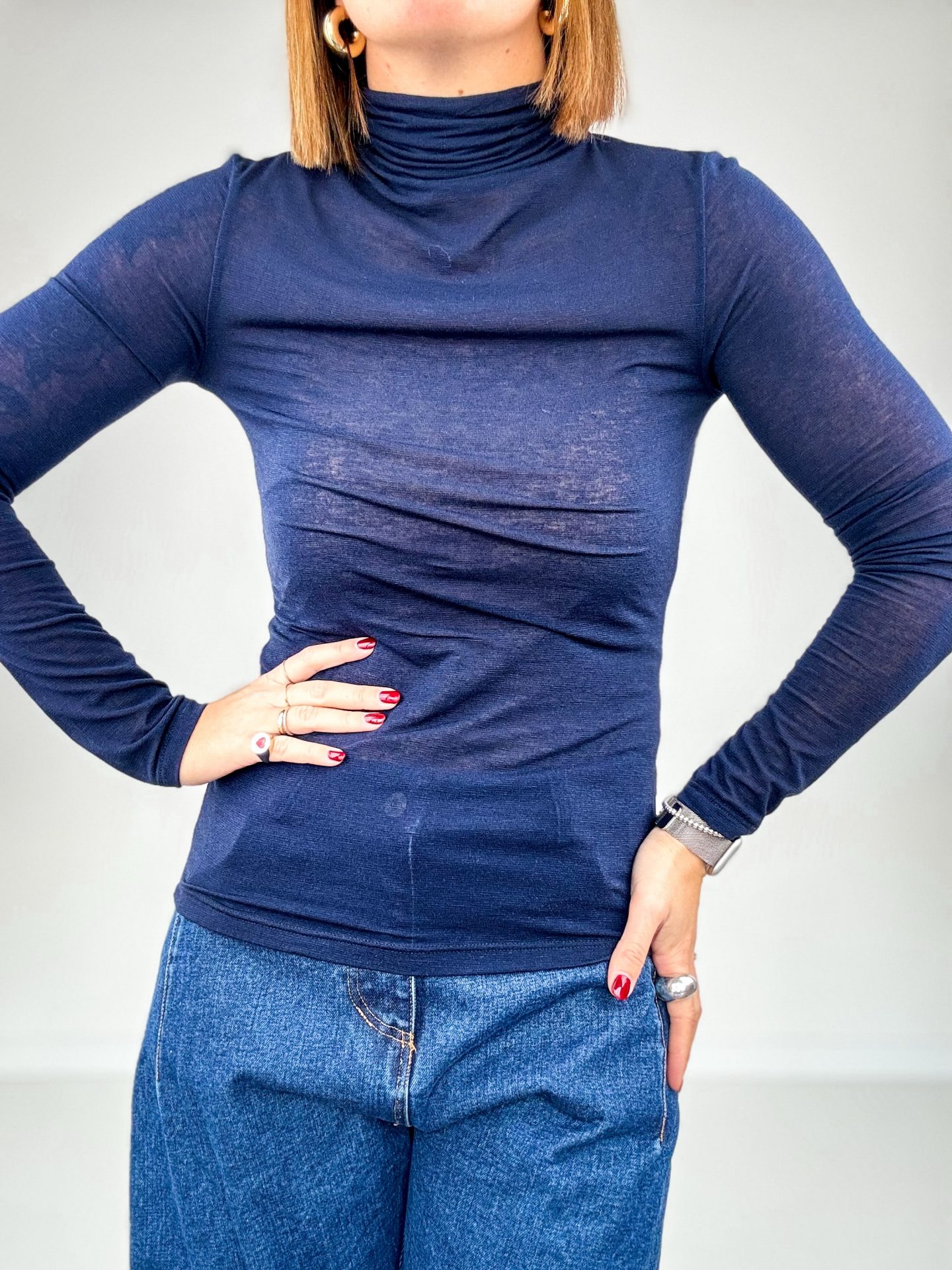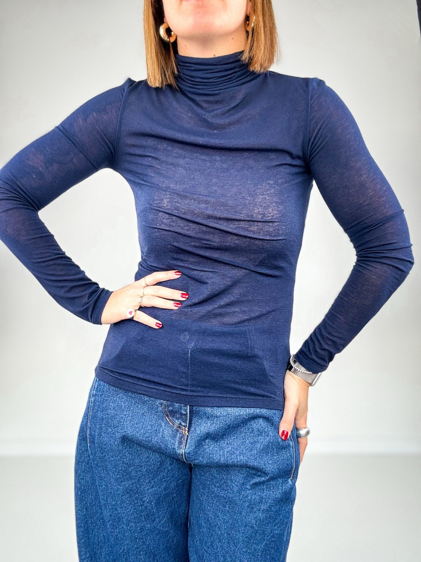 - Maglia basica collo alto con manica lunga in misto Cashmere.