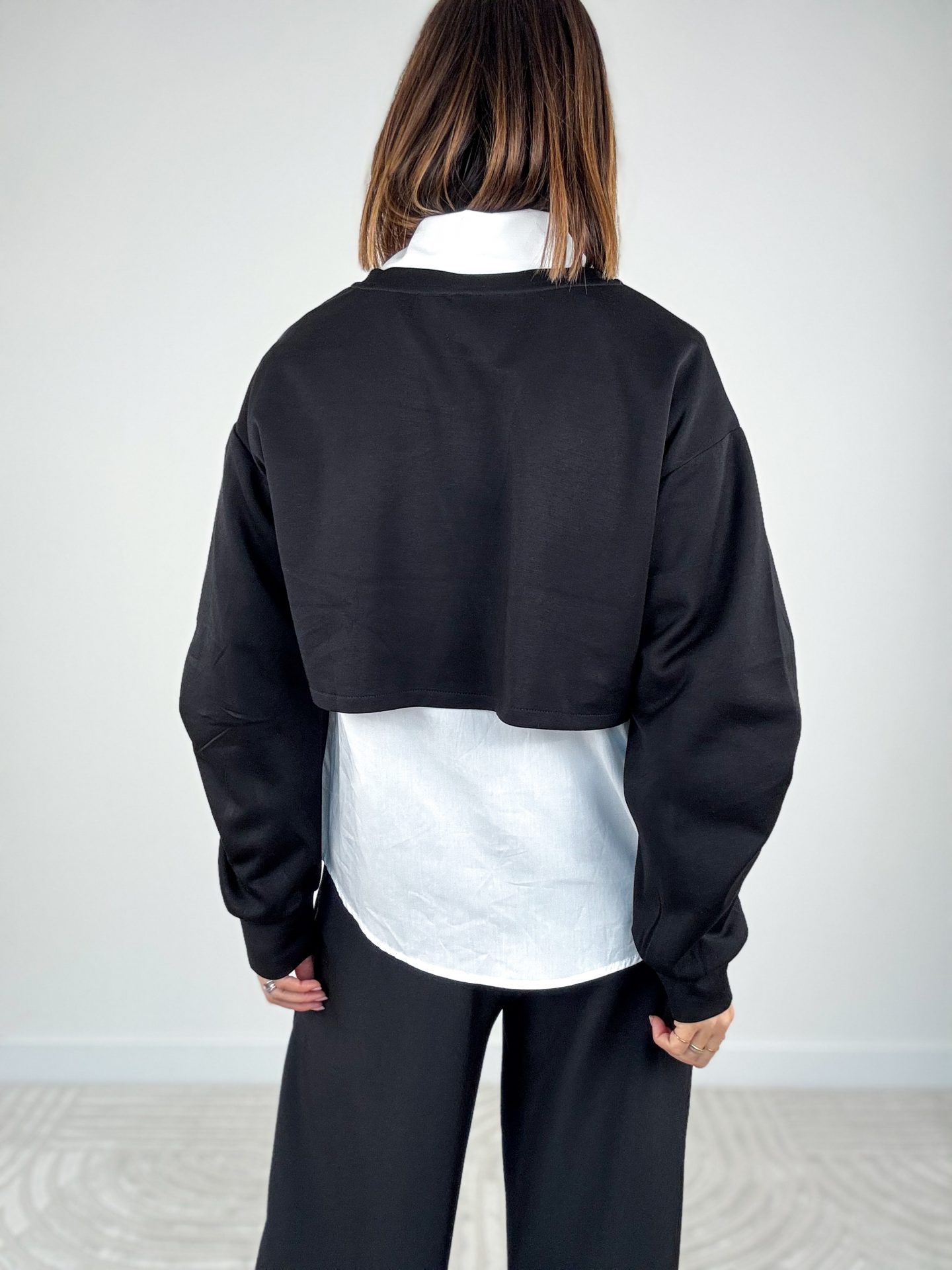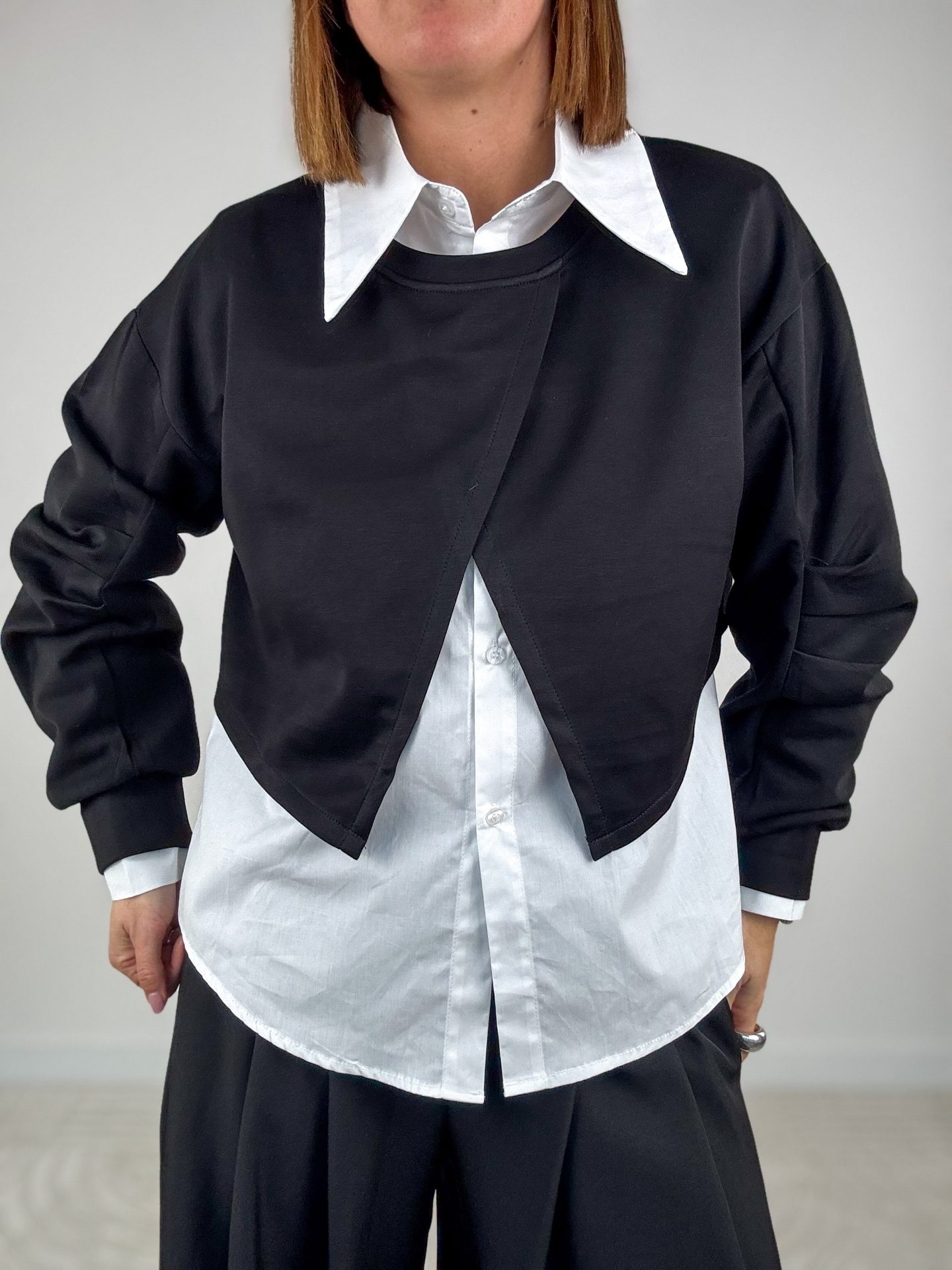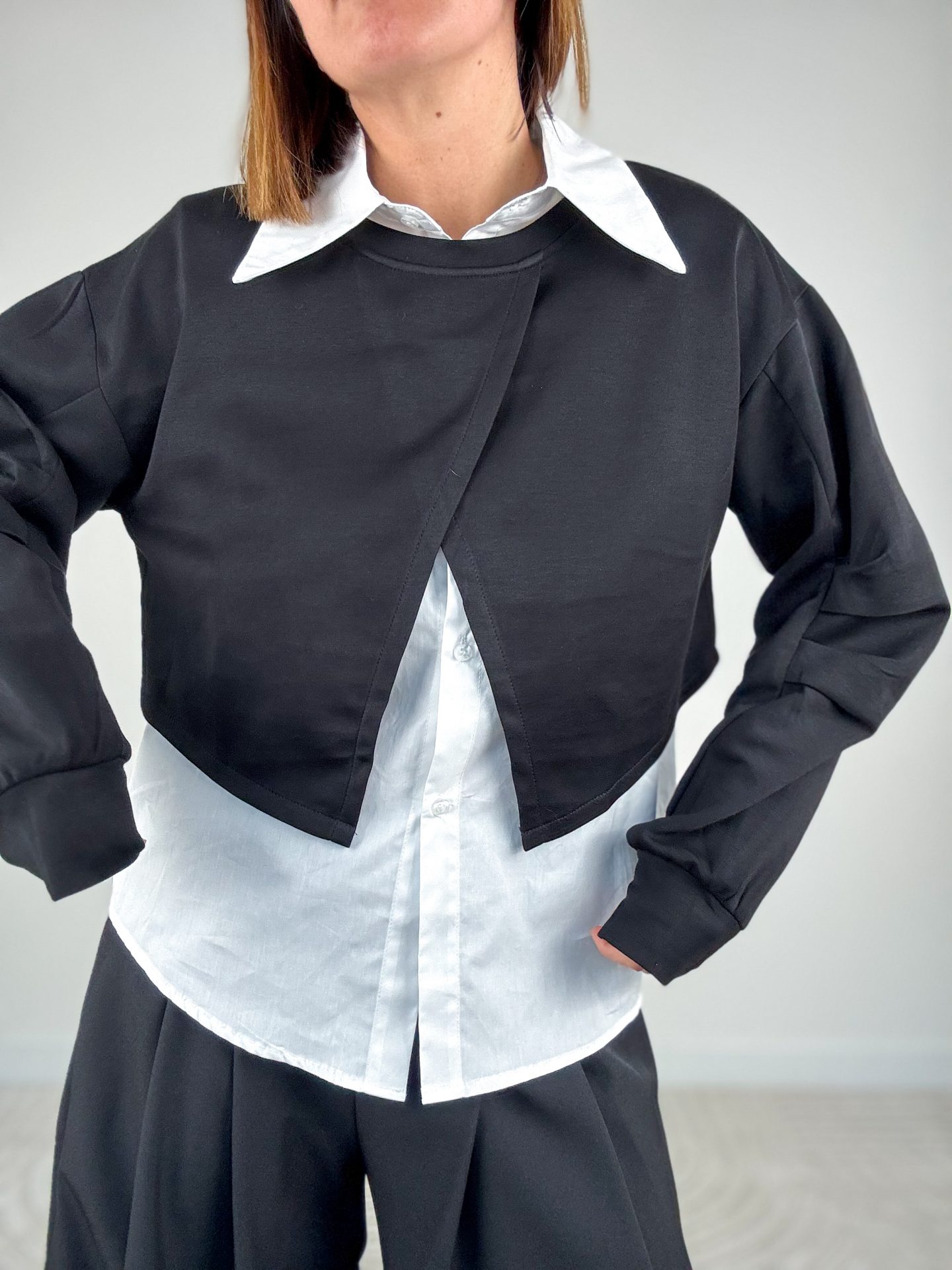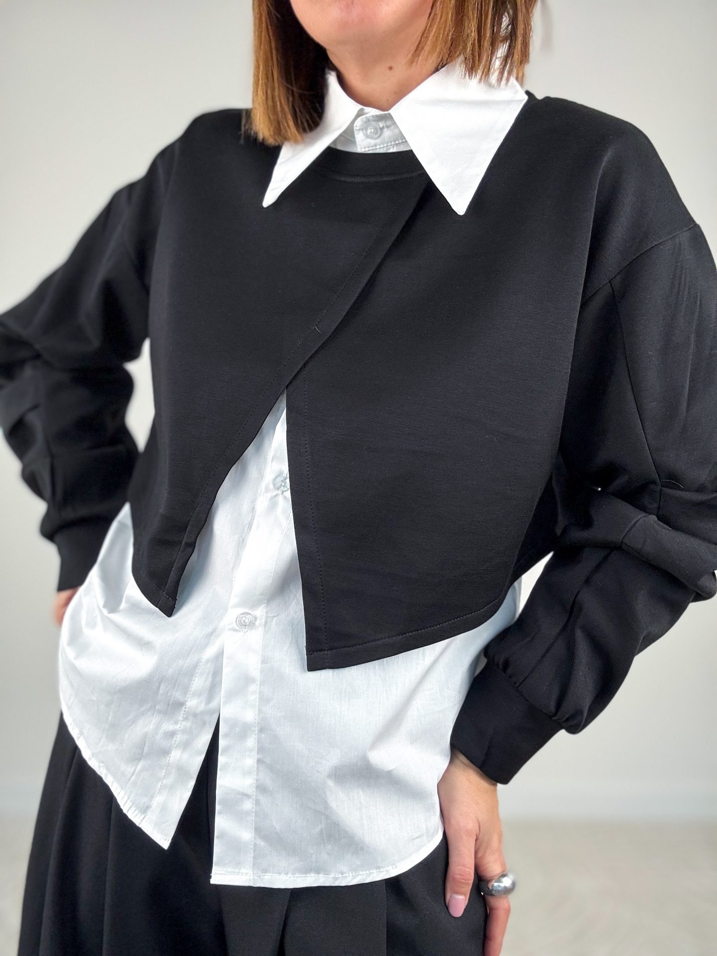 • Vestibilità over, camicia leggermente più lunga e arrotondata sul retro.