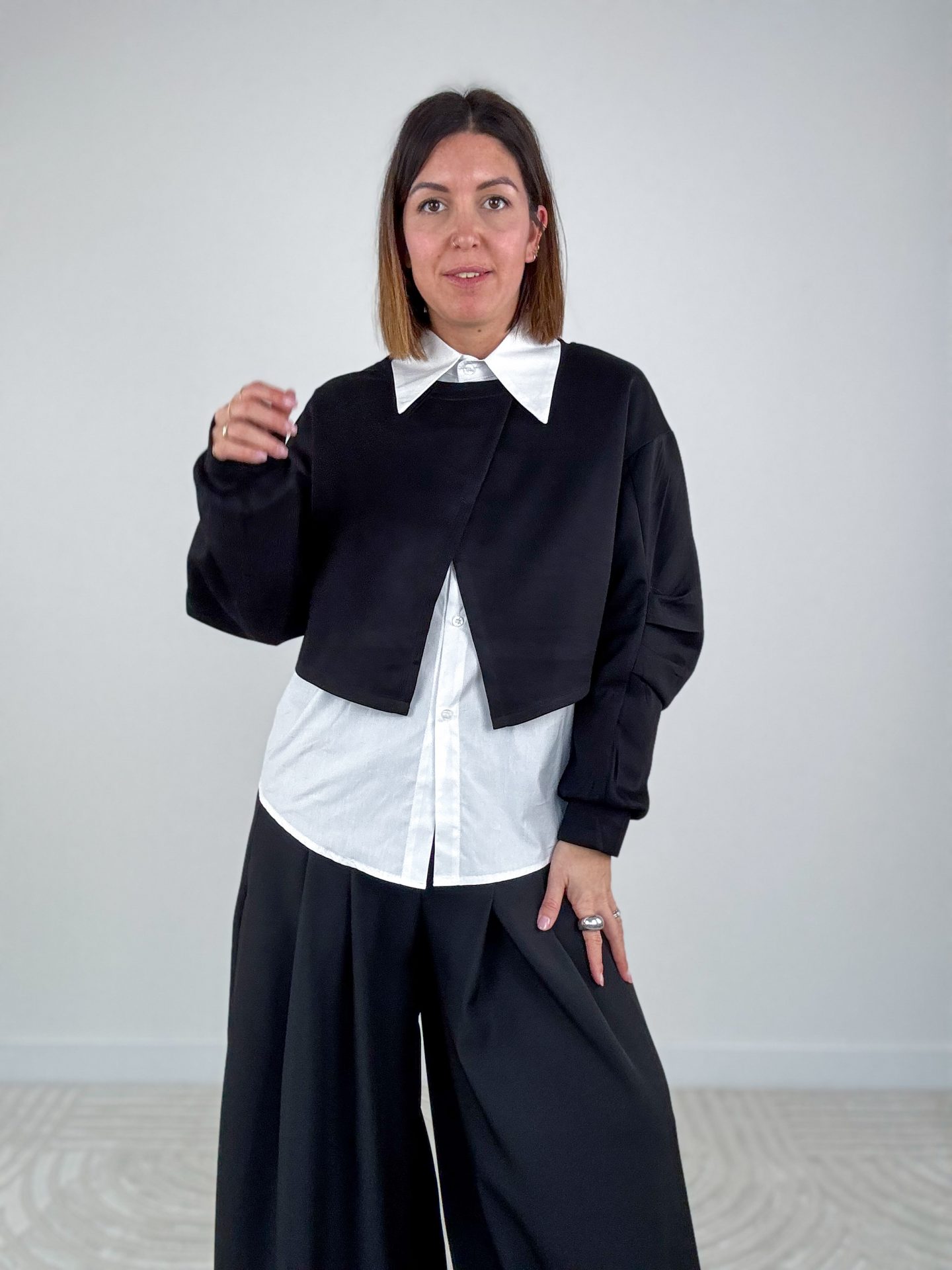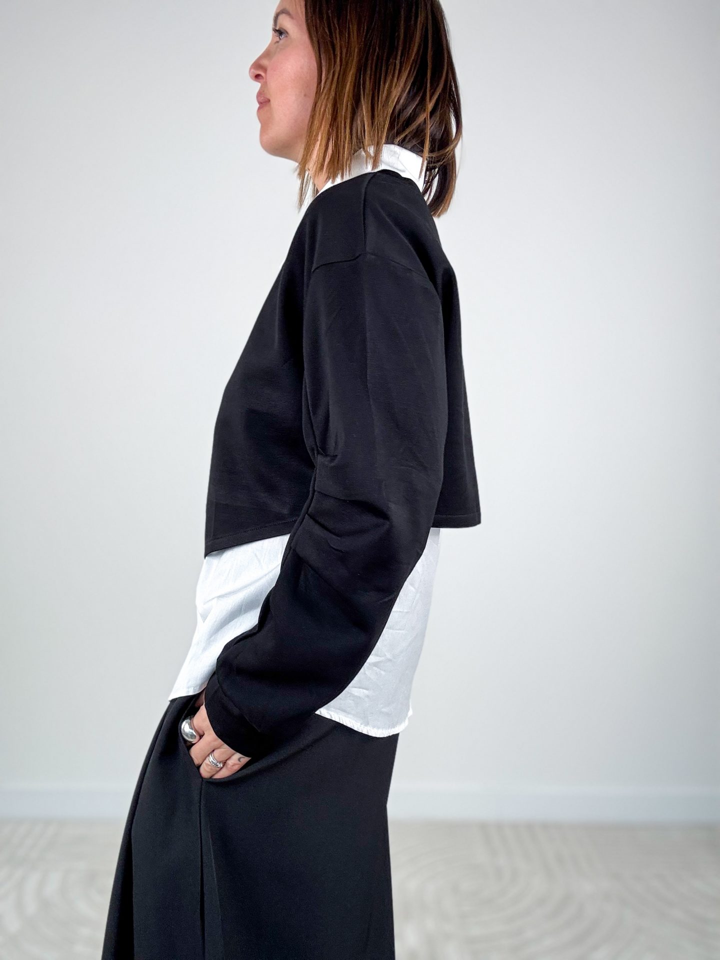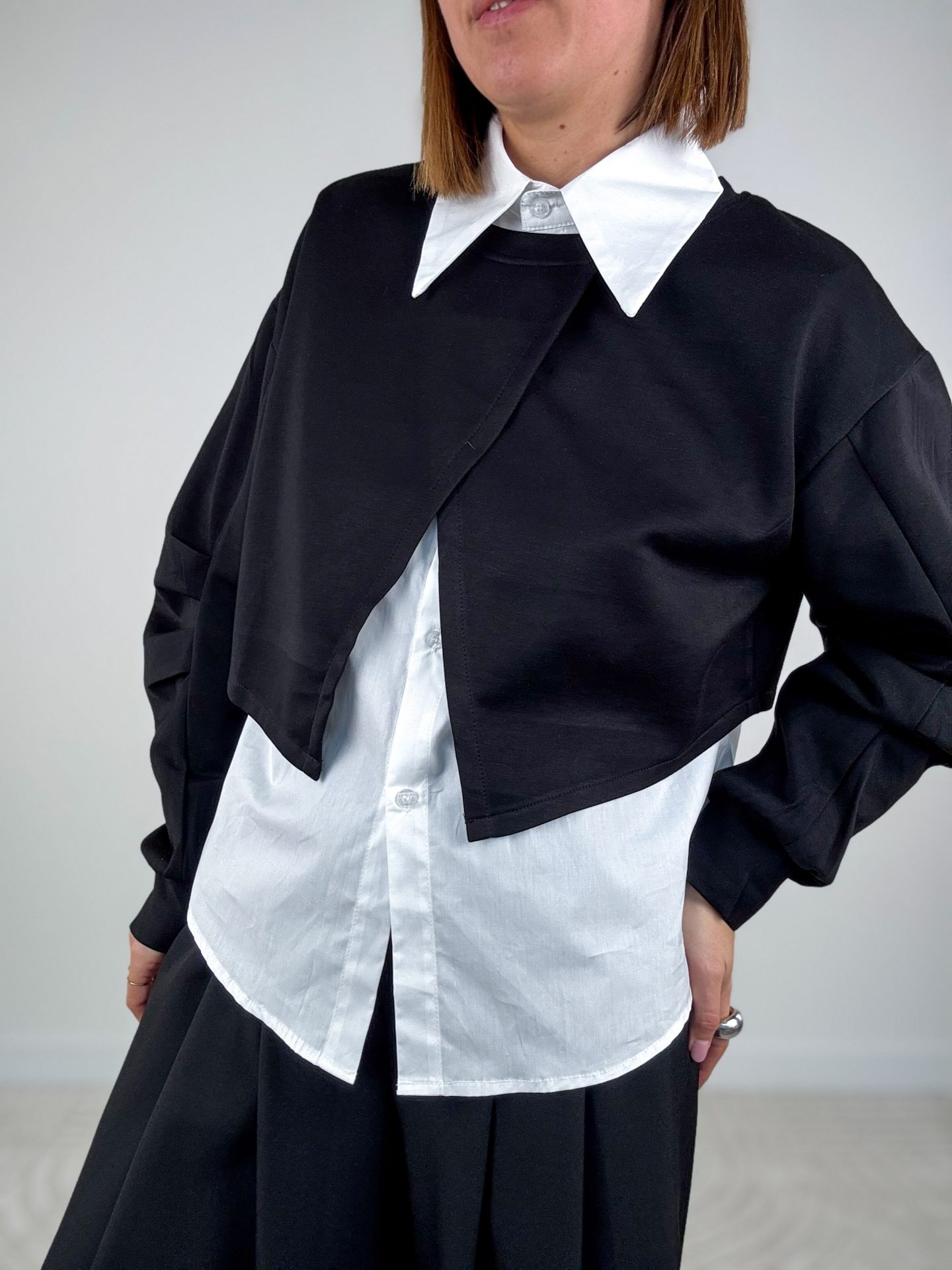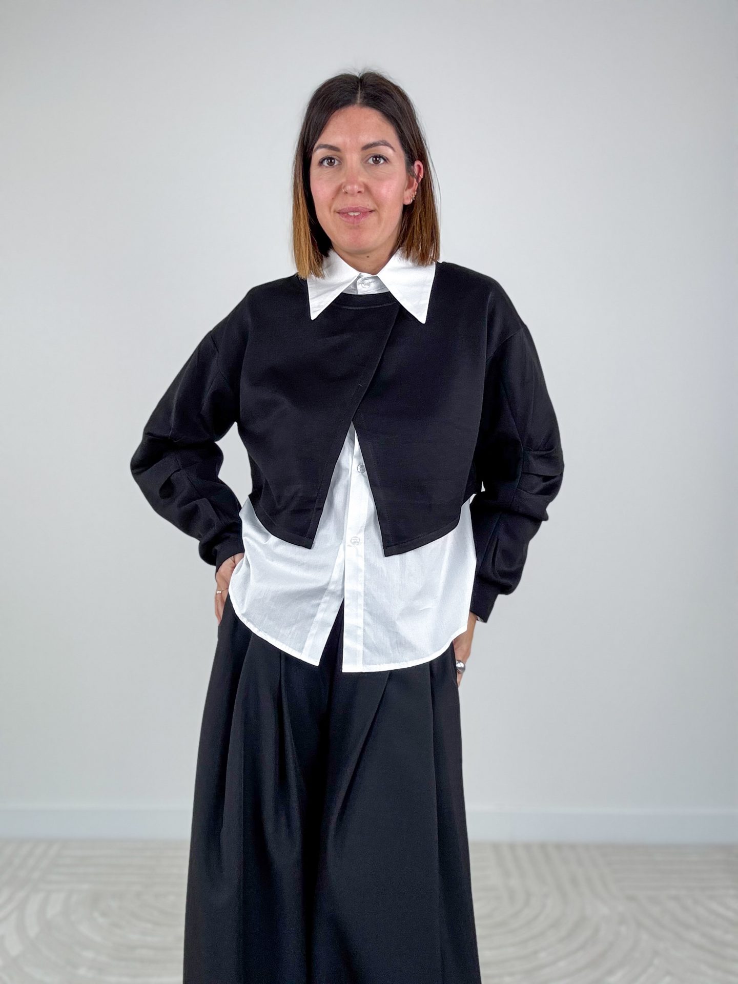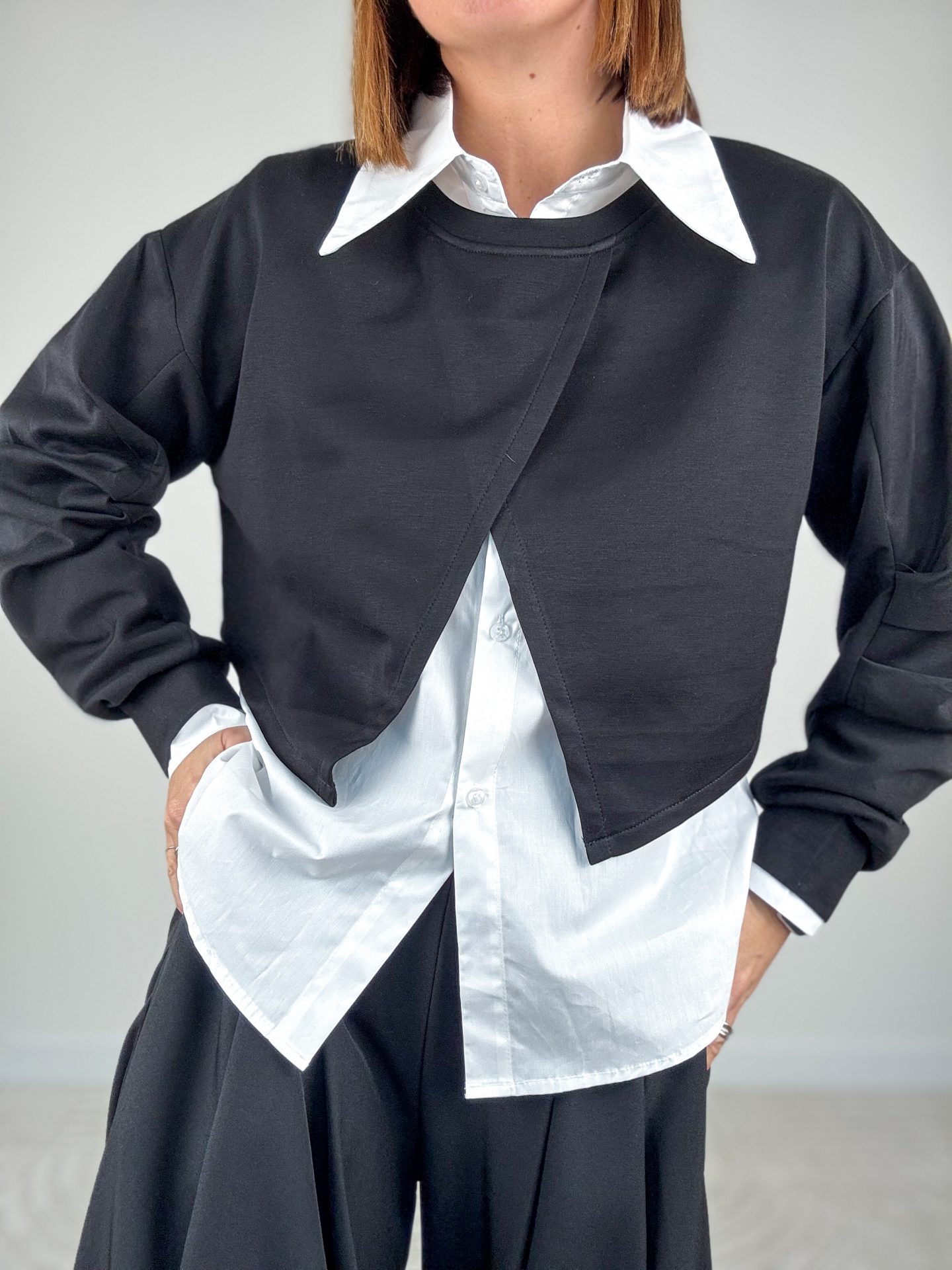 • Vestibilità over, camicia leggermente più lunga e arrotondata sul retro.