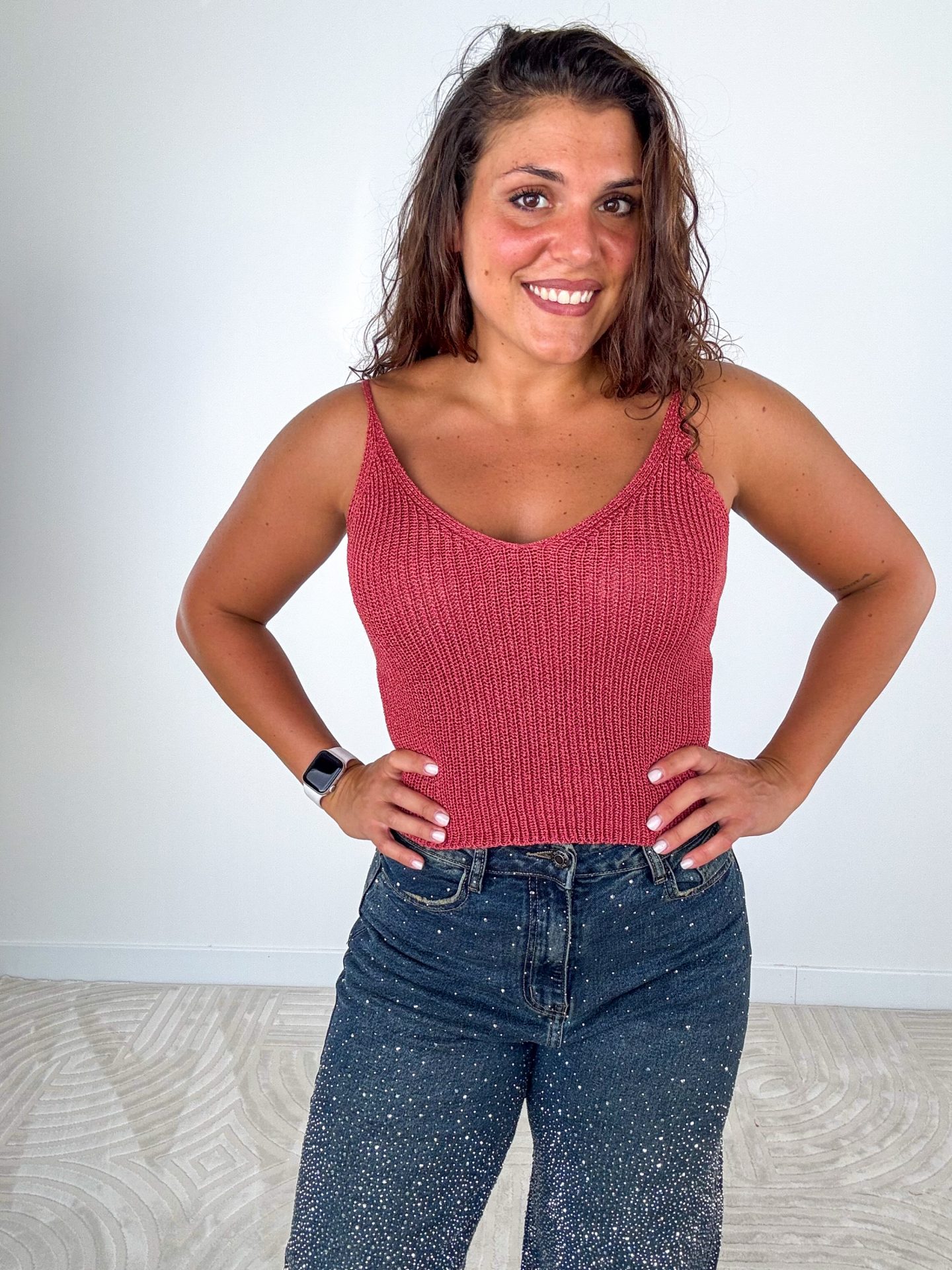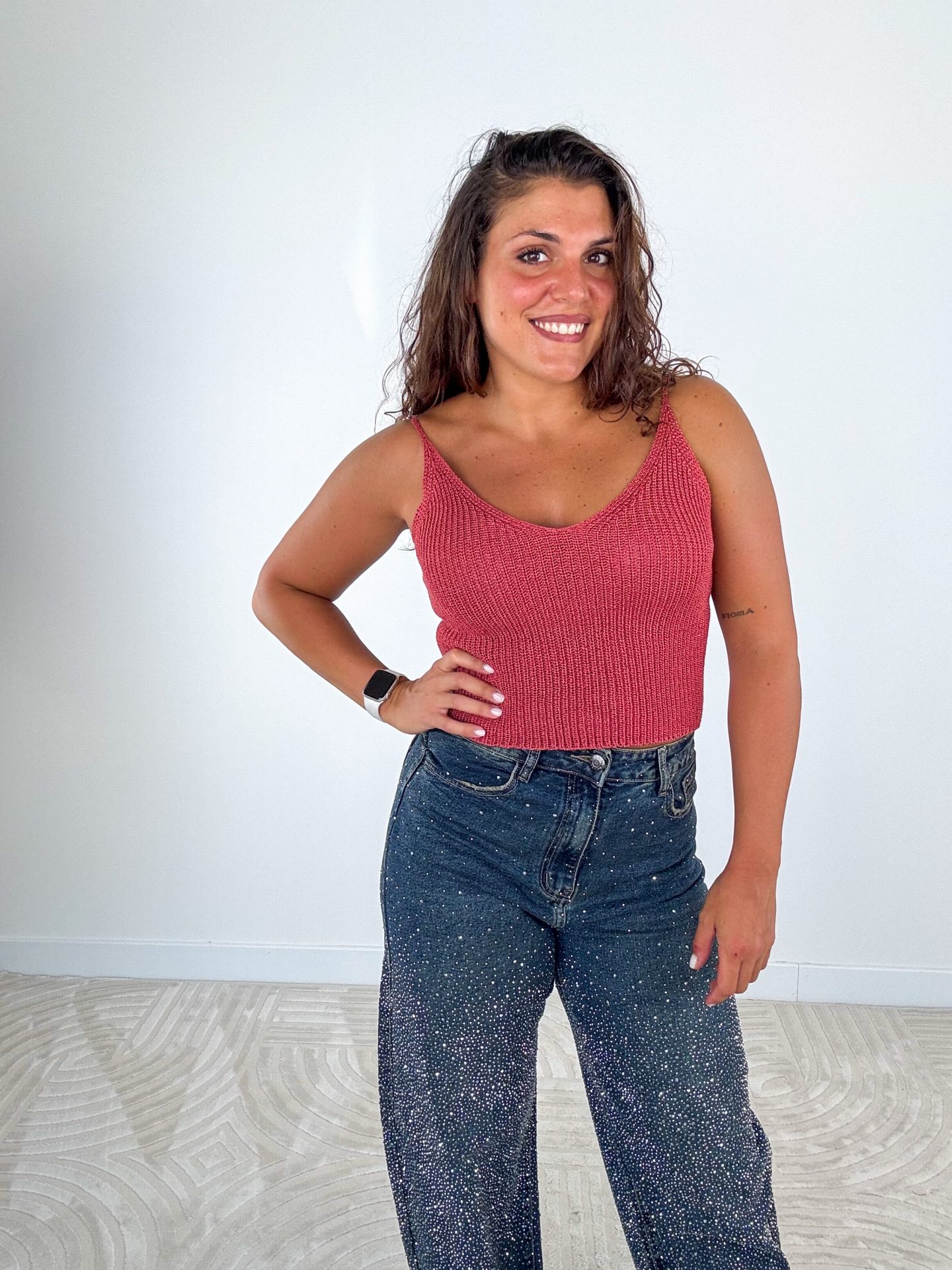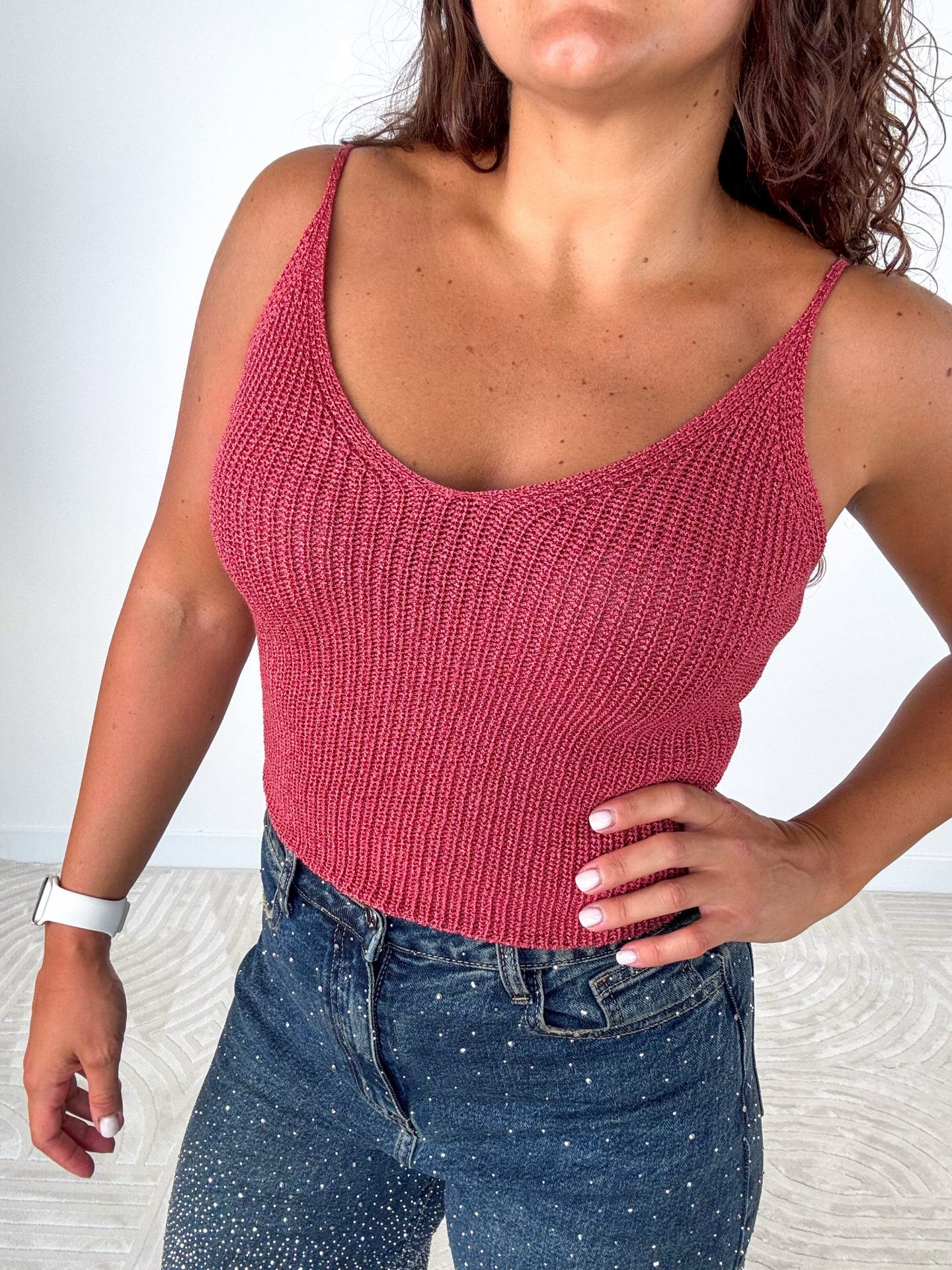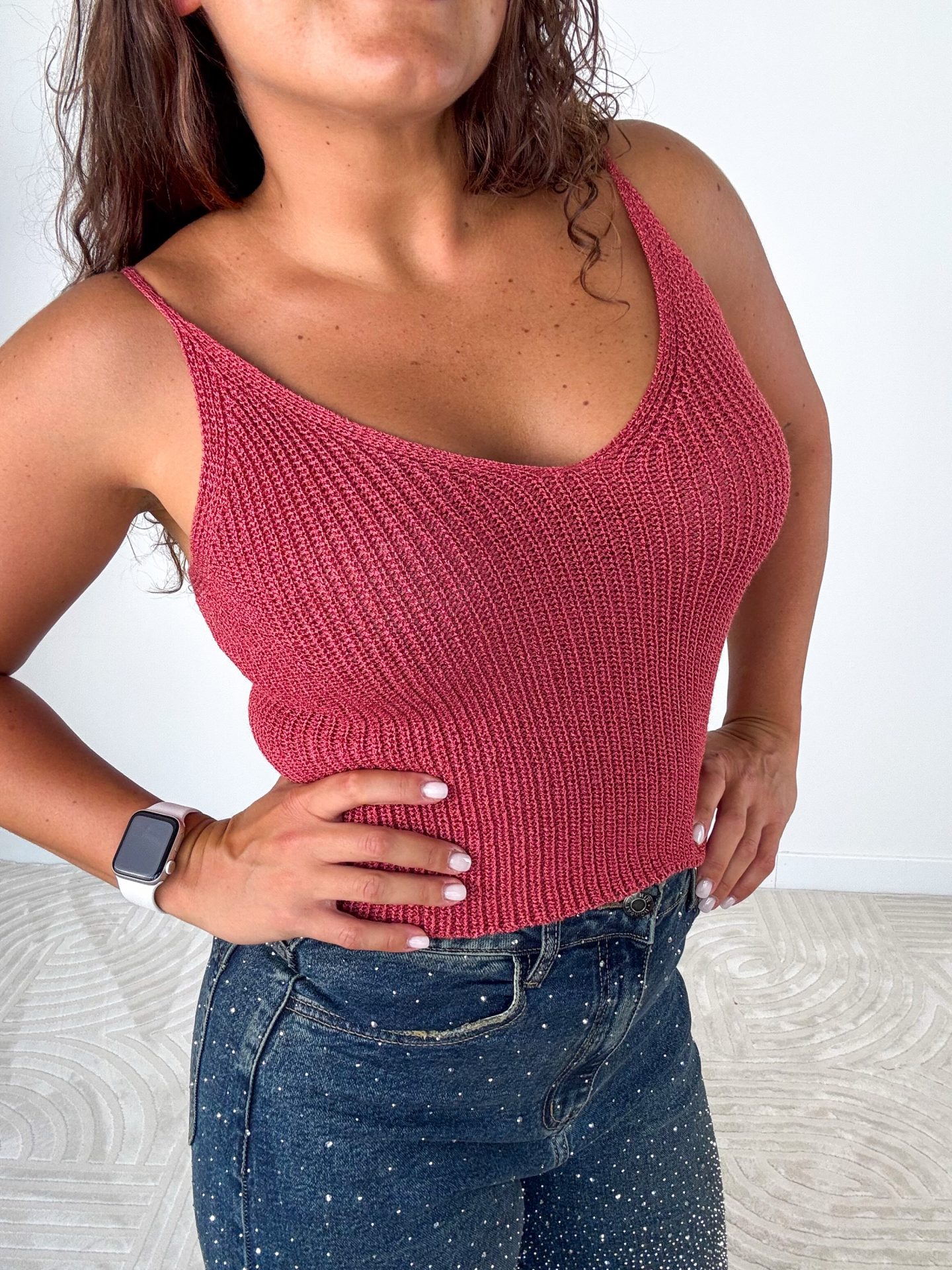 - Top in Puro Cotone lavorato a catena.