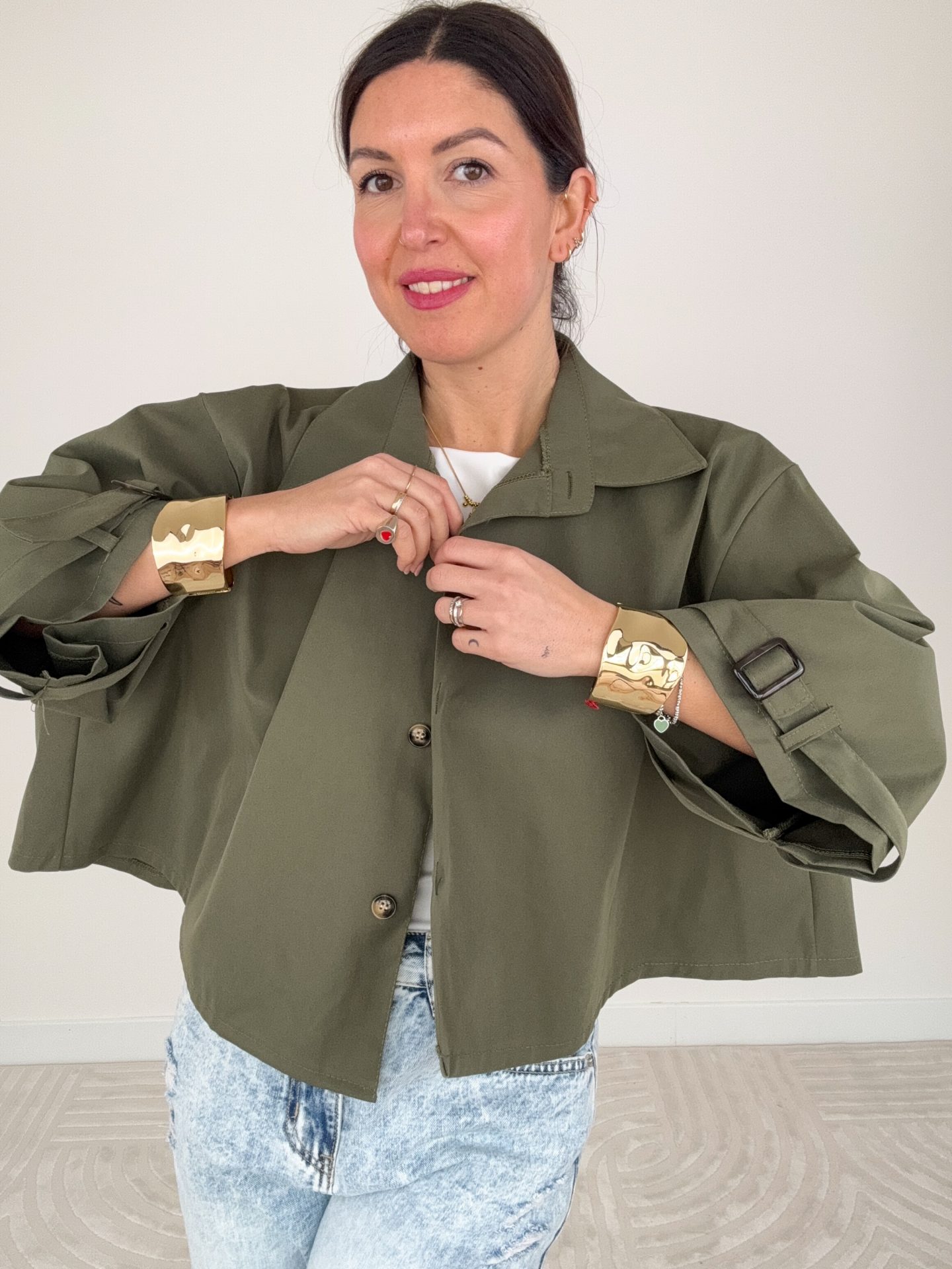 • Modello scatoletta e ampia manica a tre quarti con fibbia regolabile sul finale.