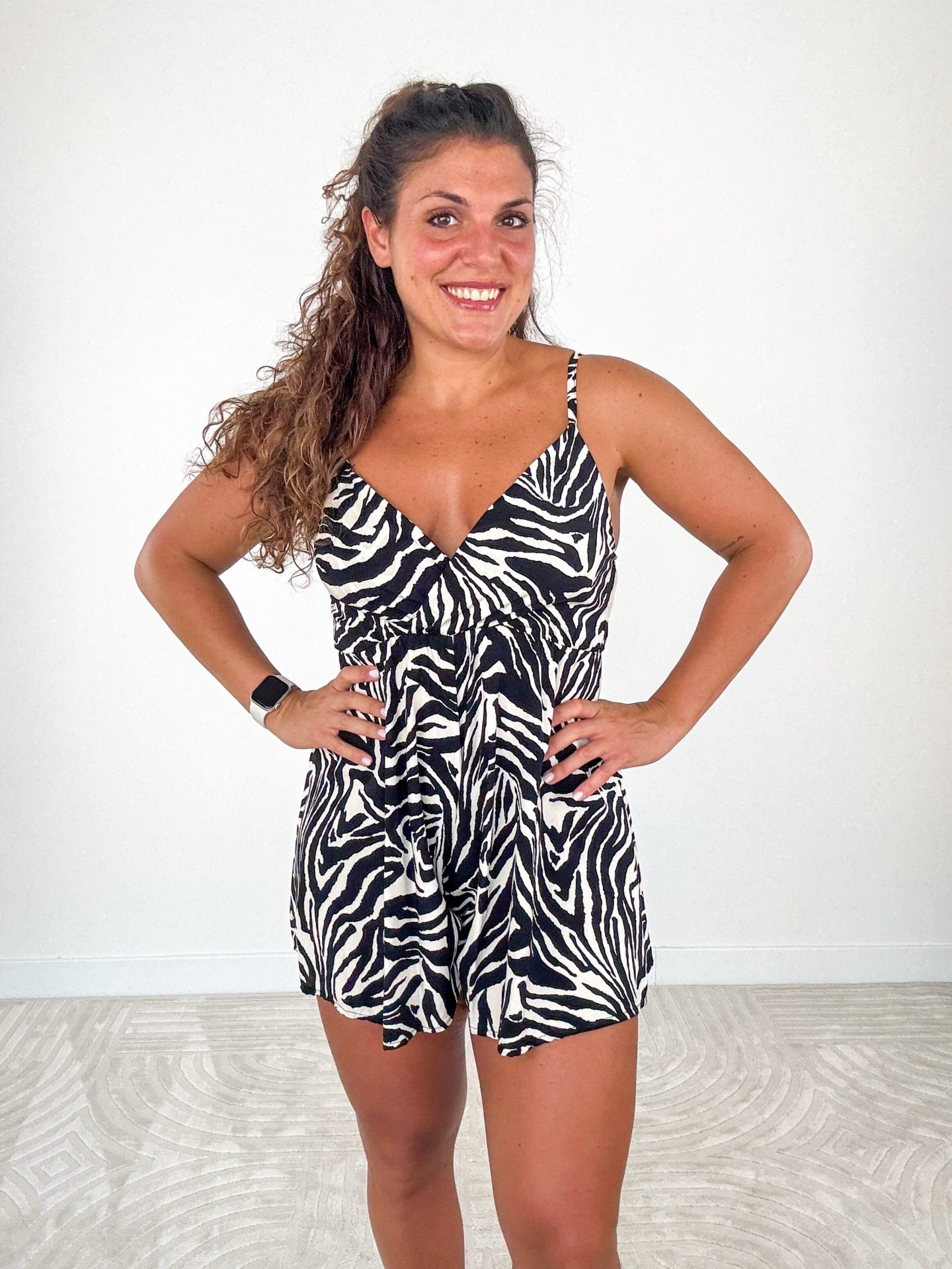 - Tutina a bretelle e scollo a V stampa animalier.