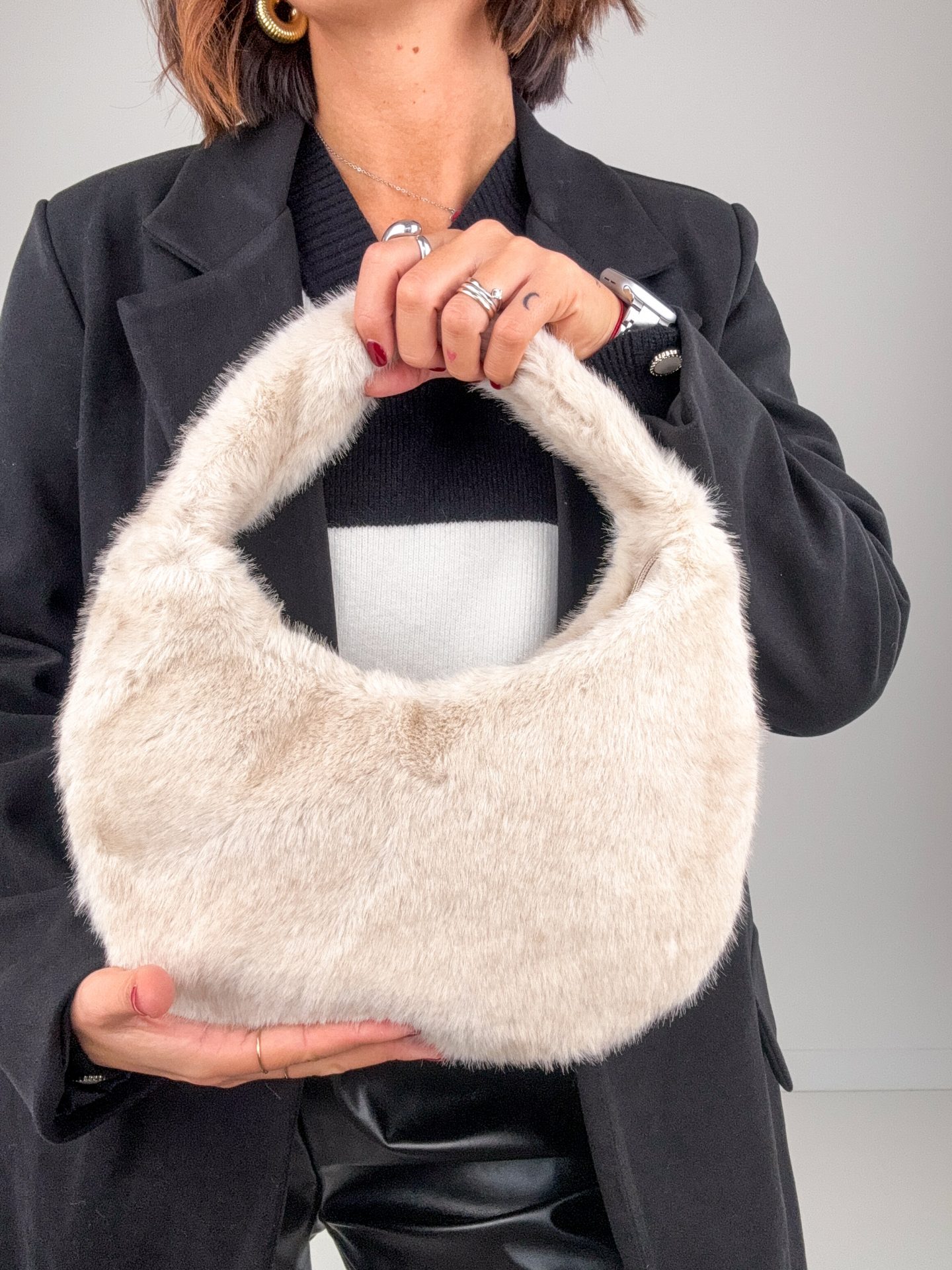 Completiamo poi questo look con la nuovissima Pochette Eco Fur e con la super fashion Ballerina Strass.